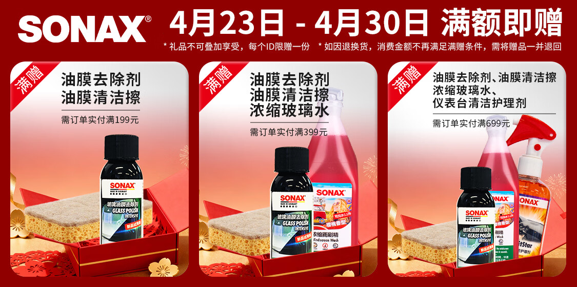 索纳克斯(SONAX)德国进口汽车玻璃水浓缩液去油膜虫胶雨刷精去污雨刮精前挡雨刮水 直播间更划算1比100经典清香250ml-2029年到期