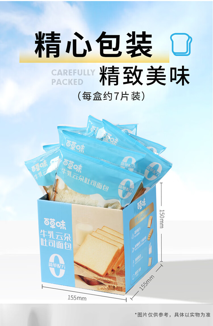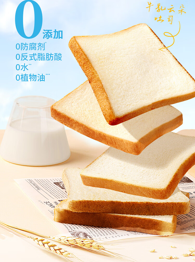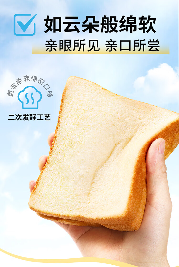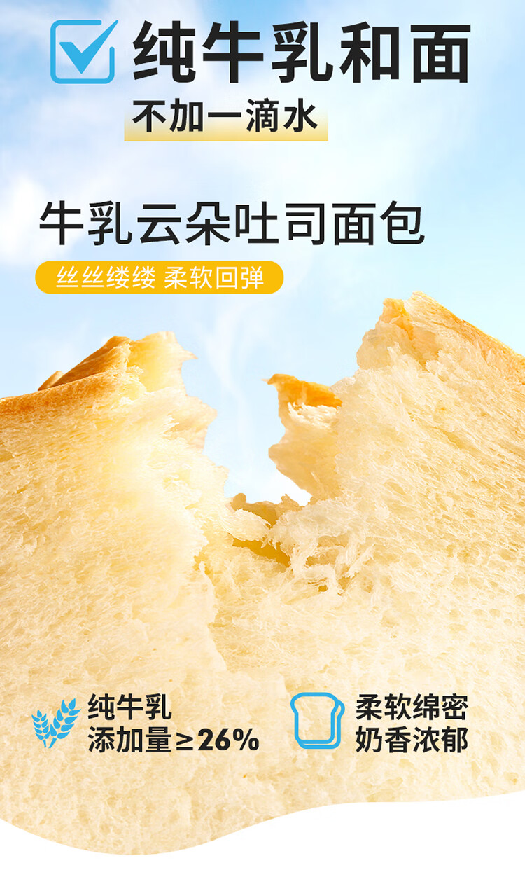 百草味牛乳云朵吐司410g 早餐面包代餐零食蛋糕糕点点心休闲零食