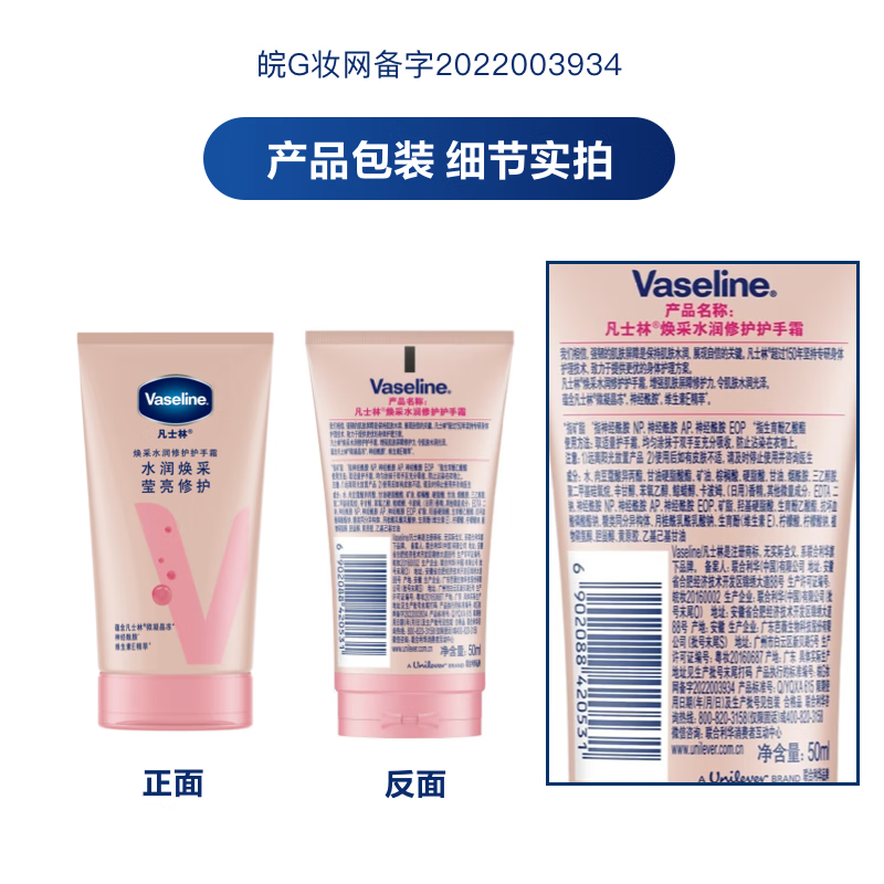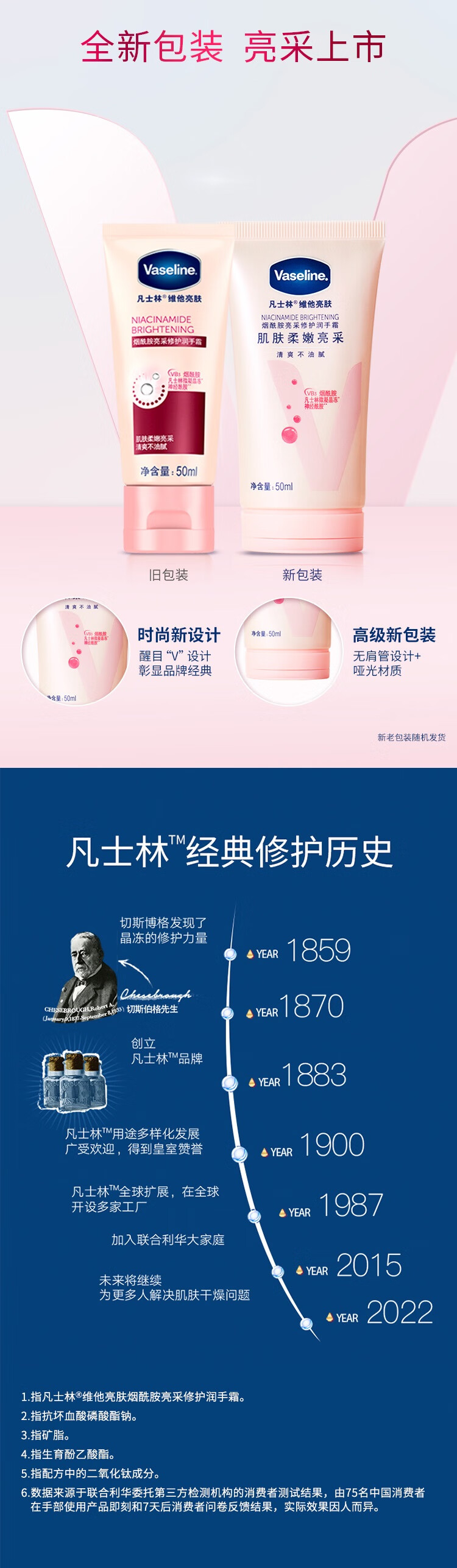 凡士林【热卖NO.1】护手霜50ml烟酰胺焕亮保湿滋润防干裂提亮手部便携