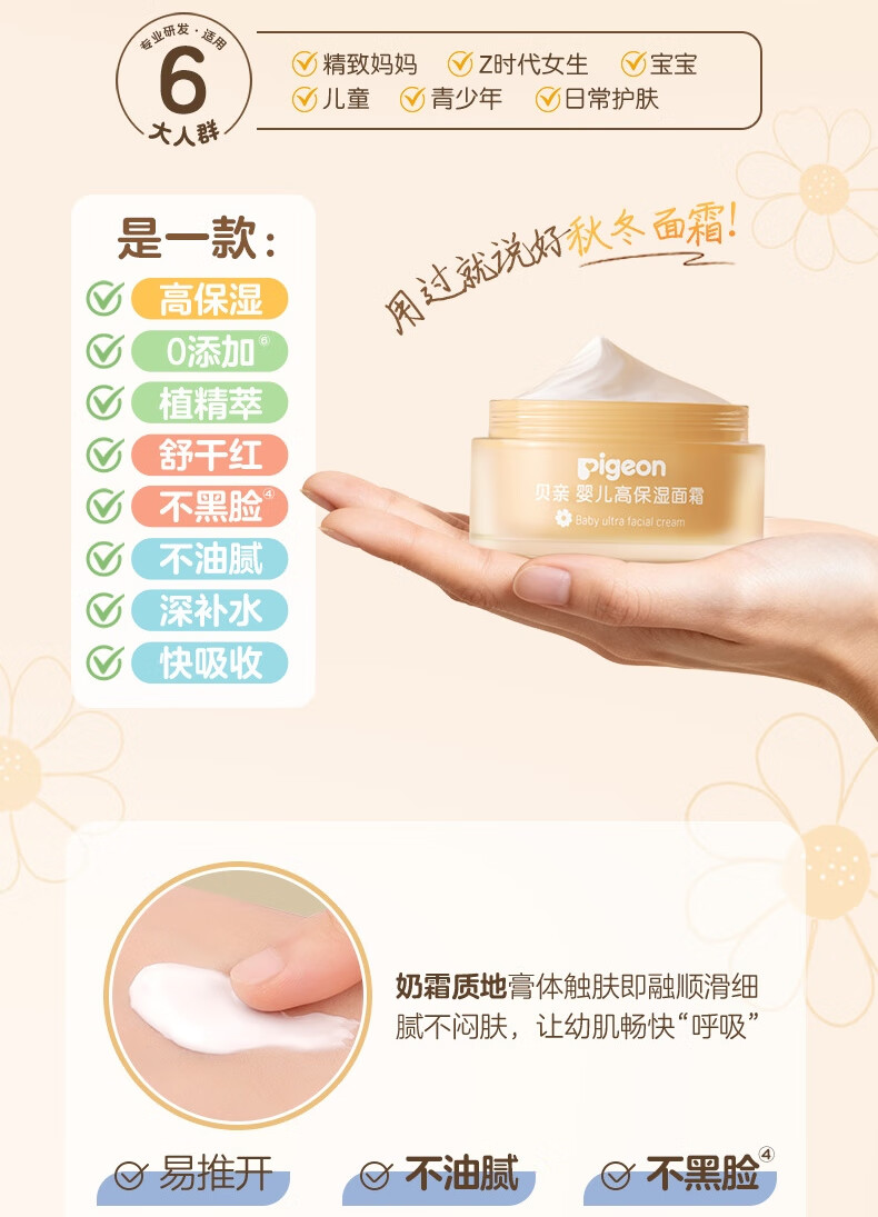 贝亲婴儿童面霜金盏花护理面霜高保湿润润霜四季身体乳0添加敏感肌50g