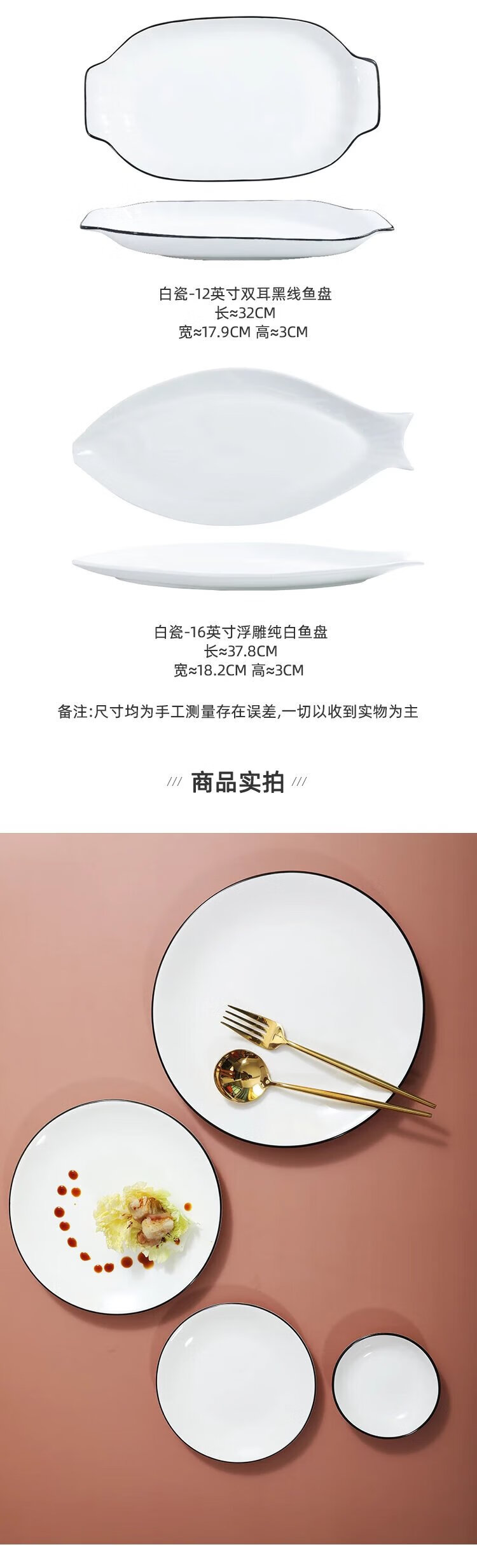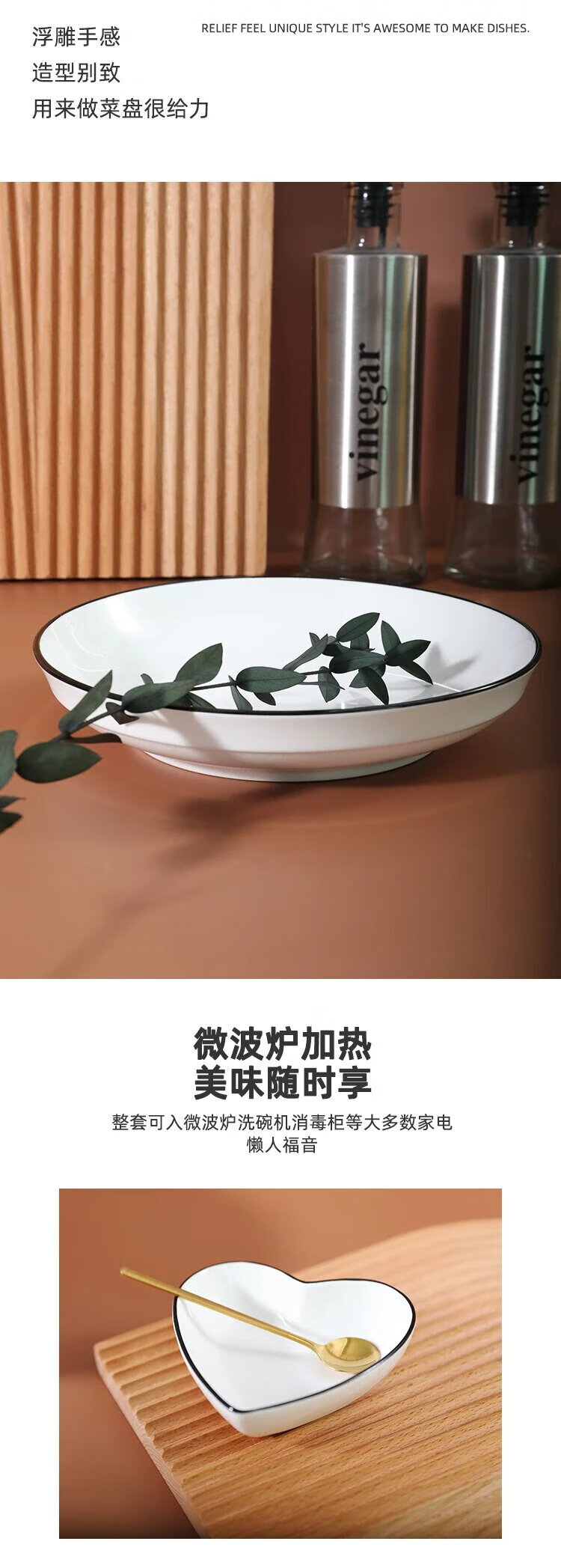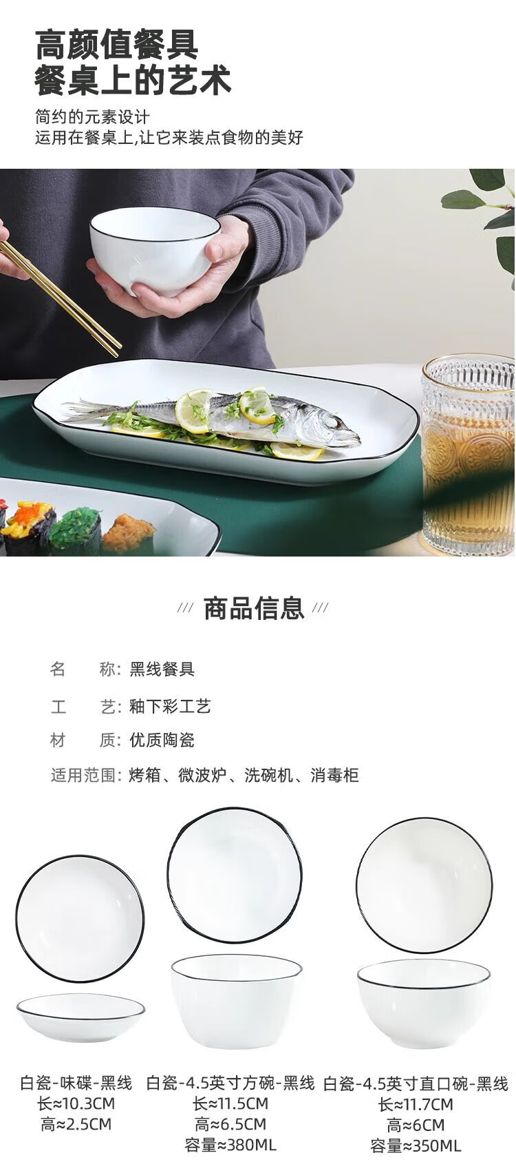 北欧陶瓷西餐饭碗碟菜盘子黑线泡面碗大汤碗日式餐 白瓷-小勺2个装-黑线