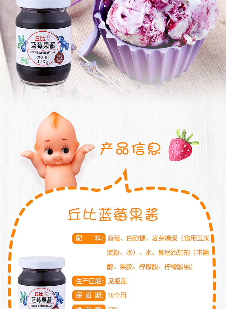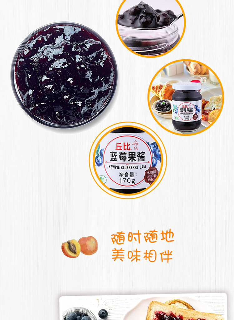 丘比(KEWPIE)果酱 蓝莓酱 调味品 早餐面包酱蛋糕酸奶蓝莓果酱 170g*1瓶
