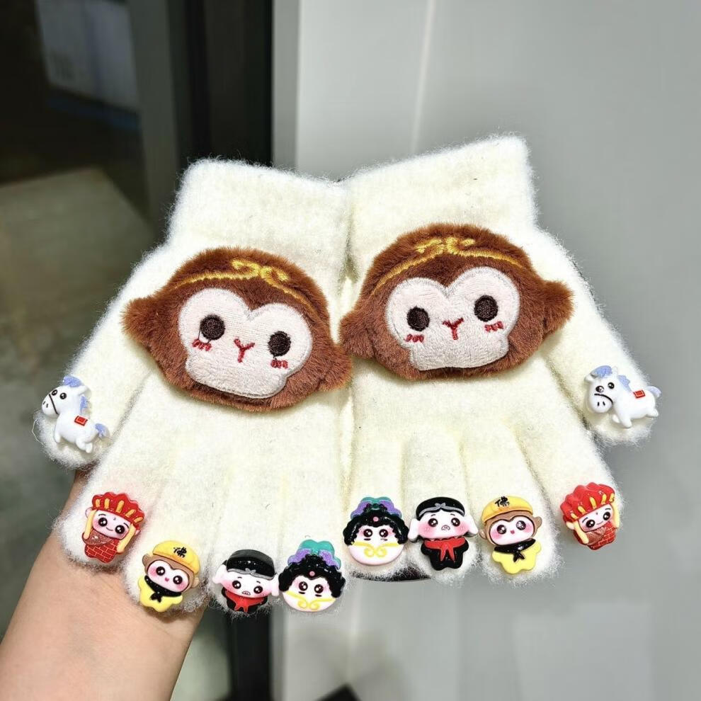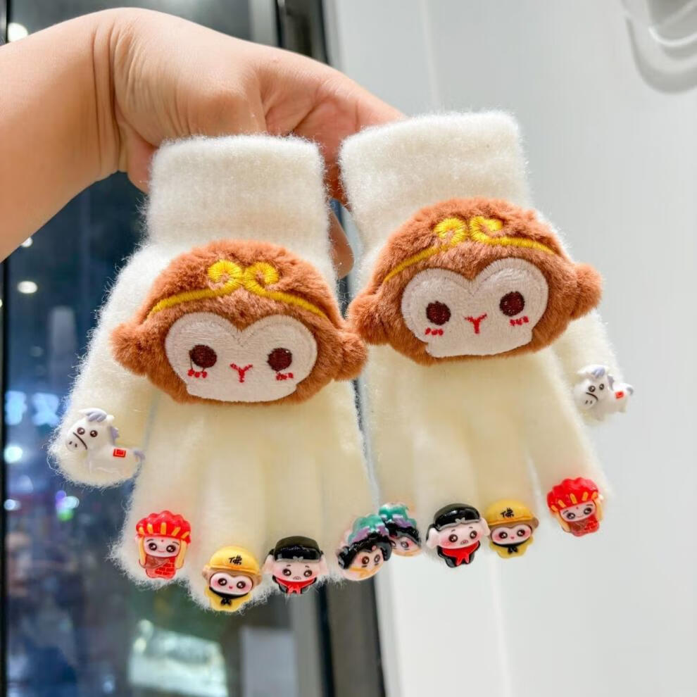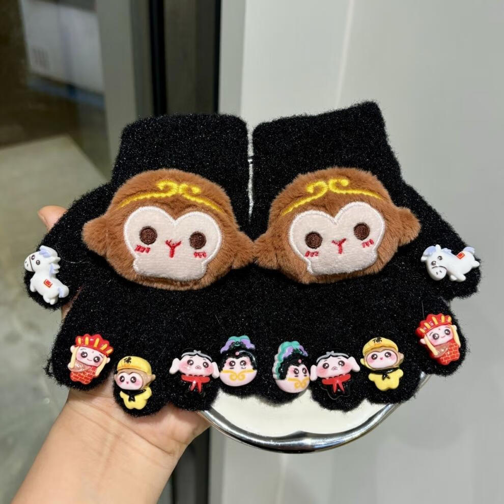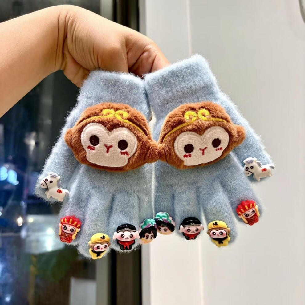 G.duck小黄鸭2025孙悟空儿童手套男宝宝冬季新款卡通分指保暖指套五指男 黑色孙悟空 小童(2-6岁)