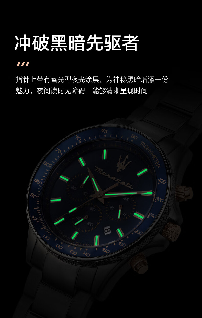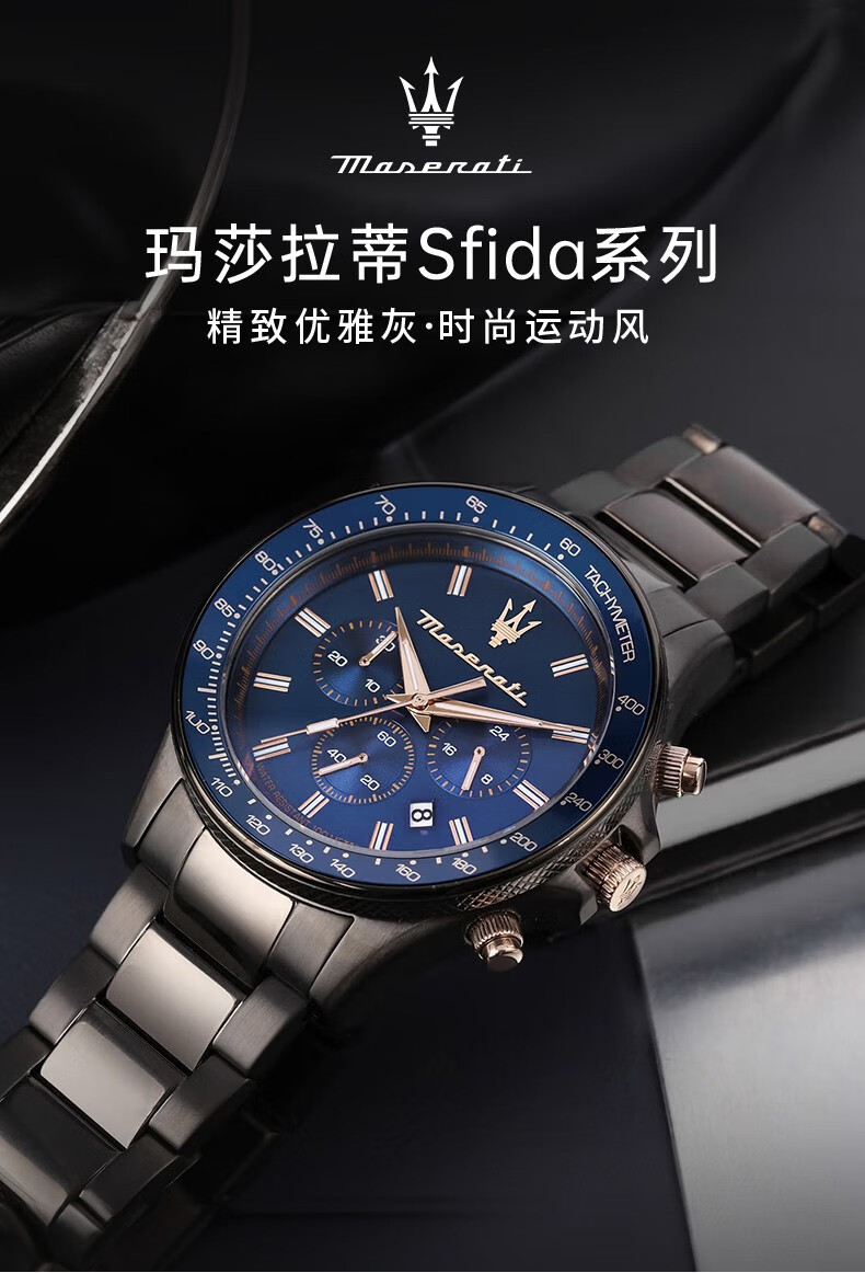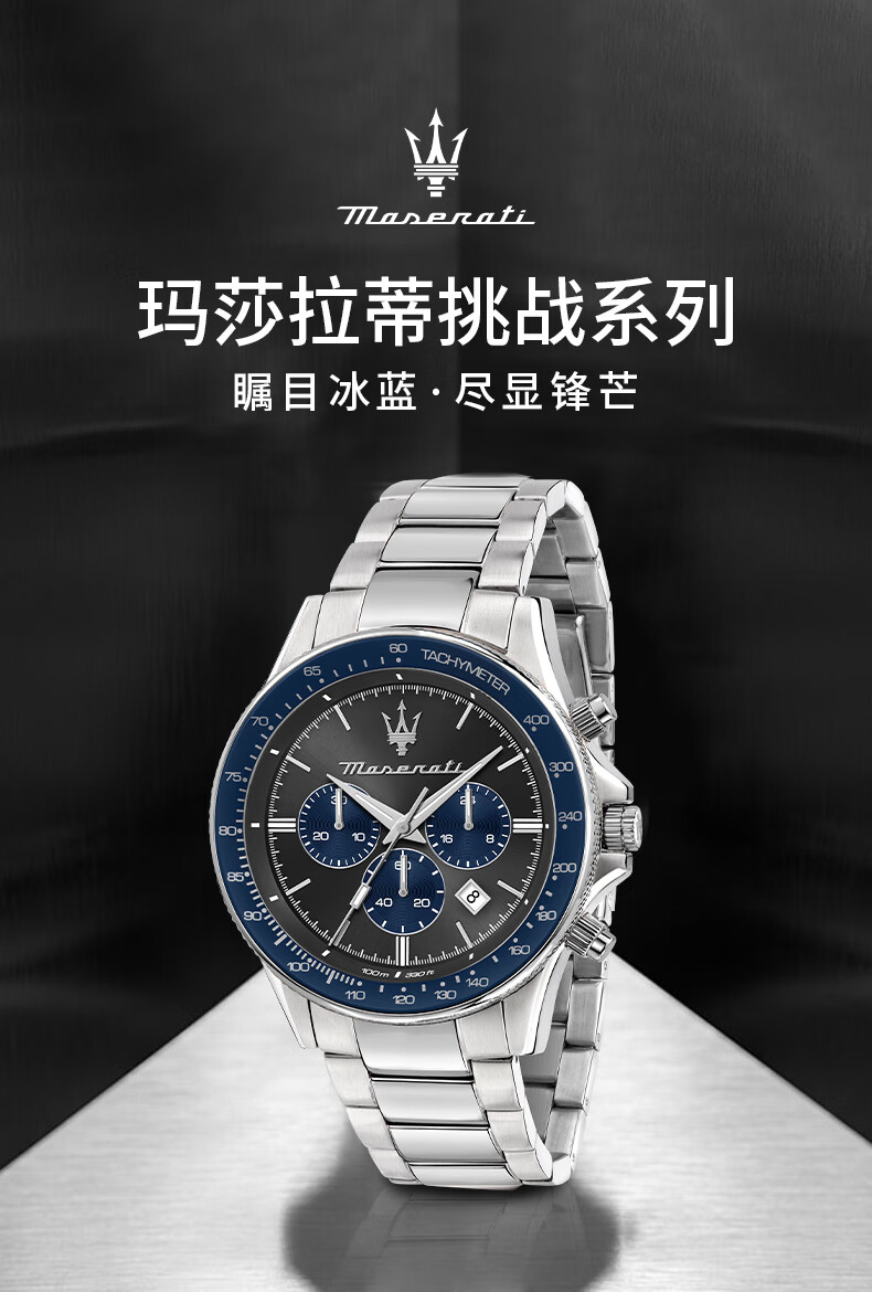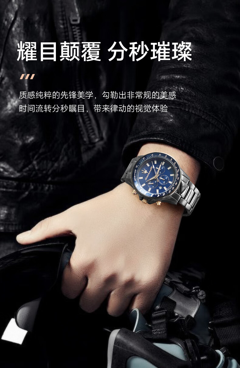 玛莎拉蒂(MASERATI)手表男绿水鬼潮流运动名表欧美正品石英表轻奢高级感男士圣诞礼物 【人气】普鲁士蓝 R8853140003