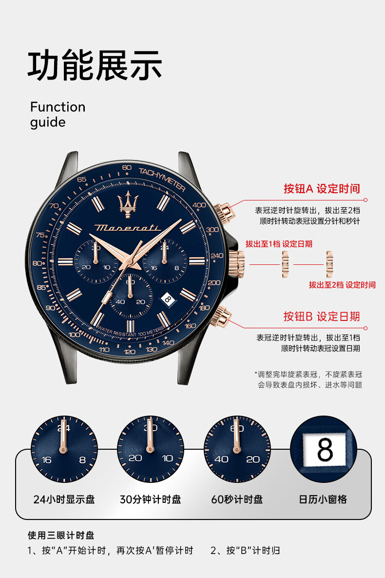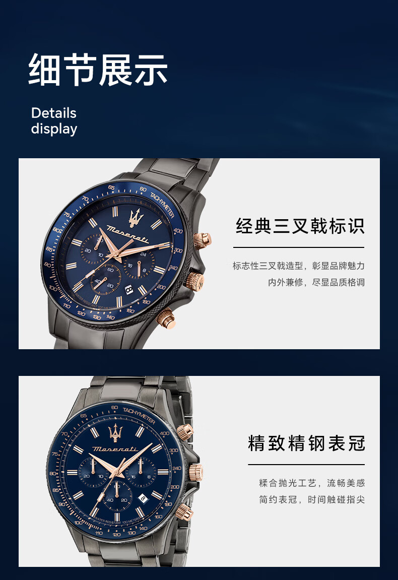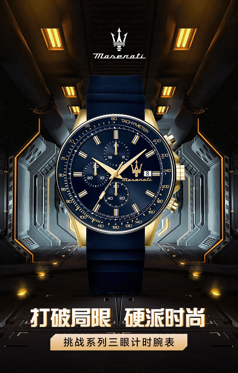玛莎拉蒂(MASERATI)手表男绿水鬼潮流运动名表欧美正品石英表轻奢高级感男士圣诞礼物 【人气】普鲁士蓝 R8853140003