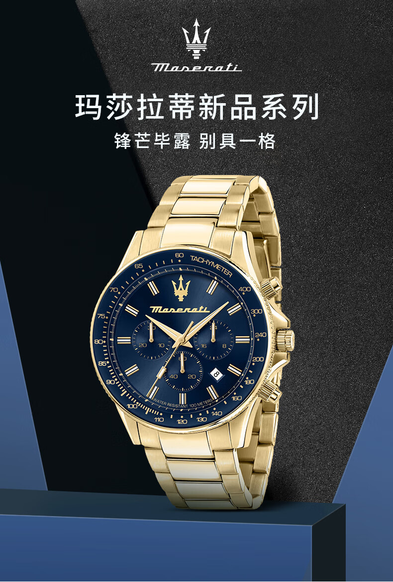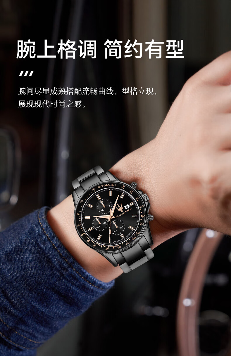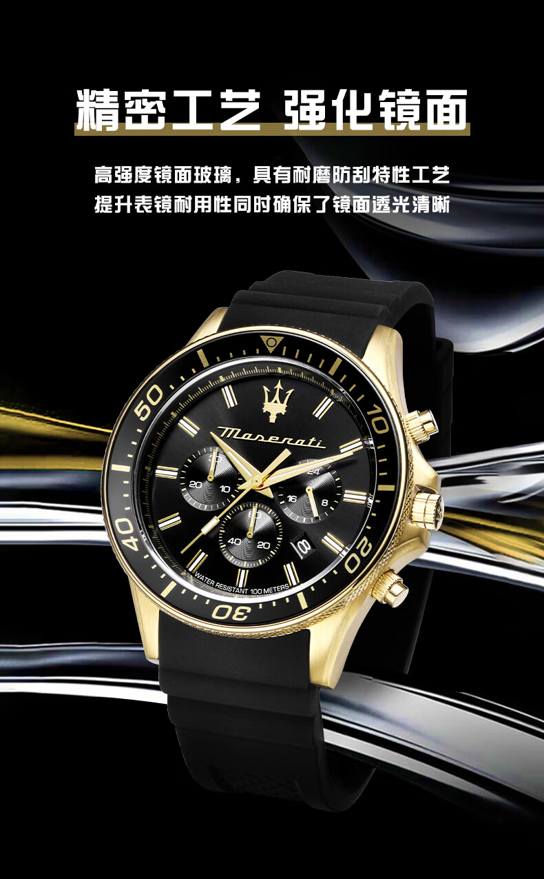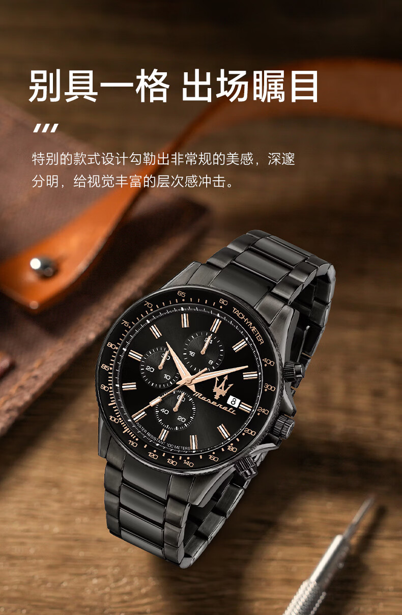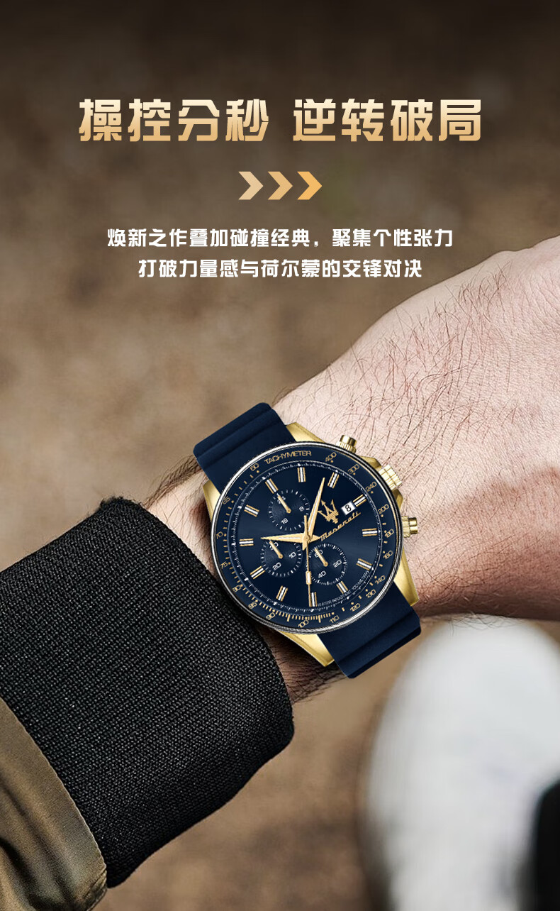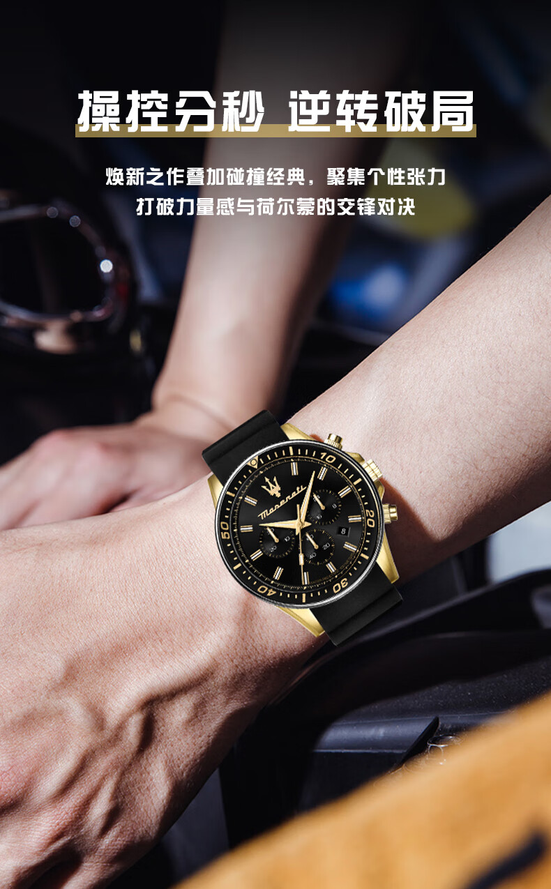 玛莎拉蒂手表男潮流轻奢运动风防水欧美高级感石英名表正品送男士圣诞礼物 奢华金谋略家-R8873640008