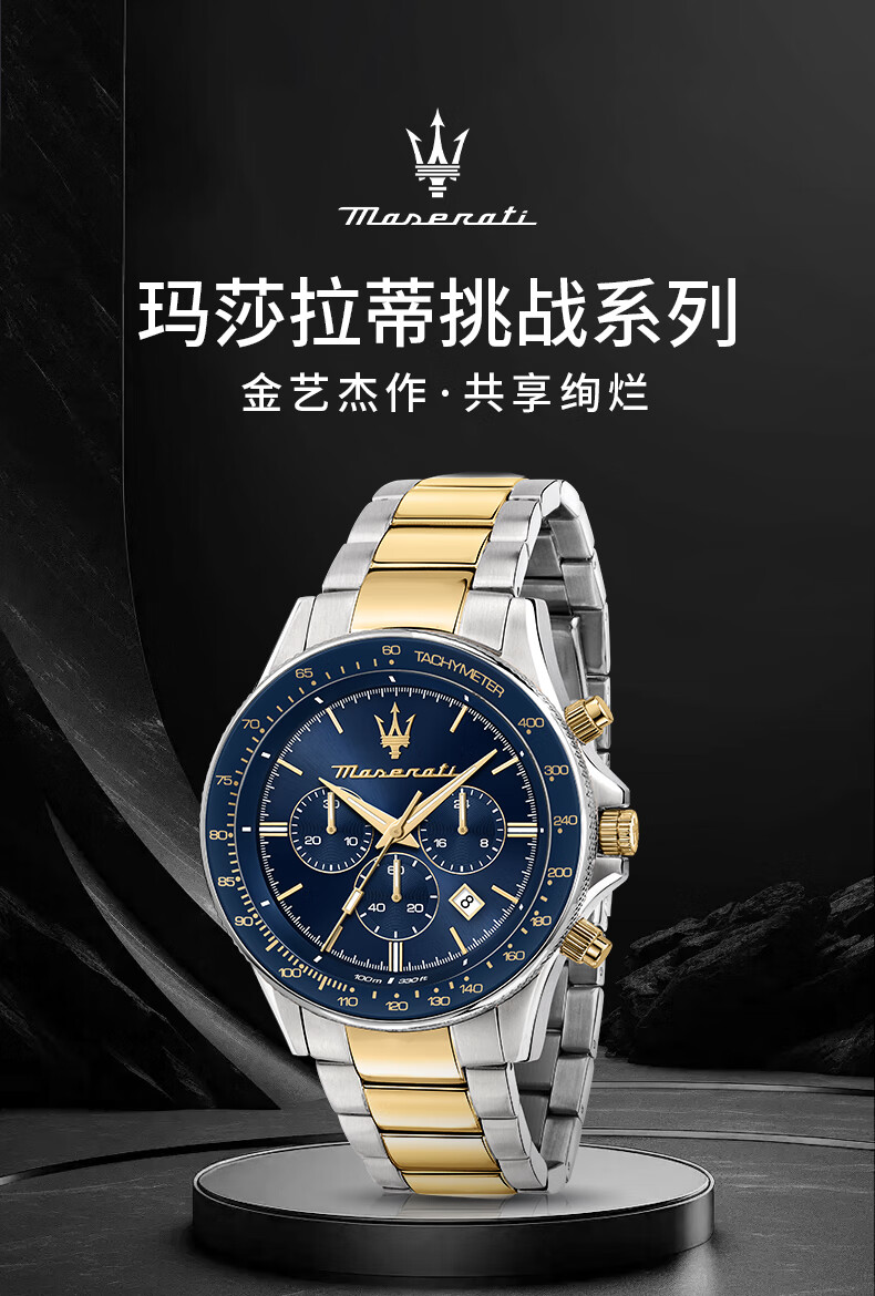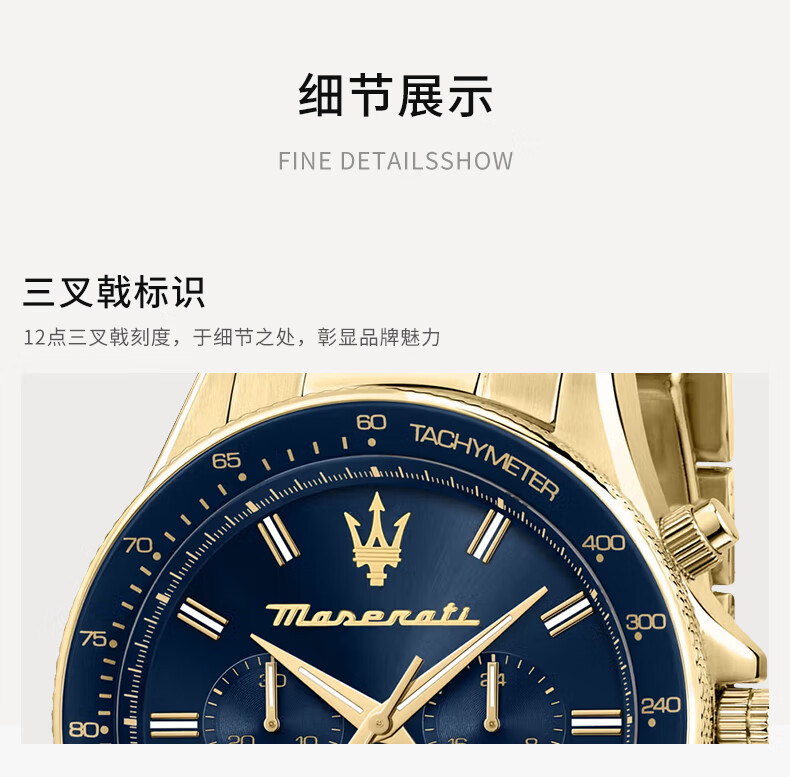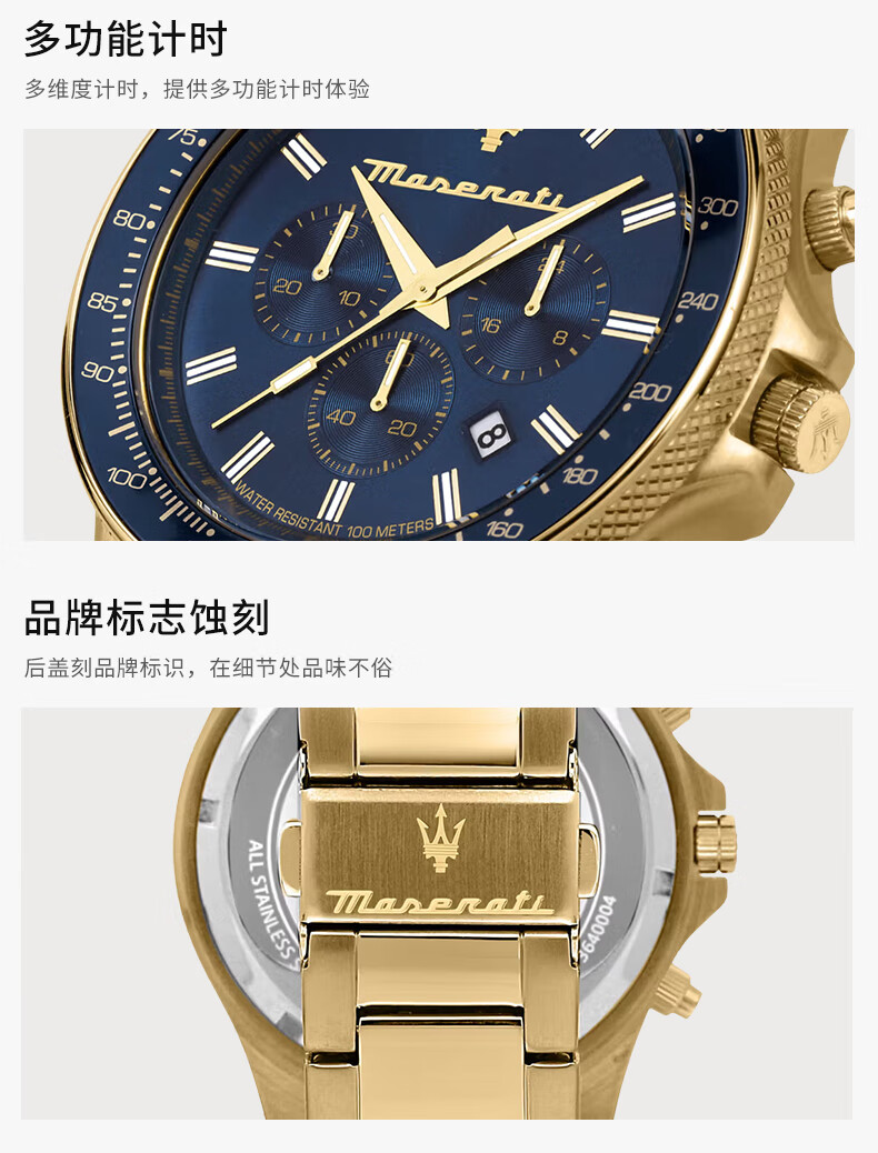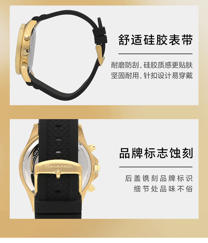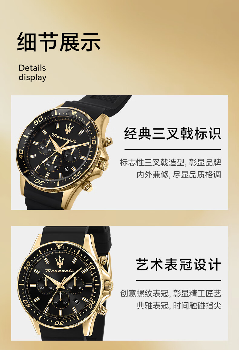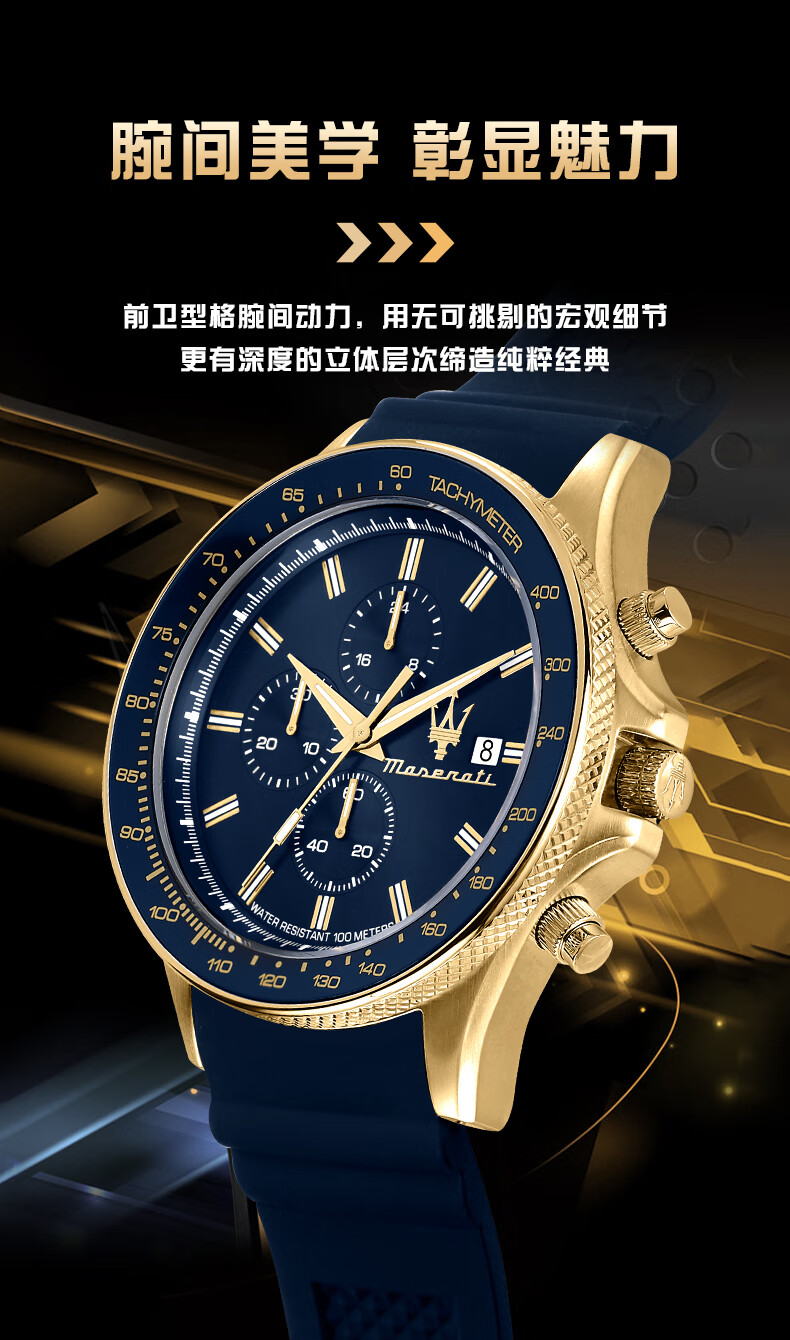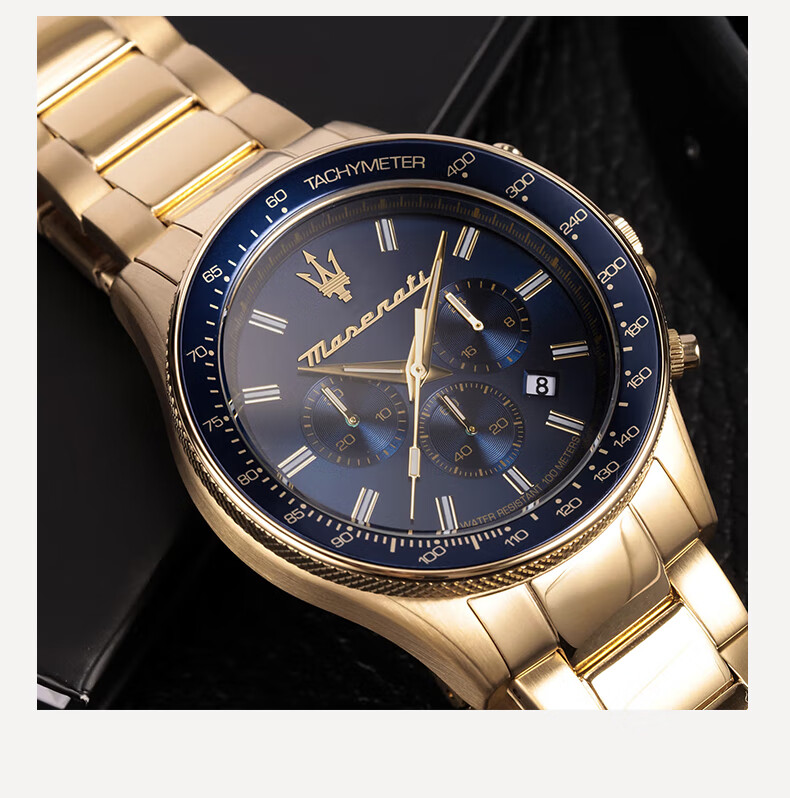 玛莎拉蒂手表男潮流轻奢运动风防水欧美高级感石英名表正品送男士圣诞礼物 奢华金谋略家-R8873640008