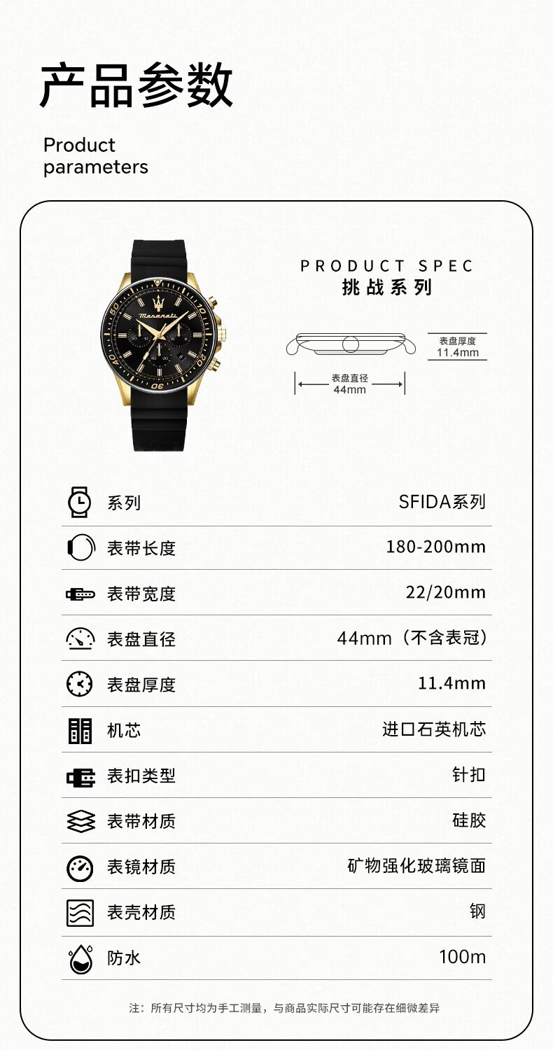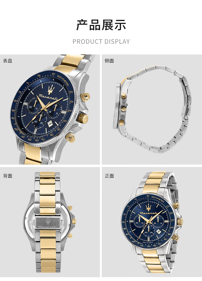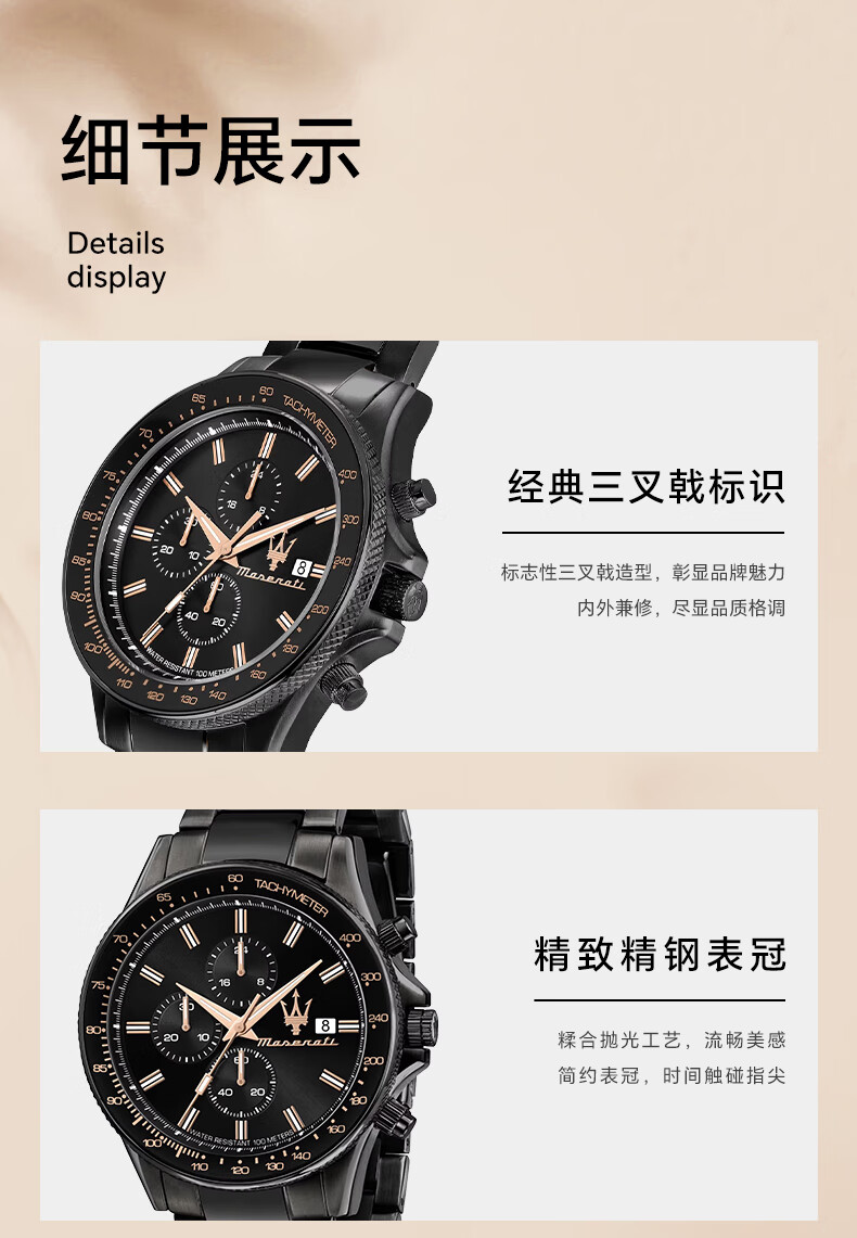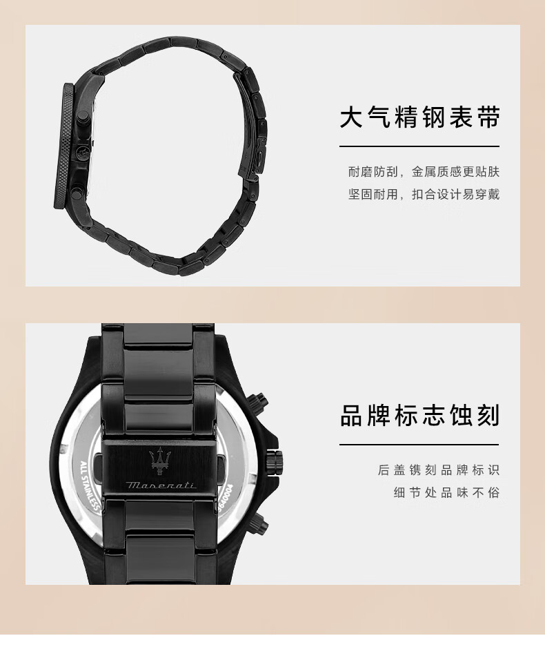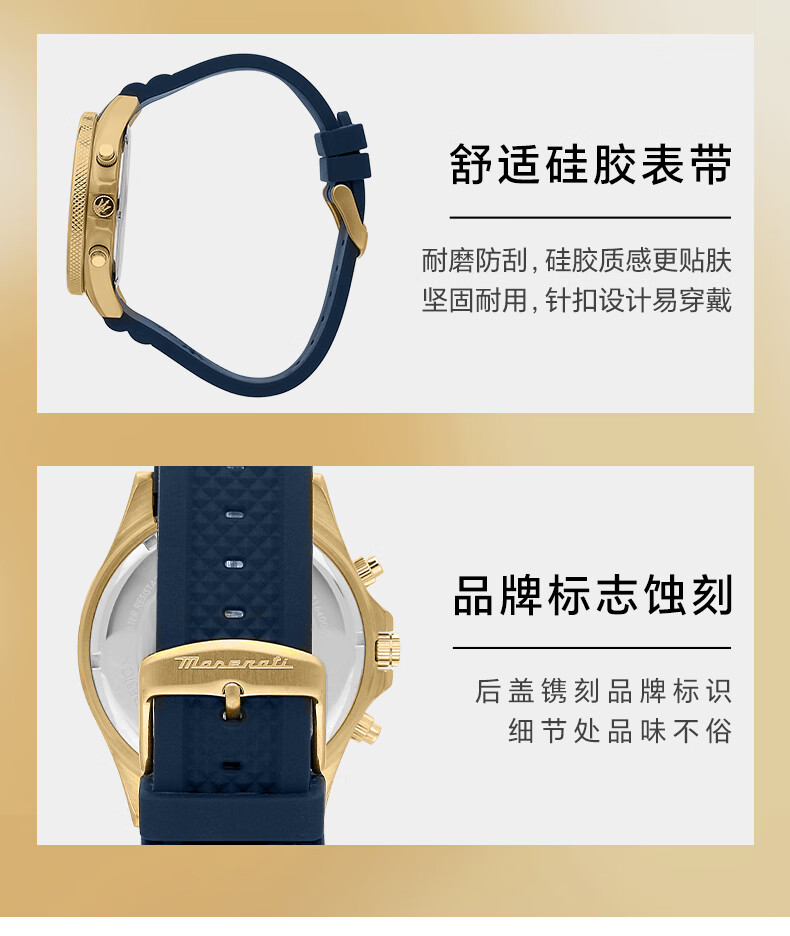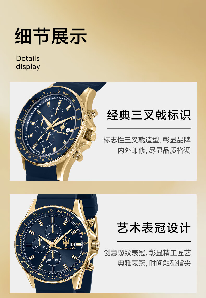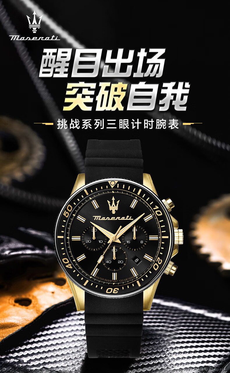 玛莎拉蒂手表男潮流轻奢运动风防水欧美高级感石英名表正品送男士圣诞礼物 奢华金谋略家-R8873640008