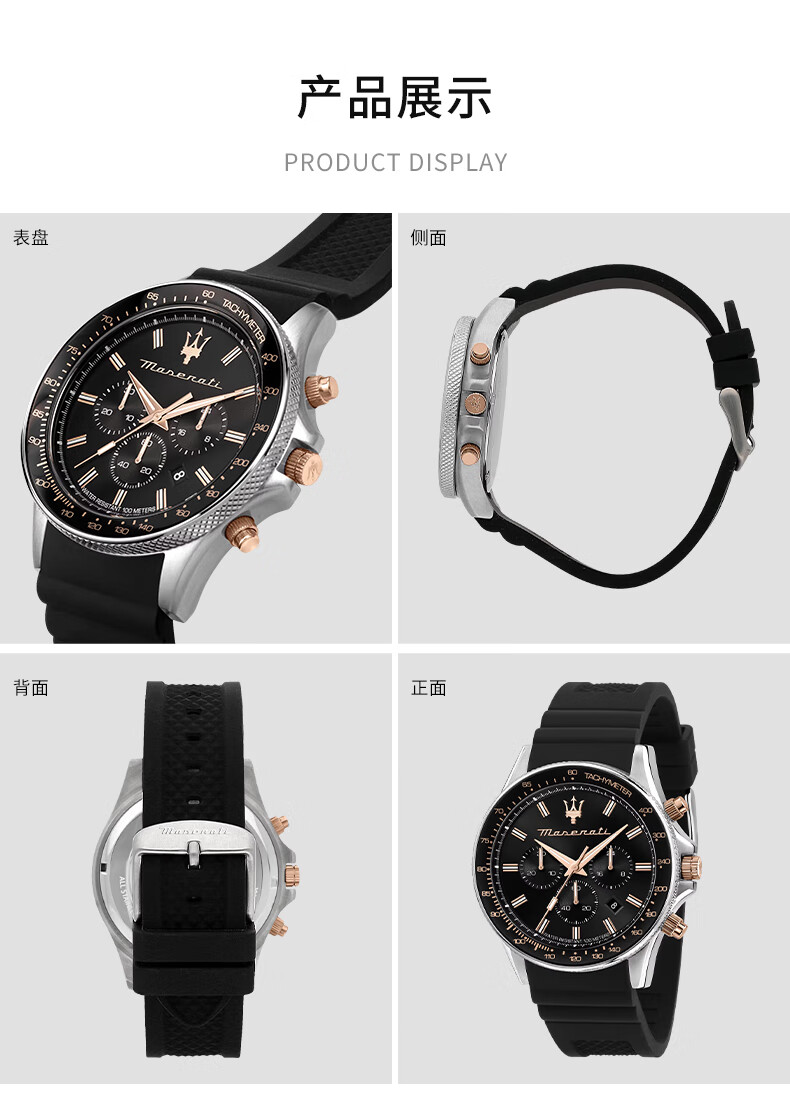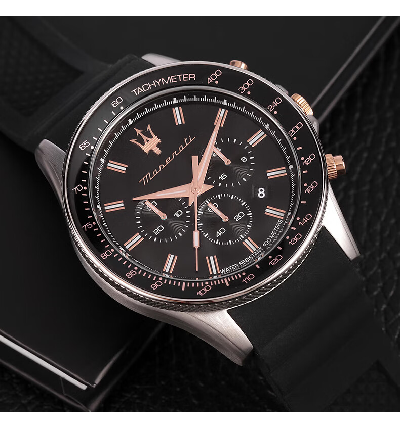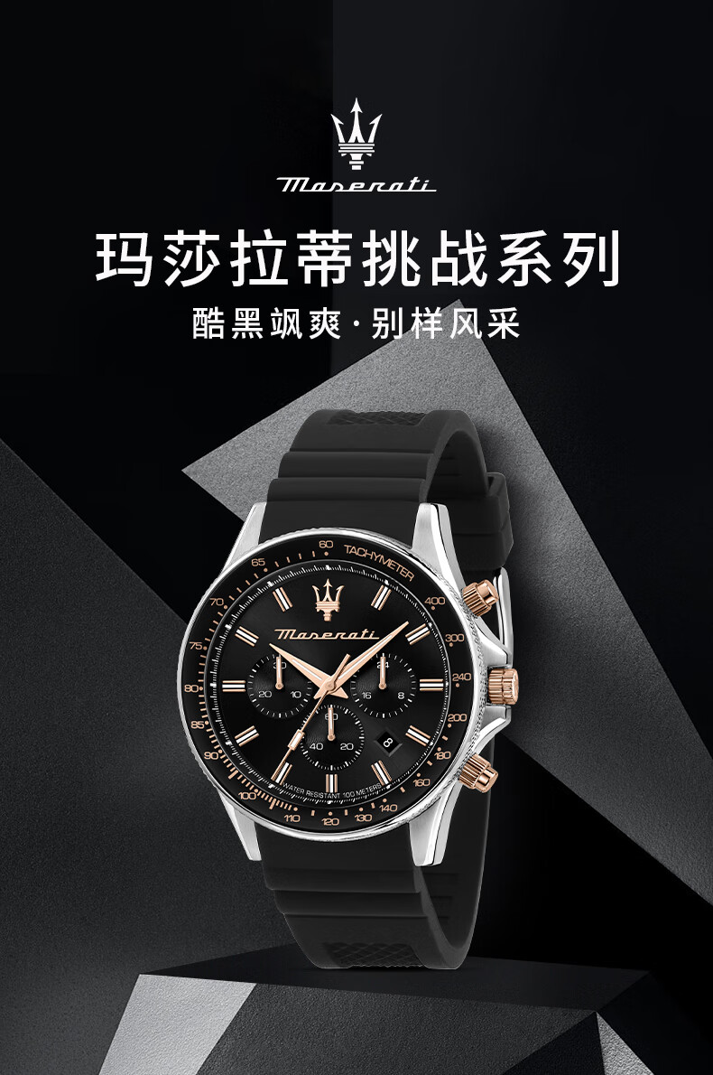玛莎拉蒂(MASERATI)手表男运动防水三眼计时日历石英表时尚硅胶表带名表圣诞节礼物 城市黑金-R8871621012