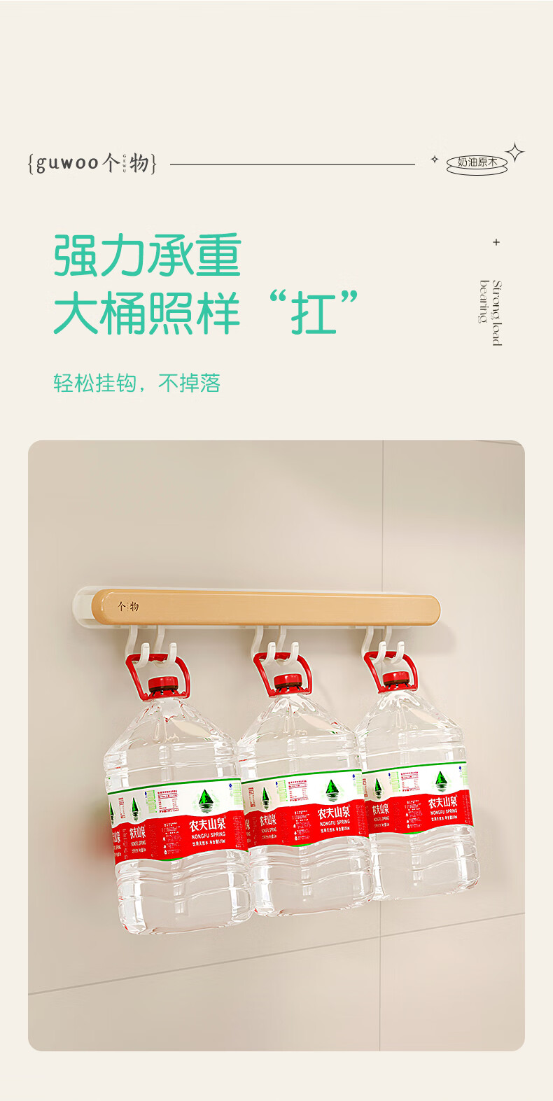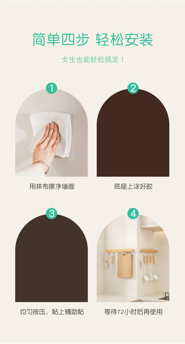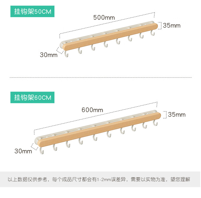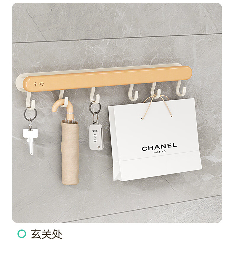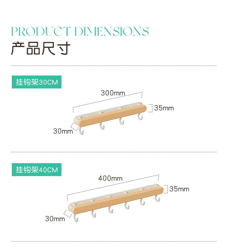 个物厨房锅铲挂钩勺子收纳架免打孔多功能壁挂排挂杆移动置物架原木风 锅铲勺子可移动挂钩40CM