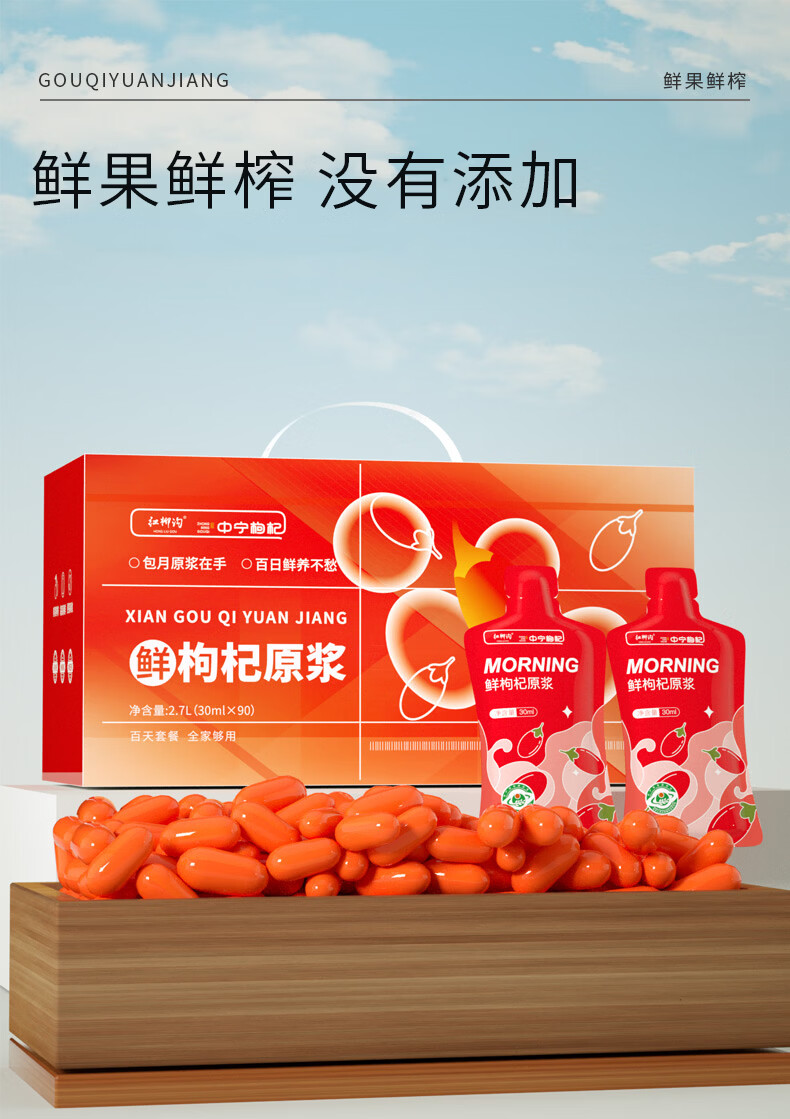 中宁枸杞 鲜枸杞原浆汁礼盒2700ml 宁夏中宁头茬鲜果鲜榨红枸杞原液 黑红组合原浆 2700ml*1盒 (30ml*90袋)