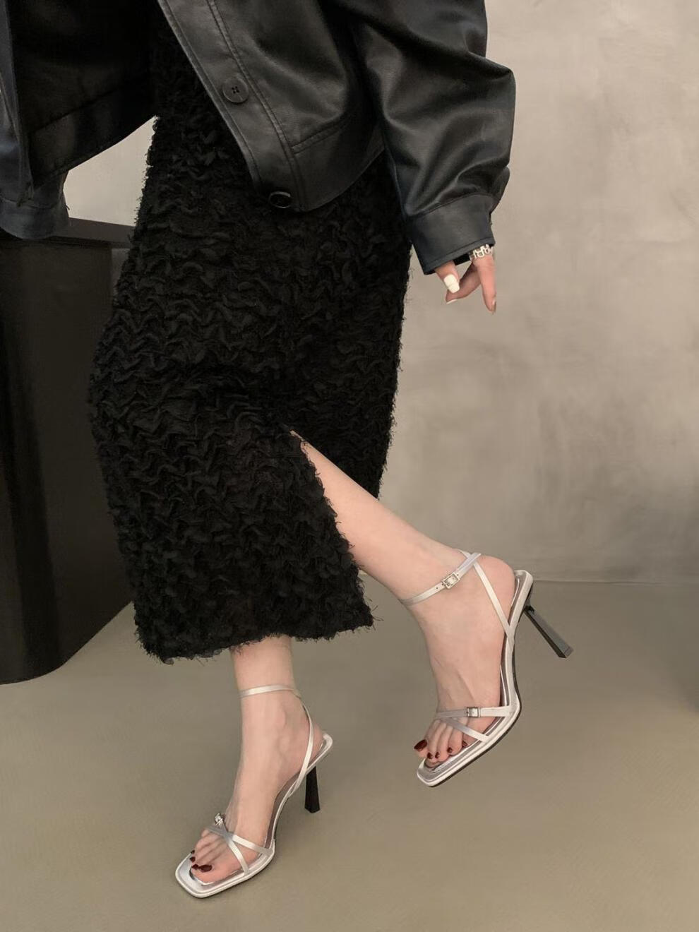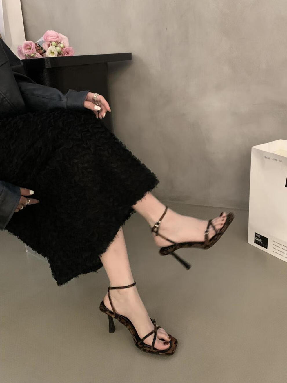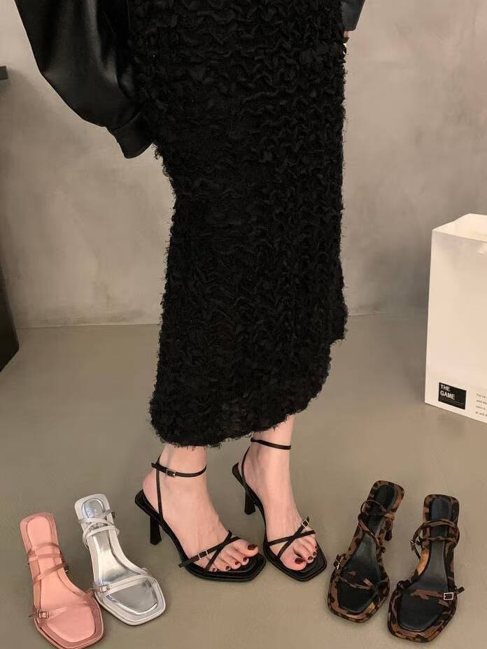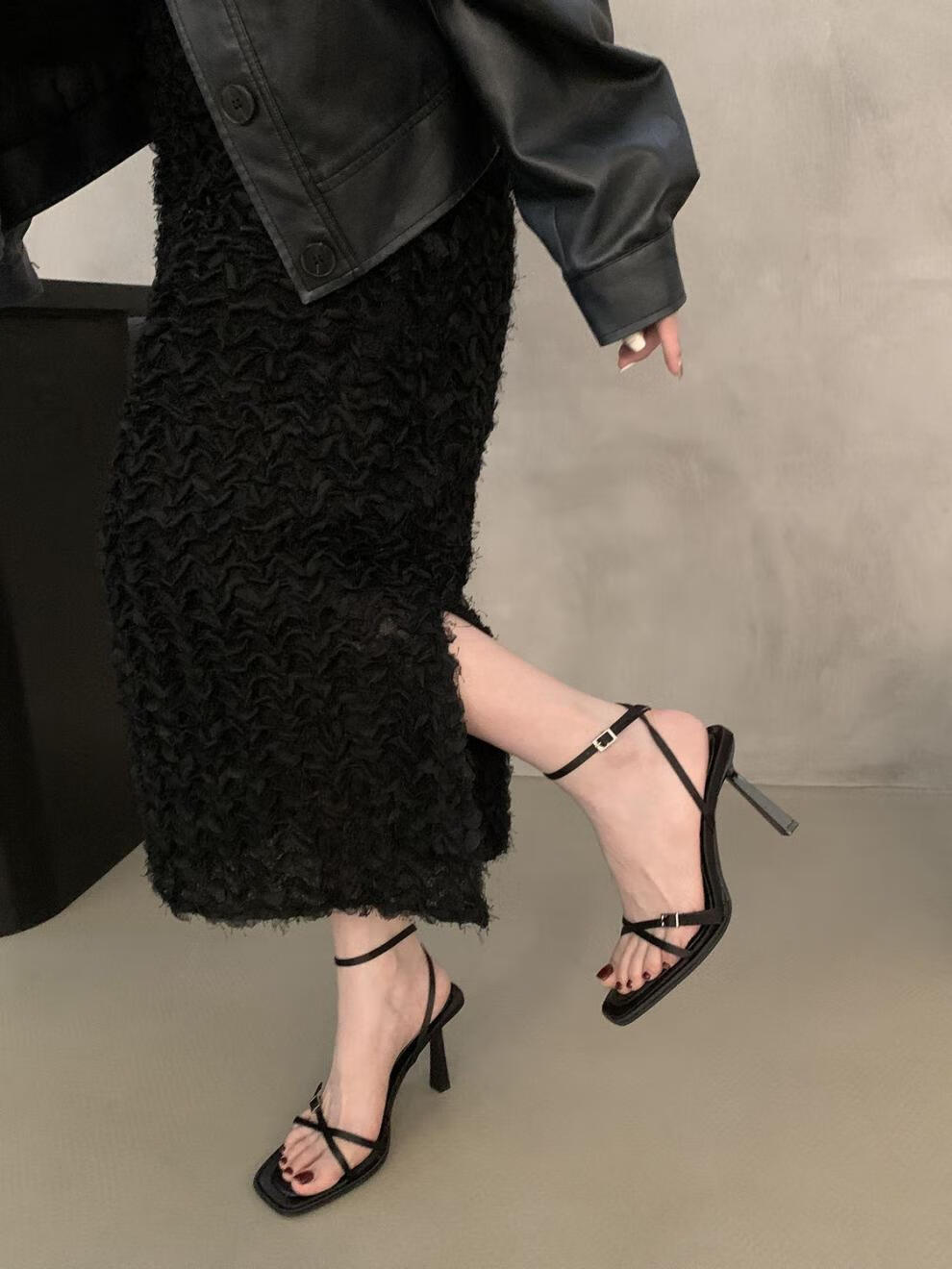 金盈姿法式感气质细跟凉鞋女鞋子2025新款夏季交叉细带方头高跟鞋女 黑色(升级版) 36