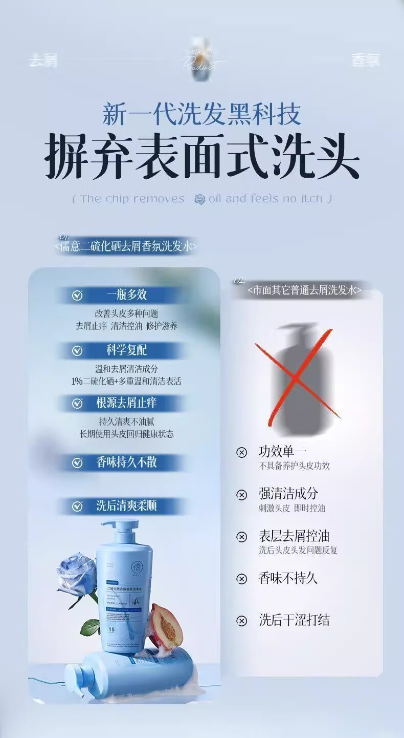 儒意二硫化硒去屑清洁洗发水毛囊止痒控油蓬松炎洗头膏露正品 【蓝玫瑰香】二硫化硒洗发水800g