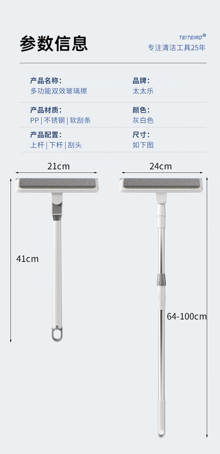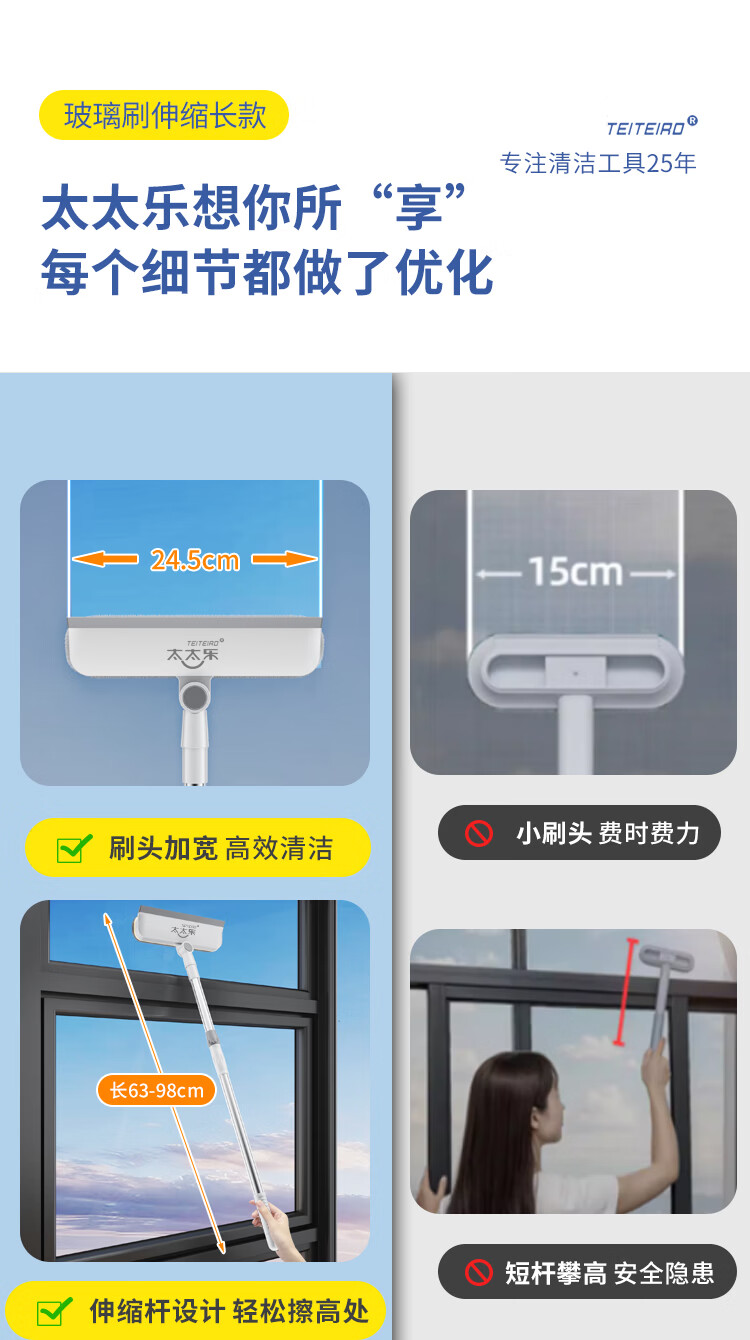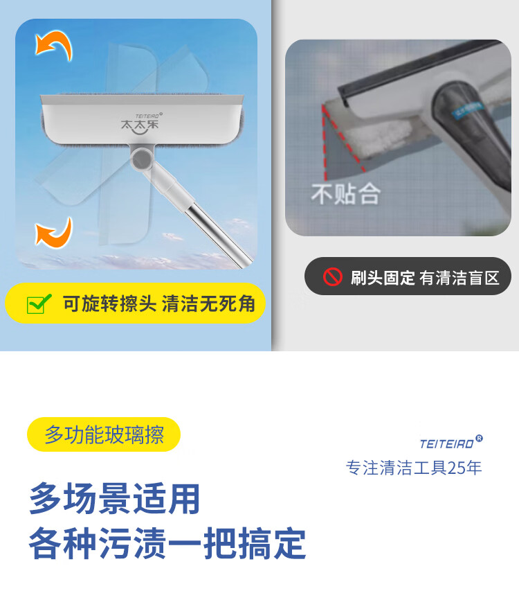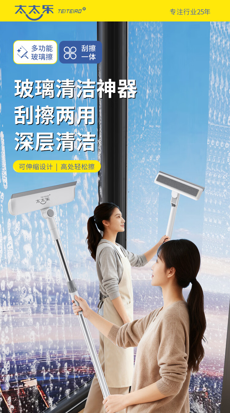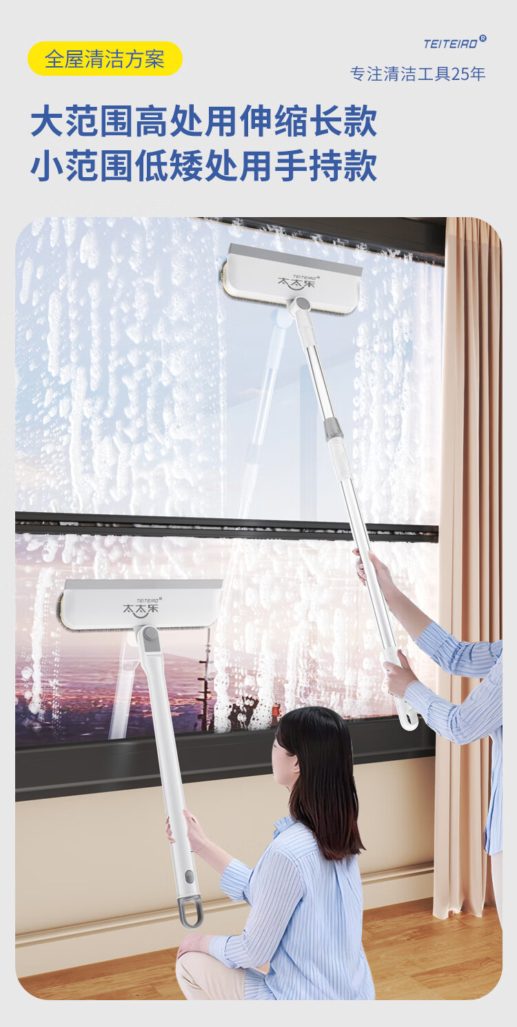 太太乐擦玻璃神器高层外窗专用洗窗户刮水器家政清洁工具刮擦一体伸缩杆 刮擦一体短款擦窗器【共1布】