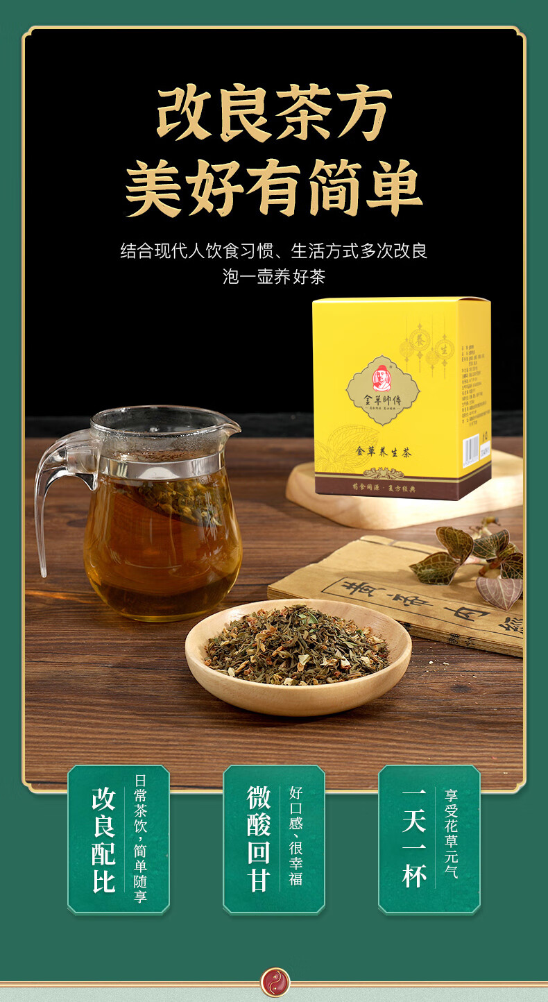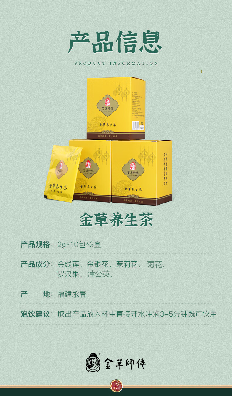 金草师傅金线莲菊花金银花罗汉果花茶茶包男士熬夜茶冬季无糖茶饮养生茶 【1盒养生茶+送2包养裨茶】总12包【体验装】
