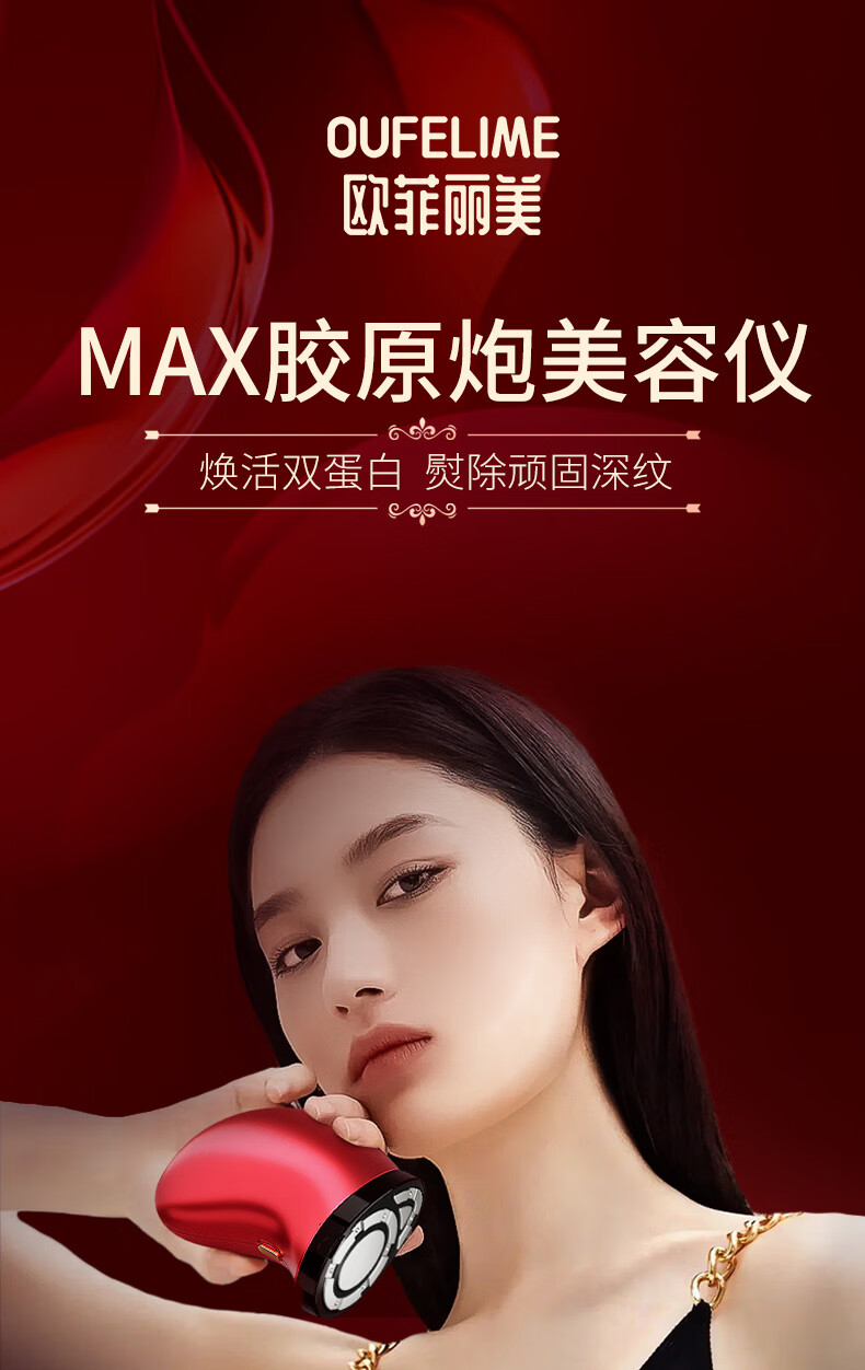 欧菲丽美超声波胶原炮美容仪器家用脸部导入仪嫩肤面部提拉紧致淡纹促成胶原 胶原炮四代【黑金款 抗初老 | 紧致淡纹】
