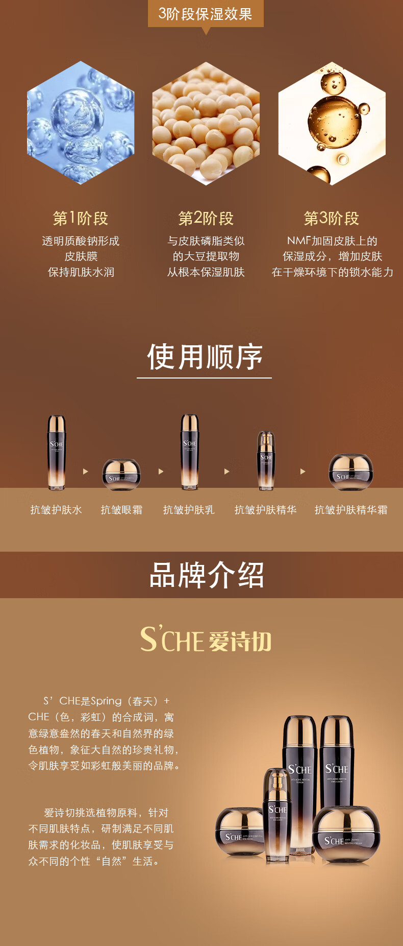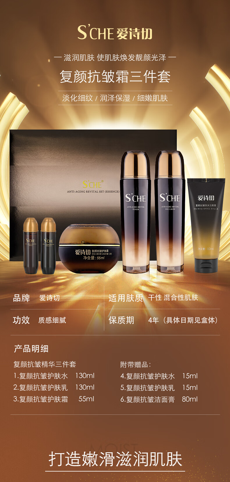 蕊痕(RUHEN)爱诗切复颜抗皱水乳护肤品套装礼盒 水+乳+精华套盒