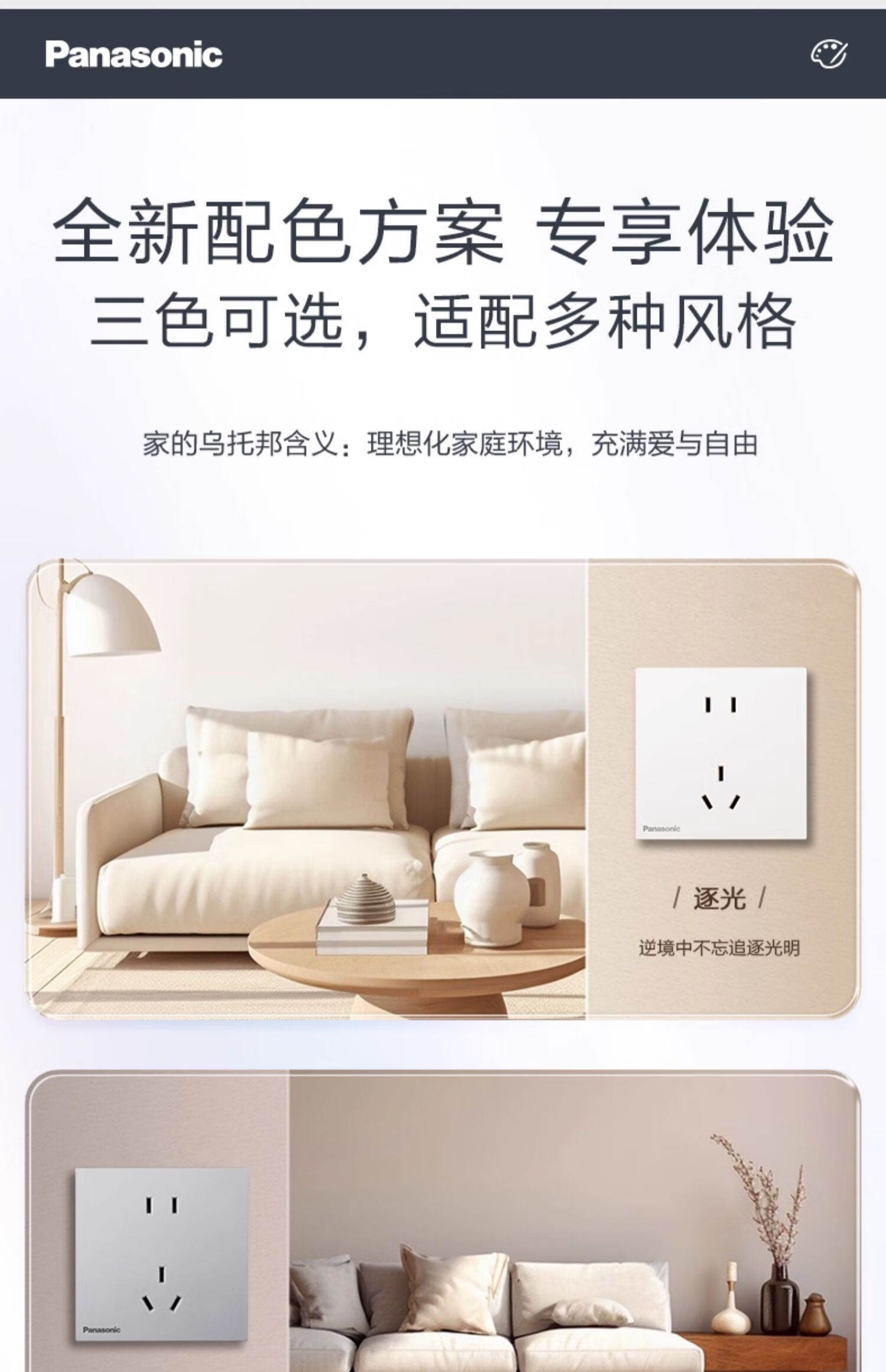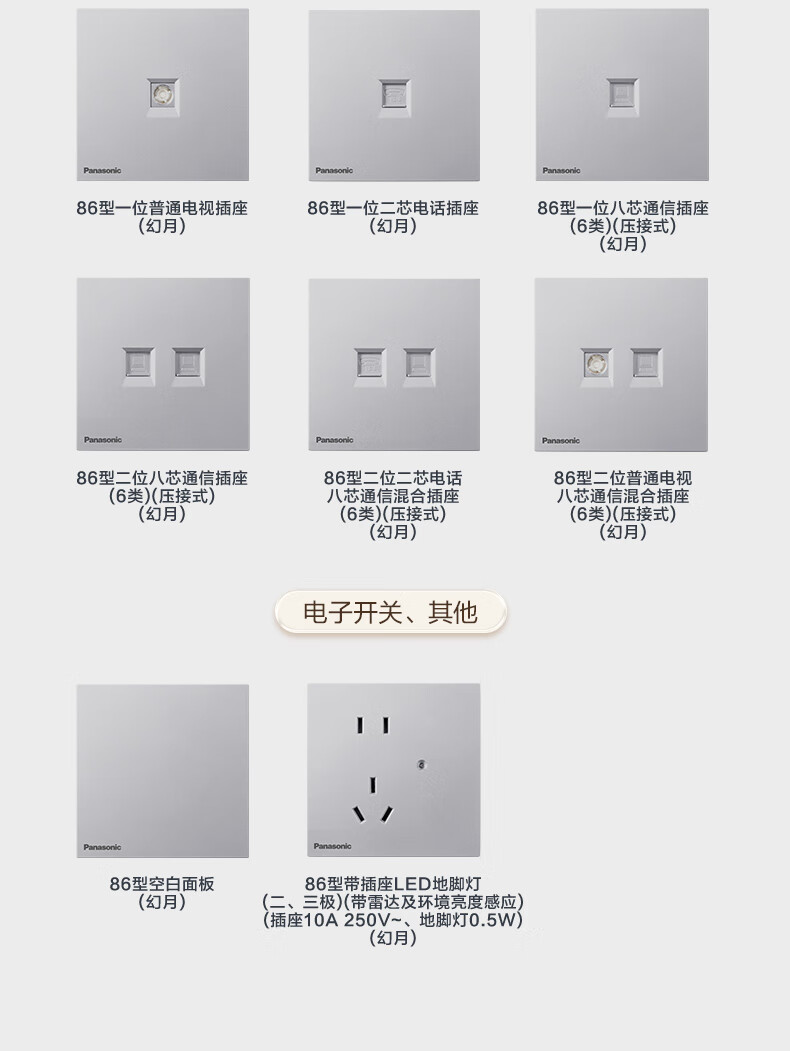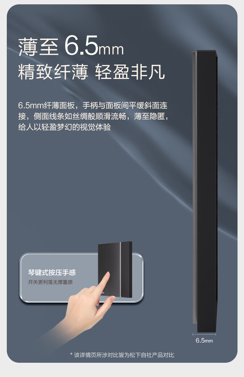 松下Panasonic开关插座焕境pro幻月灰色磨砂玻璃面板6.5mm纤薄家墙面 正五孔插座WMSA122MH