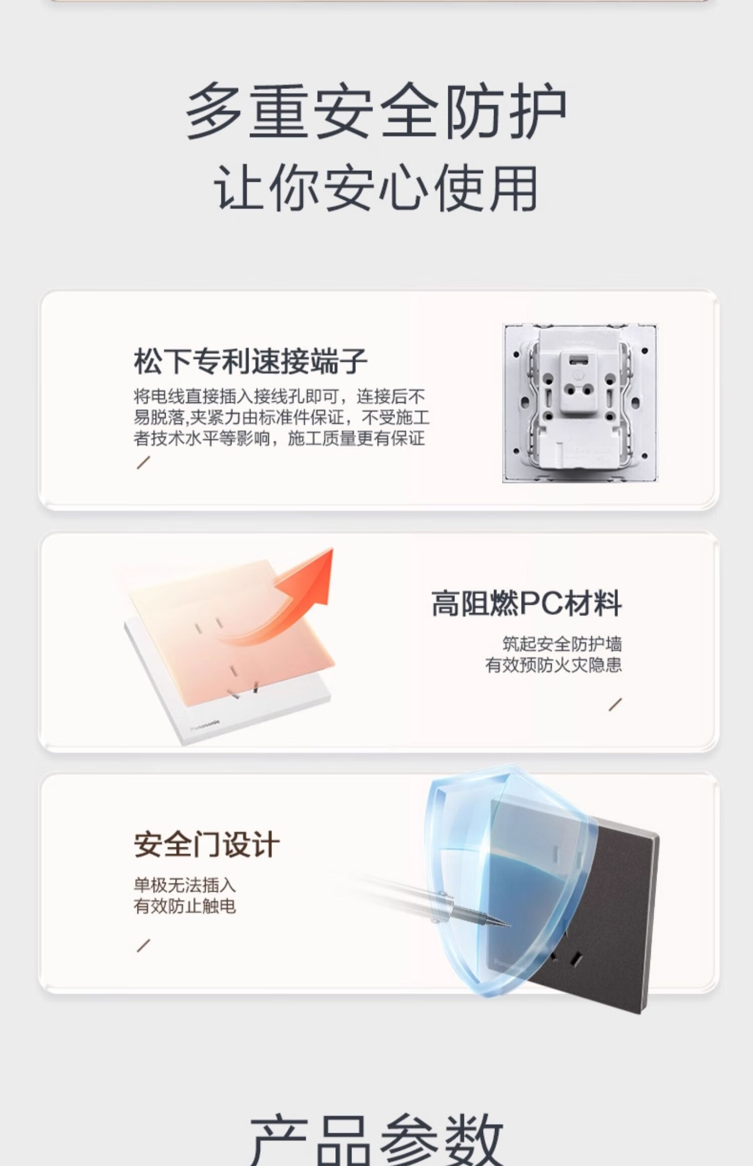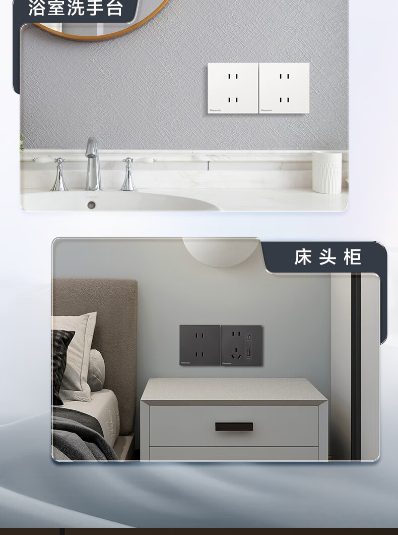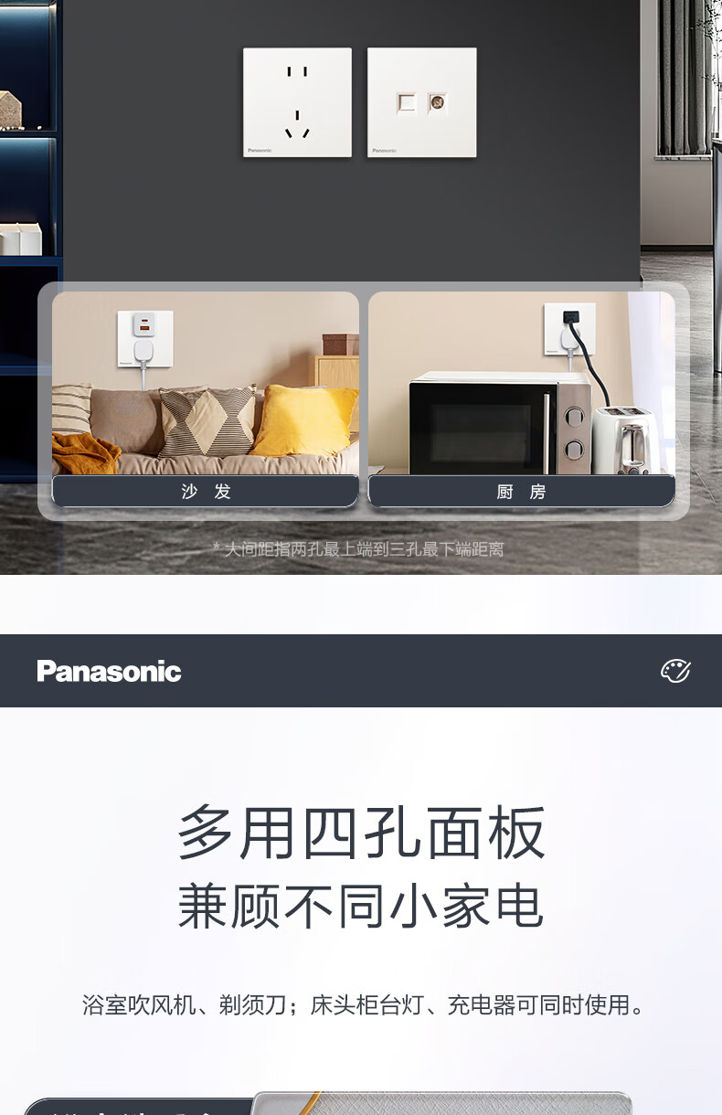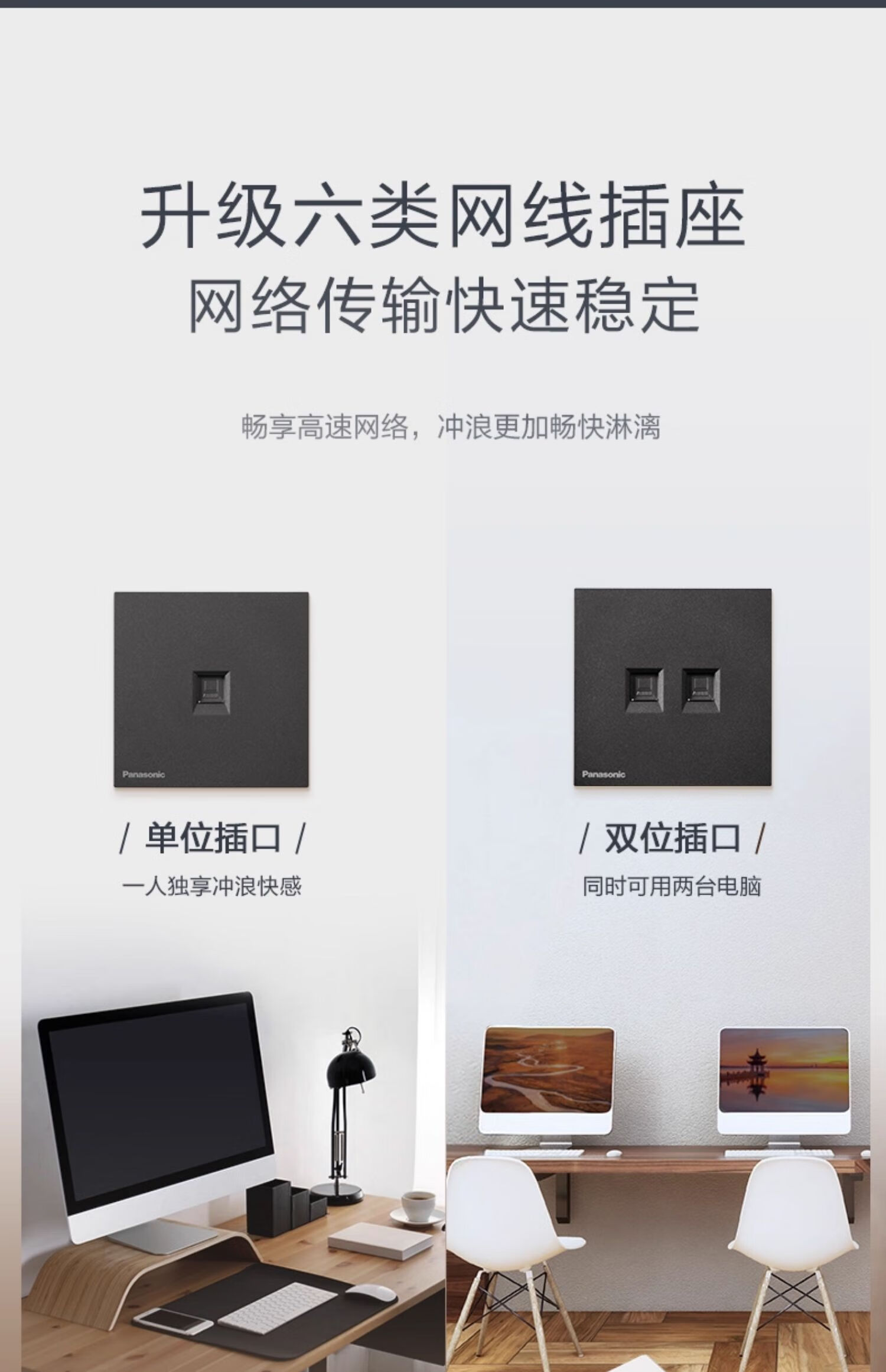 松下Panasonic开关插座焕境pro幻月灰色磨砂玻璃面板6.5mm纤薄家墙面 正五孔插座WMSA122MH