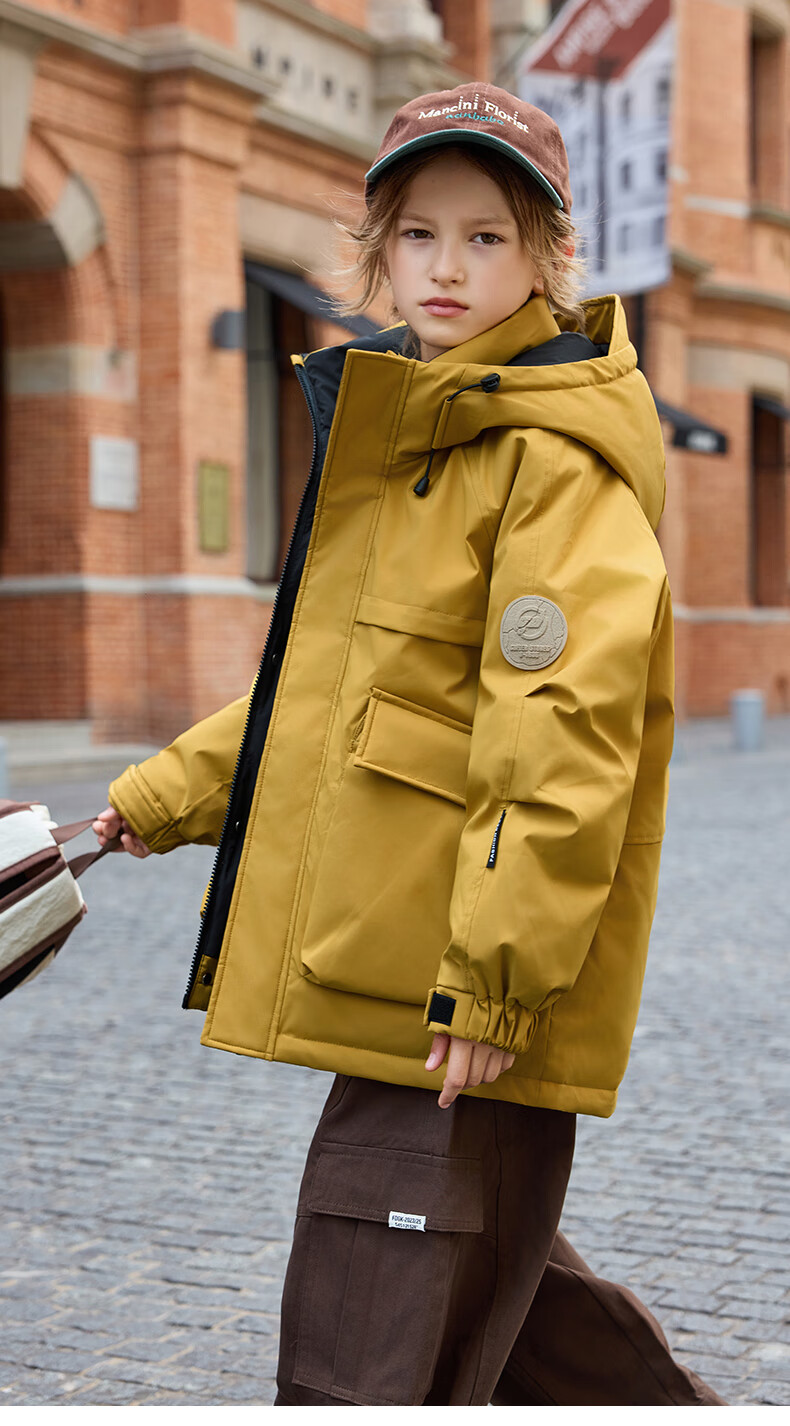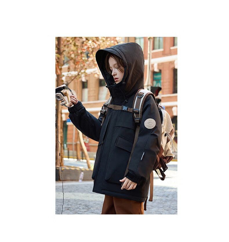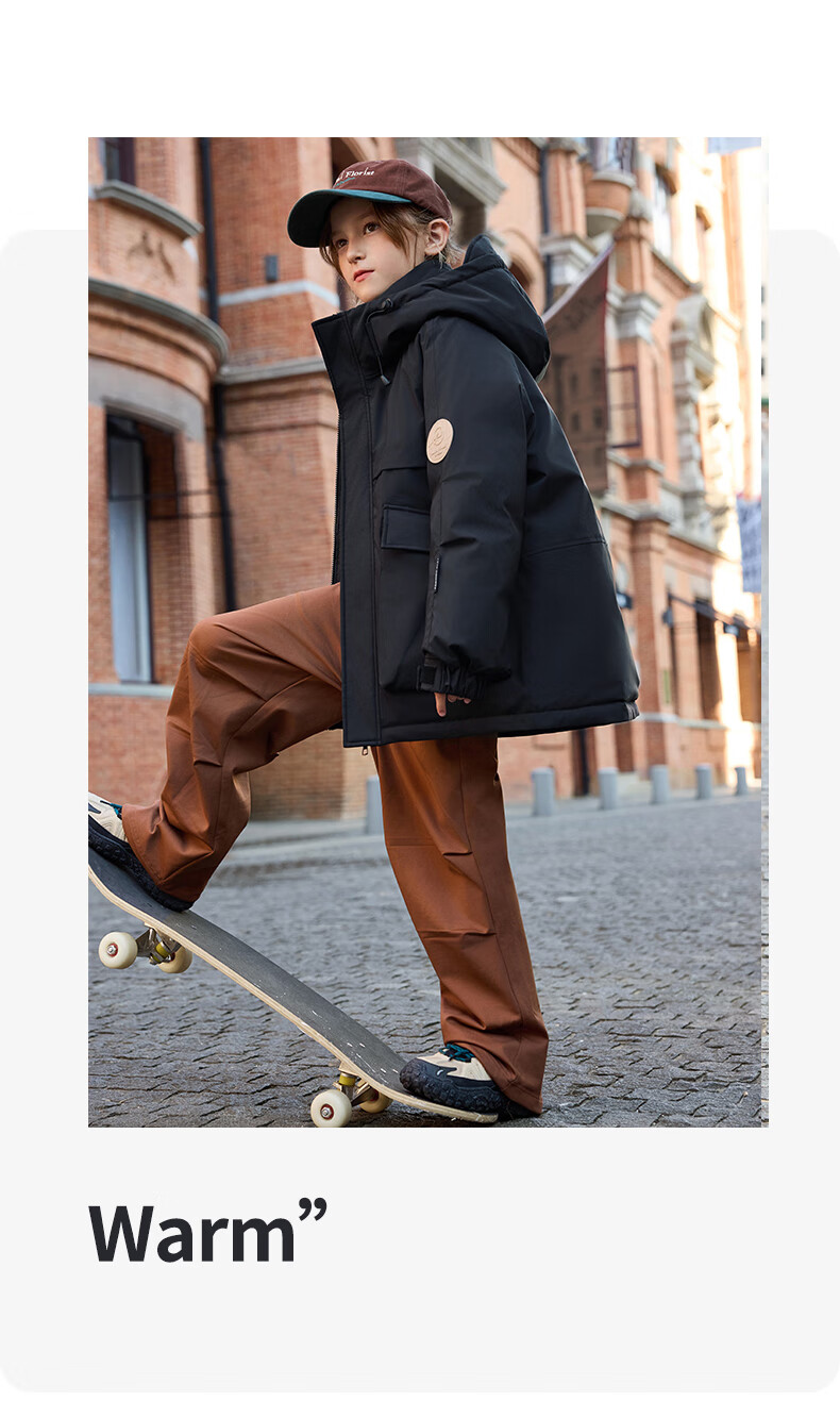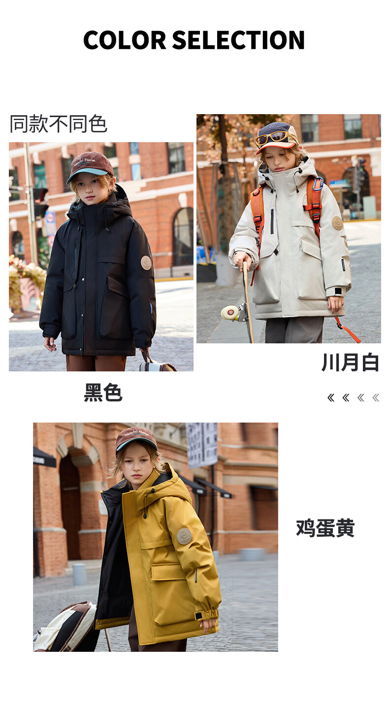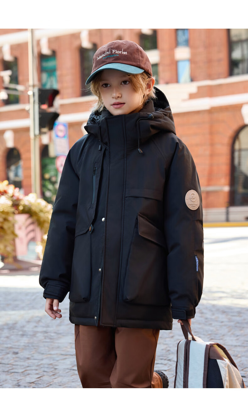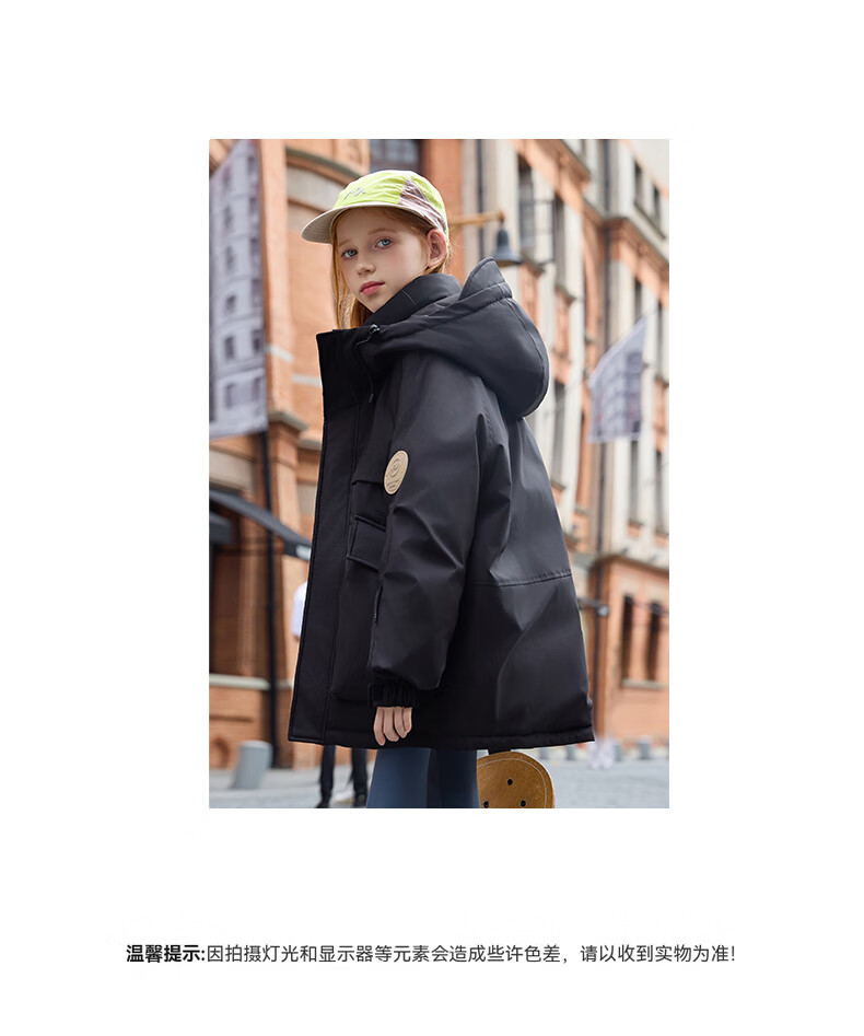 ABC KAIA童装新款儿童羽绒服男童中大童中长款白鸭绒女童加厚洋气冬装外套 黑色(男童) 120