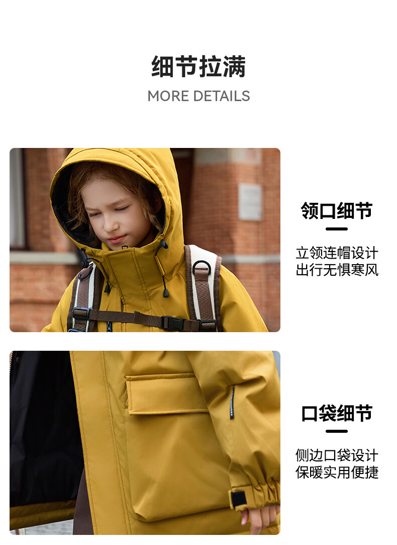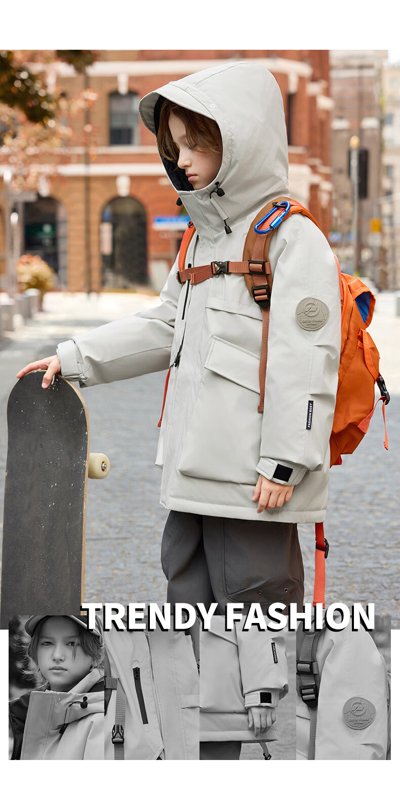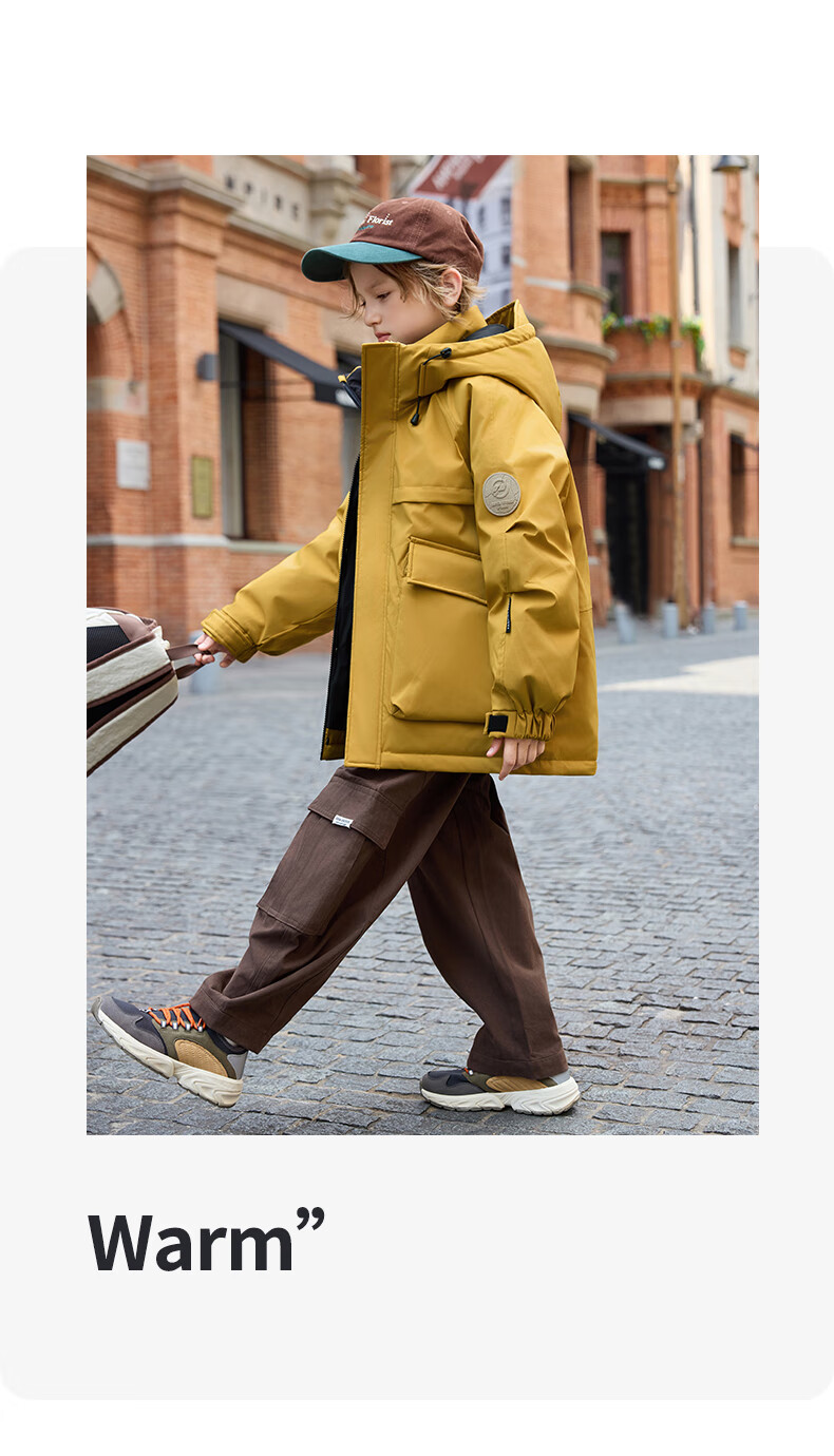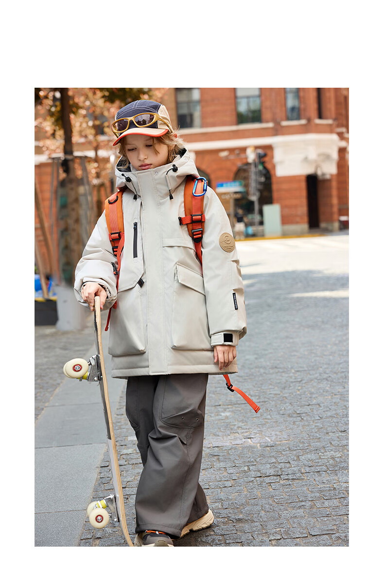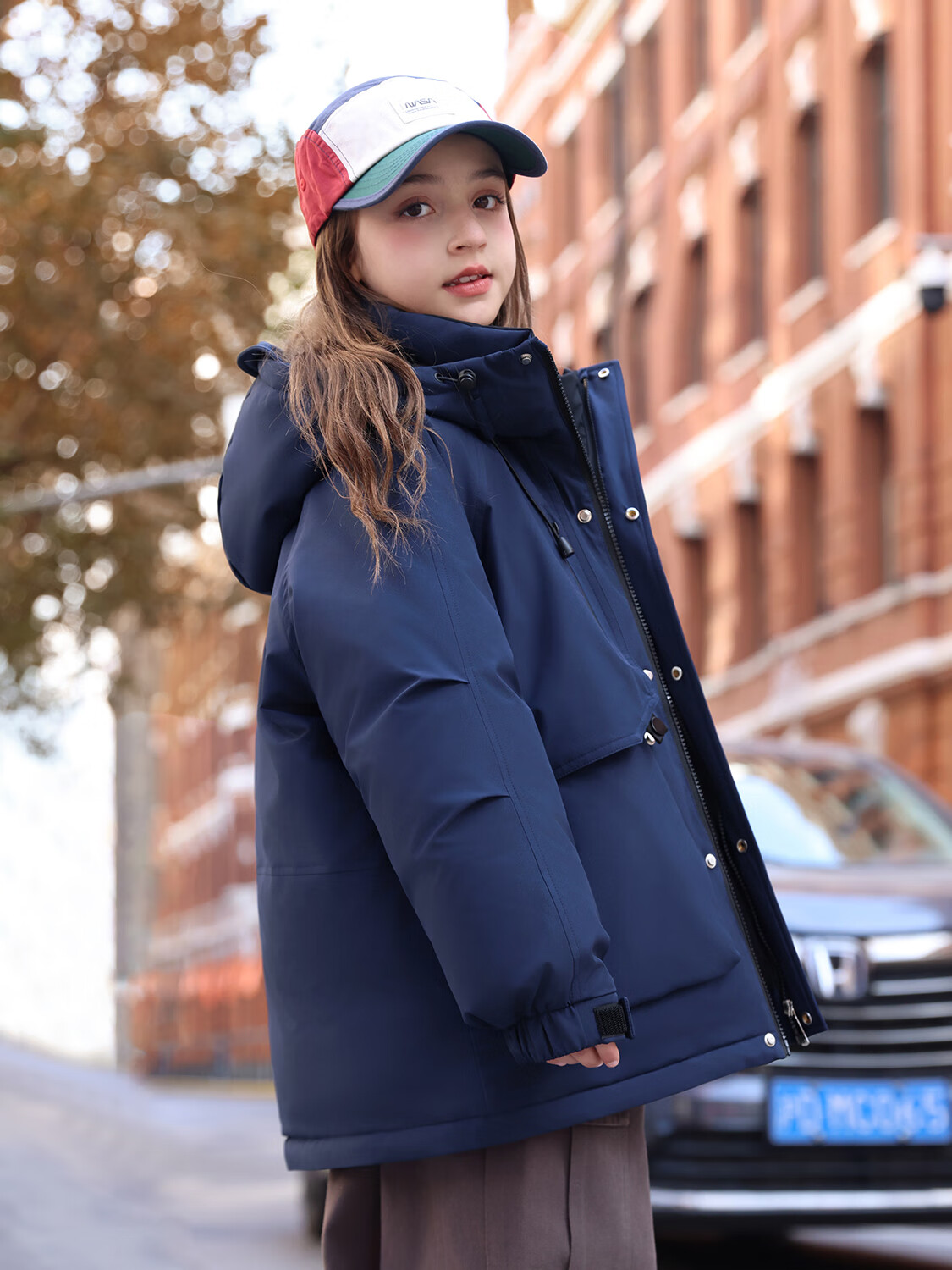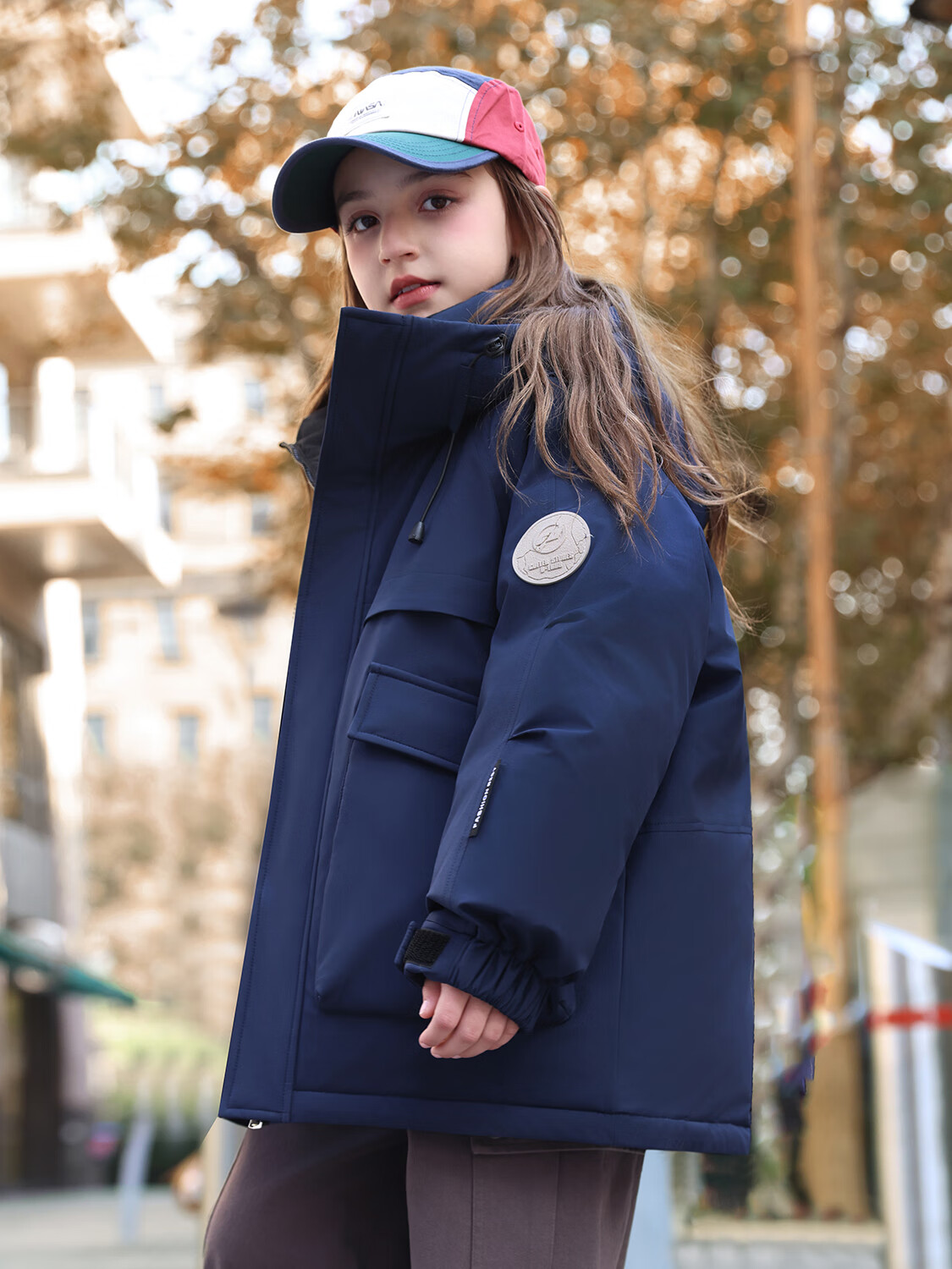 ABC KAIA童装新款儿童羽绒服男童中大童中长款白鸭绒女童加厚洋气冬装外套 黑色(男童) 120