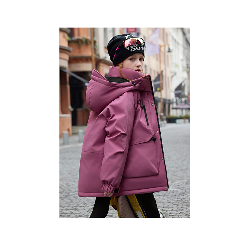 ABC KAIA女童羽绒服中长款2025新款洋气儿童正品品牌加厚外套女孩大童冬装 粉色(带毛领) 120