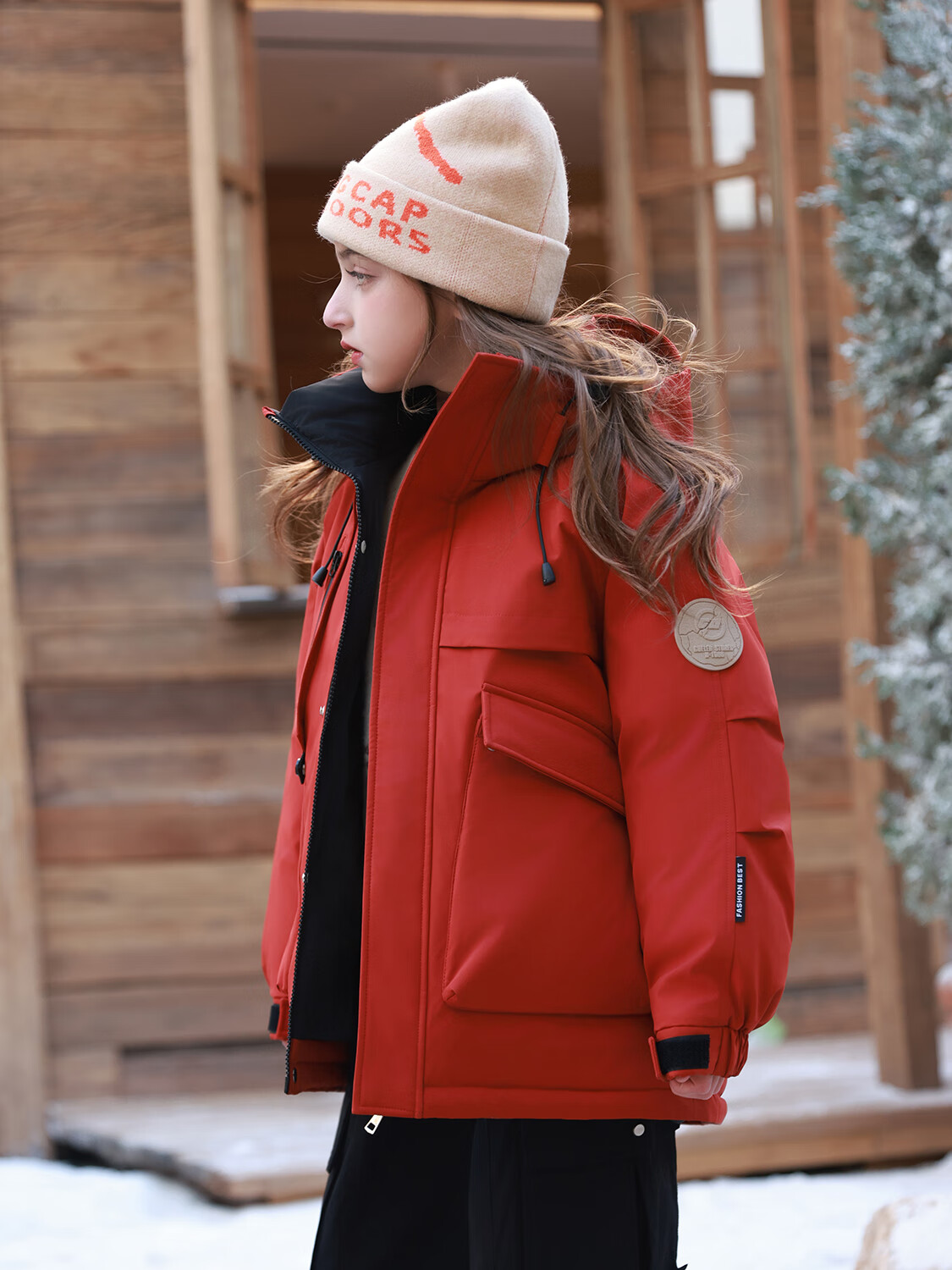 ABC KAIA女童羽绒服中长款2025新款洋气儿童正品品牌加厚外套女孩大童冬装 红色(带毛领) 160