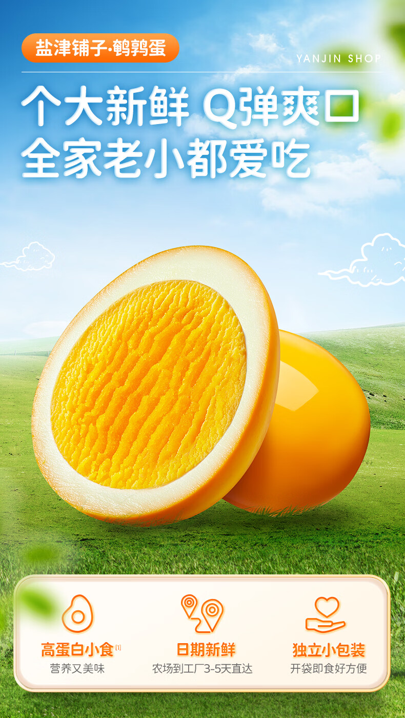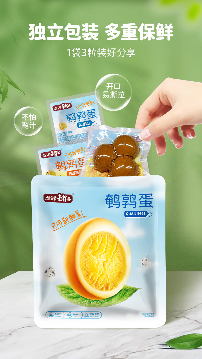 盐津铺子 鹌鹑蛋卤蛋休闲食品零食小吃即食独立包装 60颗400g+4颗试吃【共约64颗】混合味