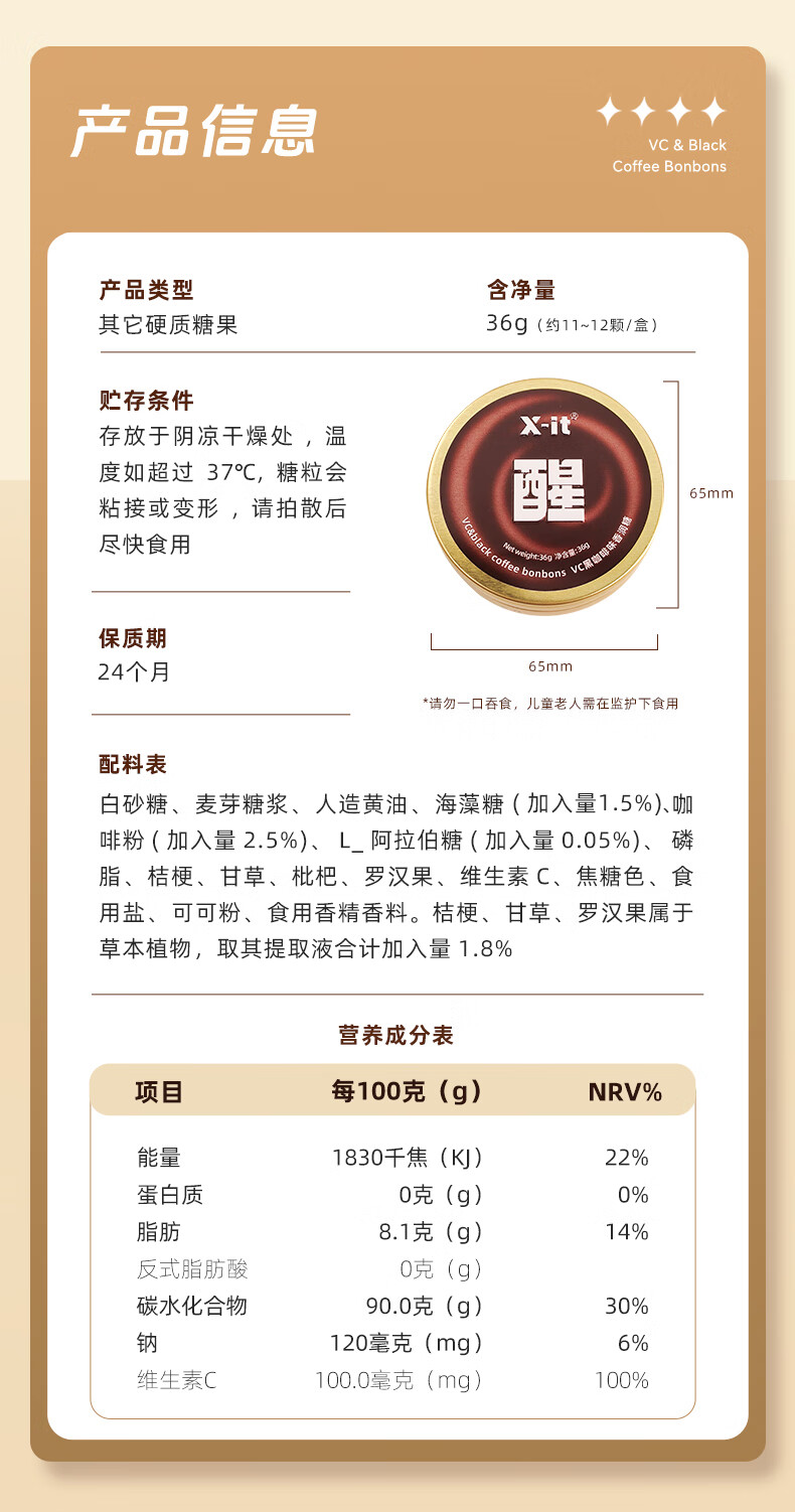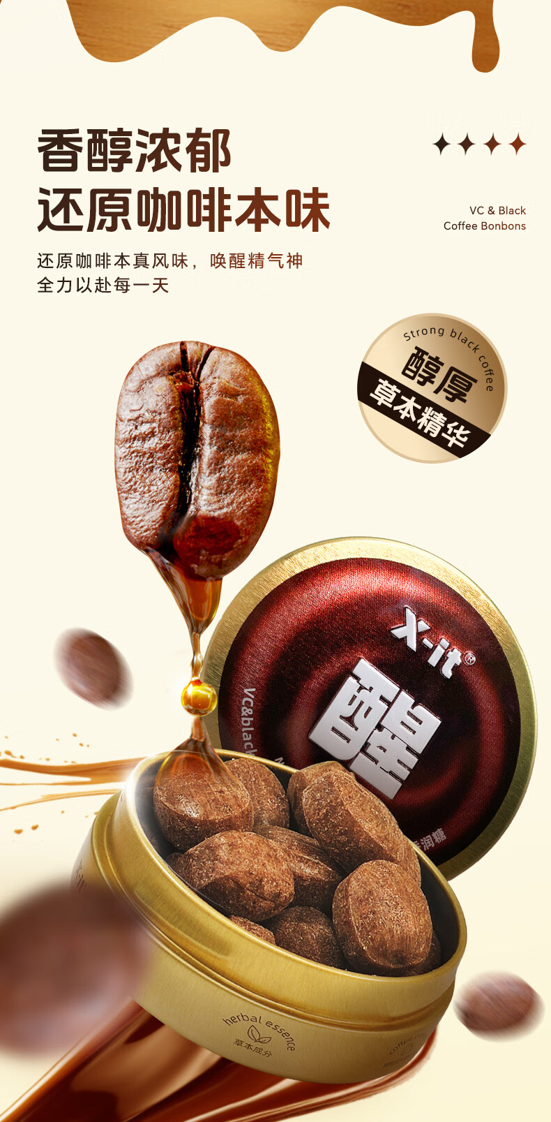 益美滋 冰咖啡糖 美式黑咖啡味 36g*2 VC润喉糖 开车学习加班犯困醒神