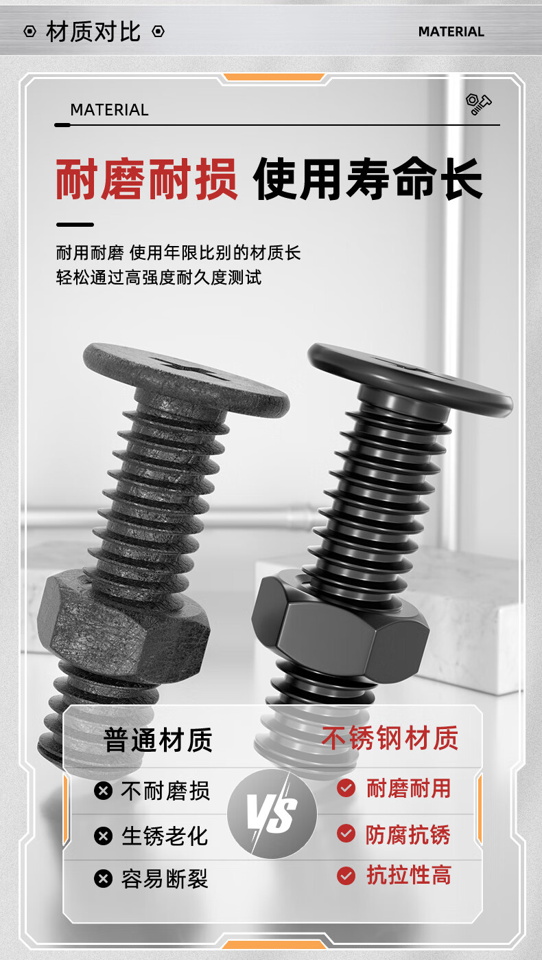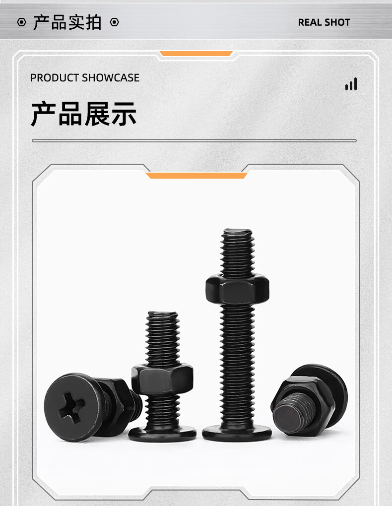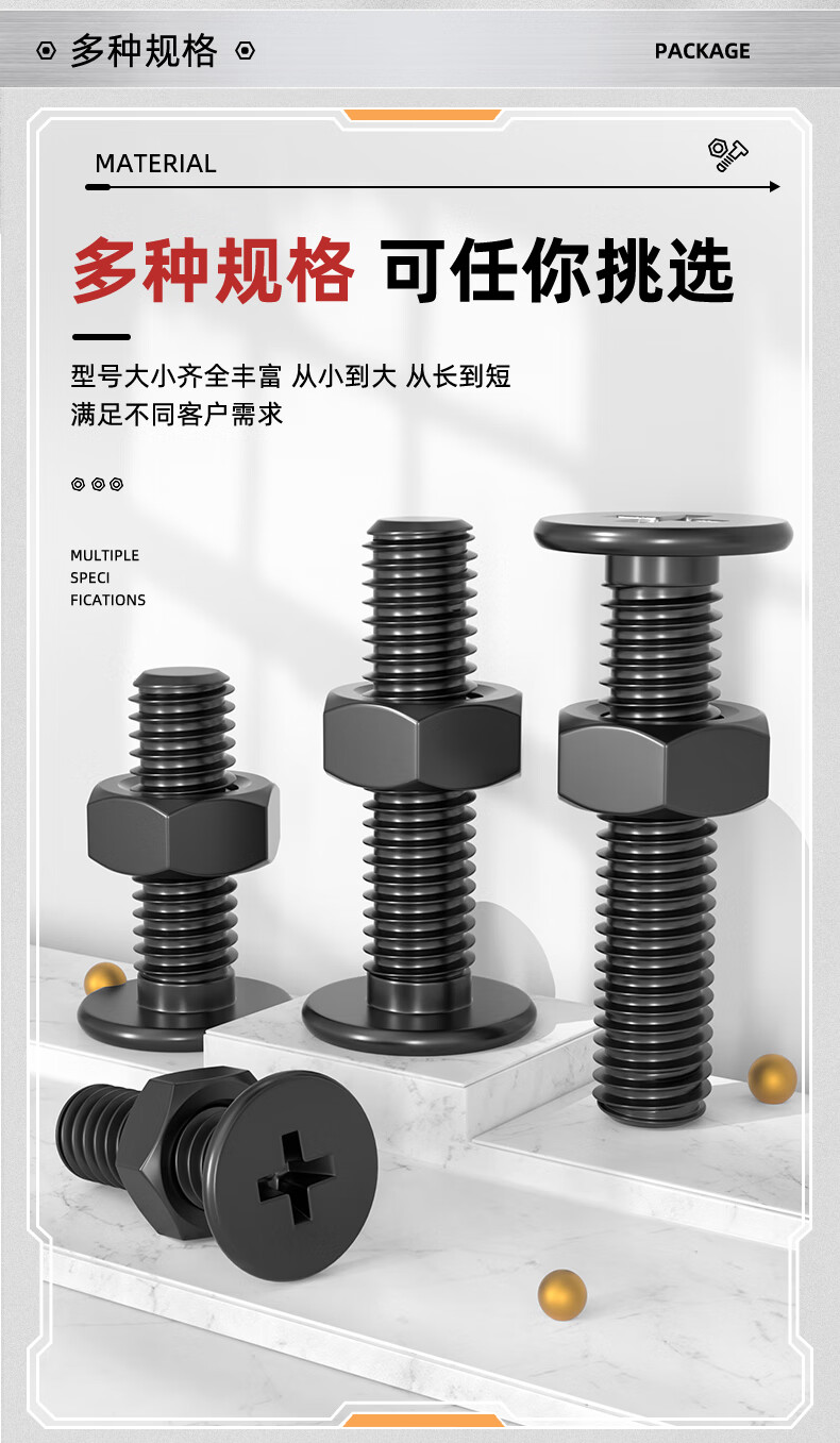 天卓五金黑色304不锈钢CM薄头十字扁平头大平头螺丝钉法兰螺母组合套装 白304-M2.5*3(头径5)【50套】