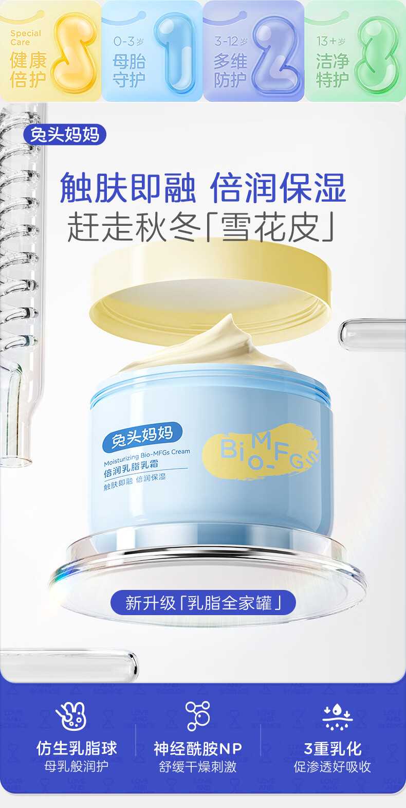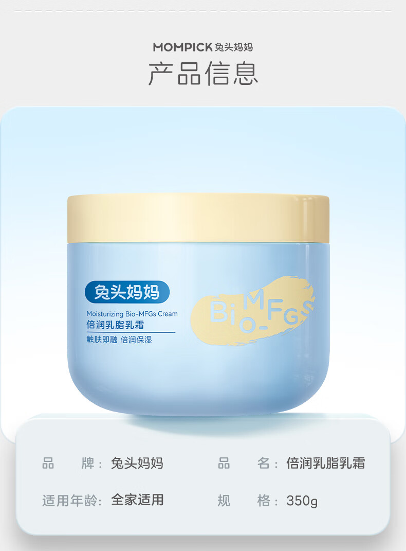 兔头妈妈儿童乳脂乳霜350g 婴儿保湿乳脂霜润肤乳 乳脂乳霜350g+护手霜30g