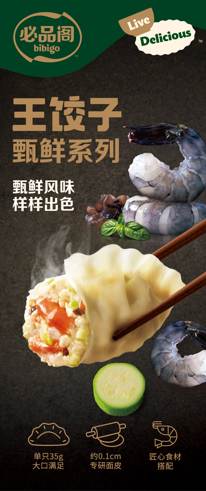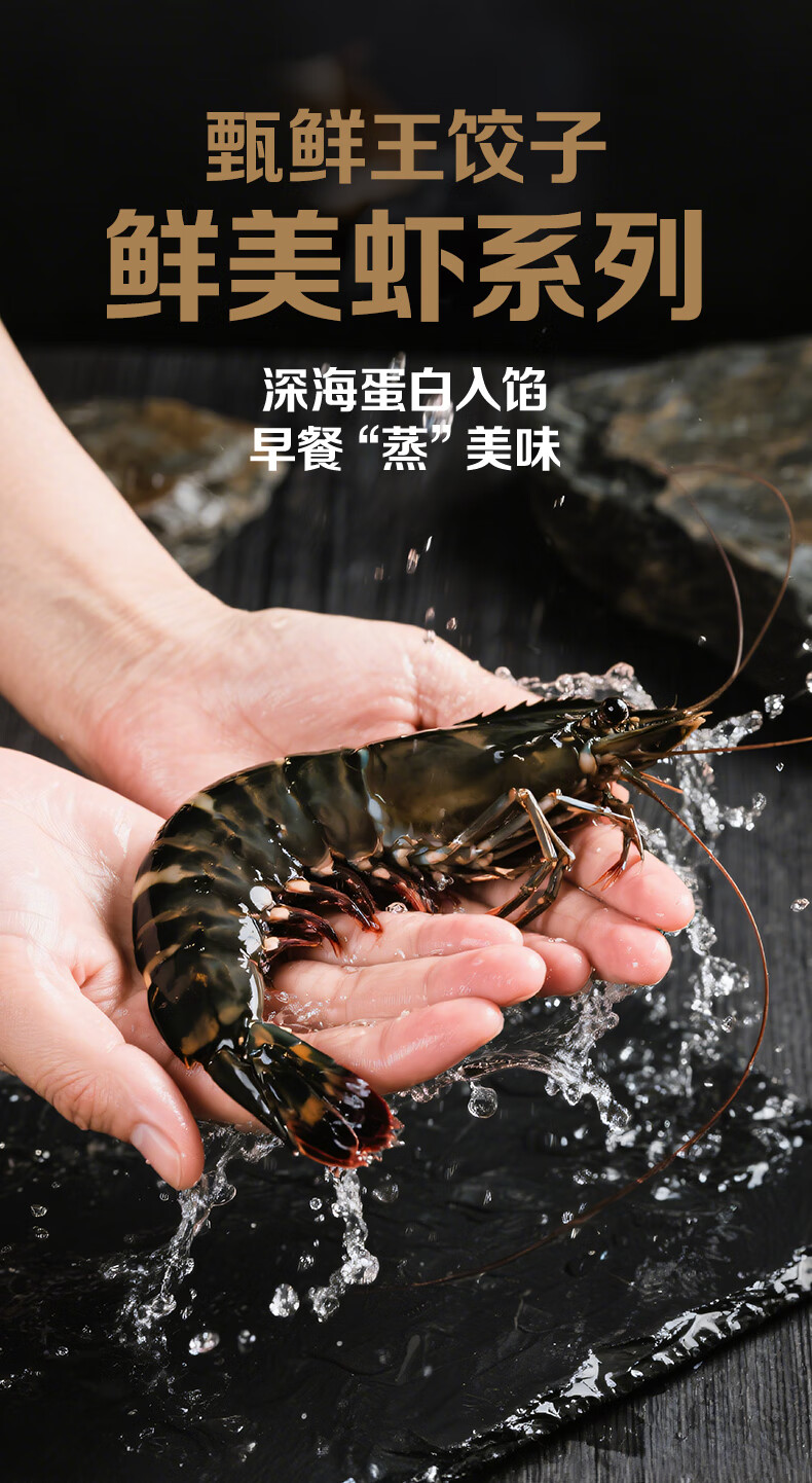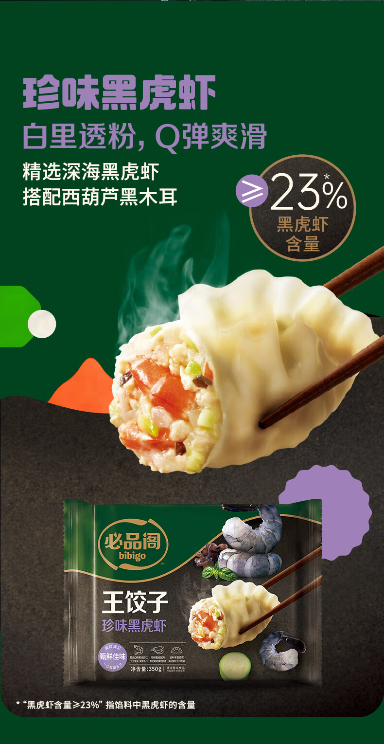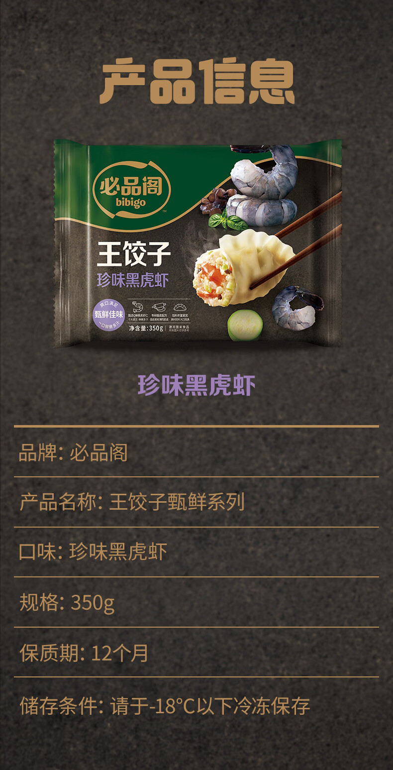 必品阁王饺子 珍味黑虎虾350g/袋 10只装 早餐夜宵 生鲜 速食水饺 煎饺
