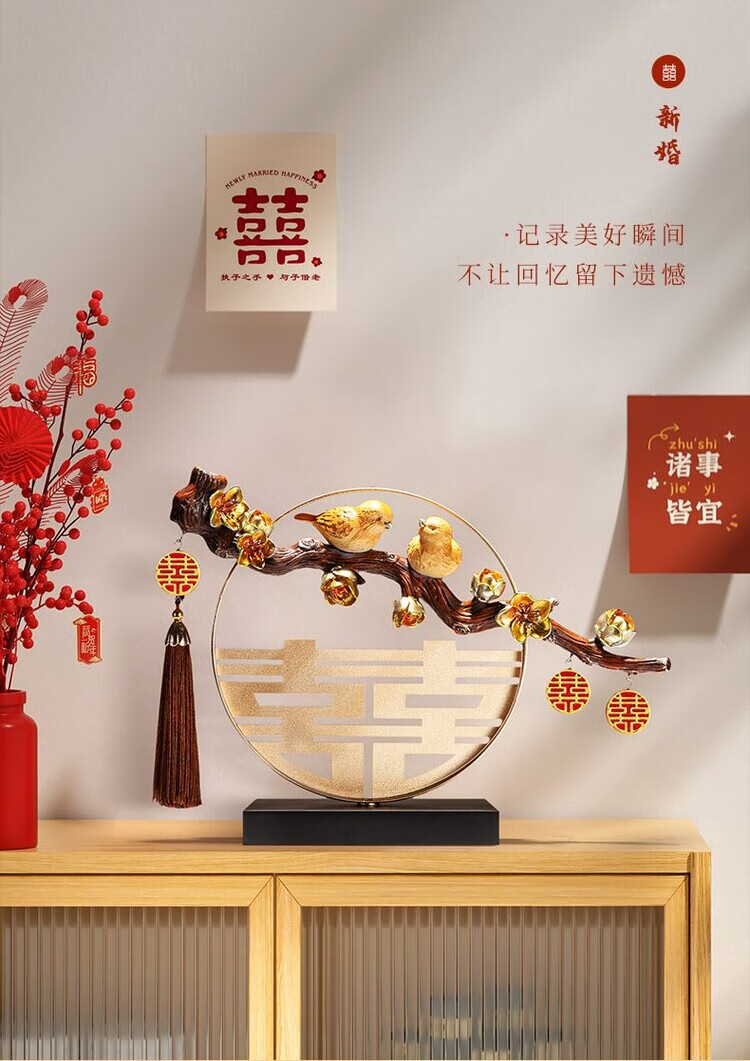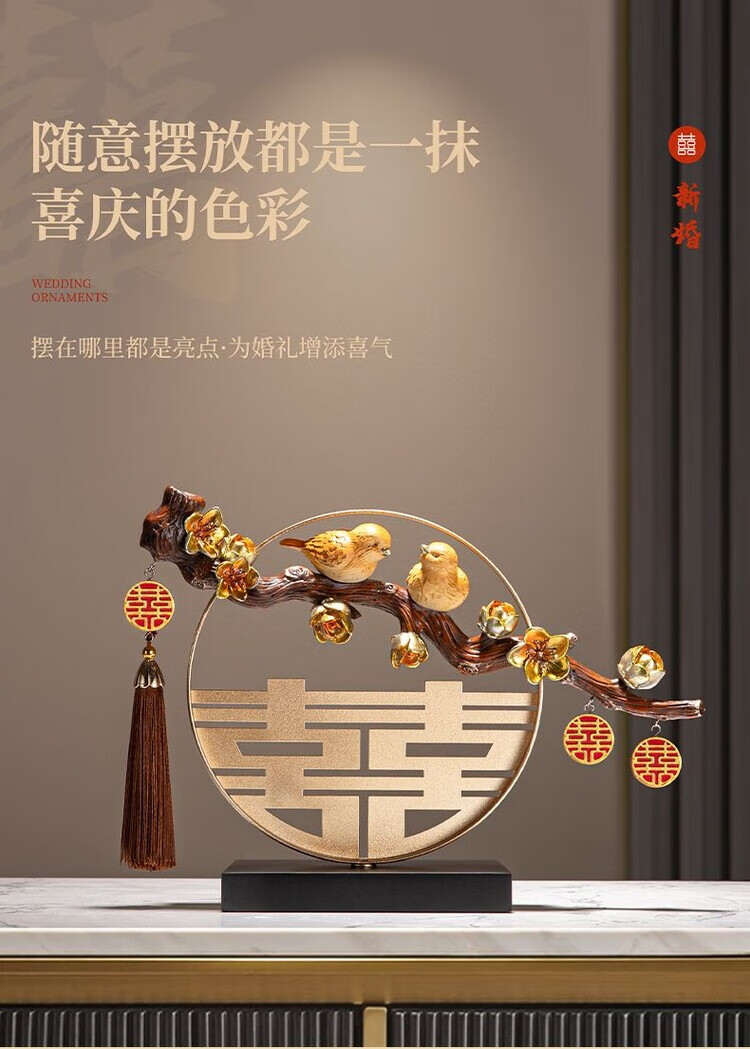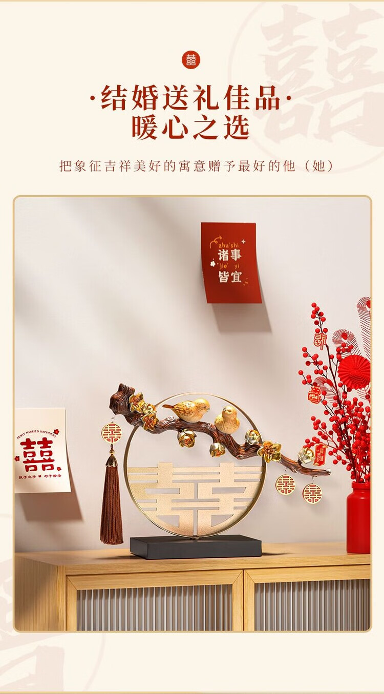 OYKTN新婚礼物送新娘新人送闺蜜订婚结婚礼品高级实用新中式送礼摆件 囍事临门 金色【赠礼盒】