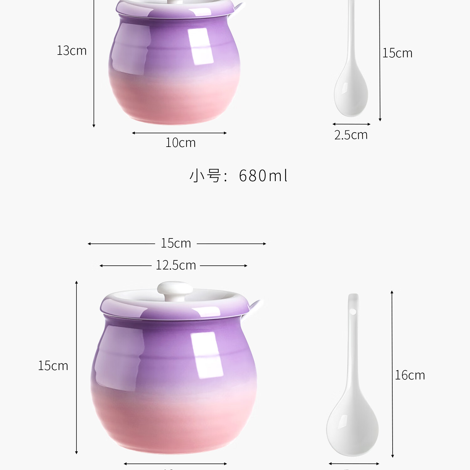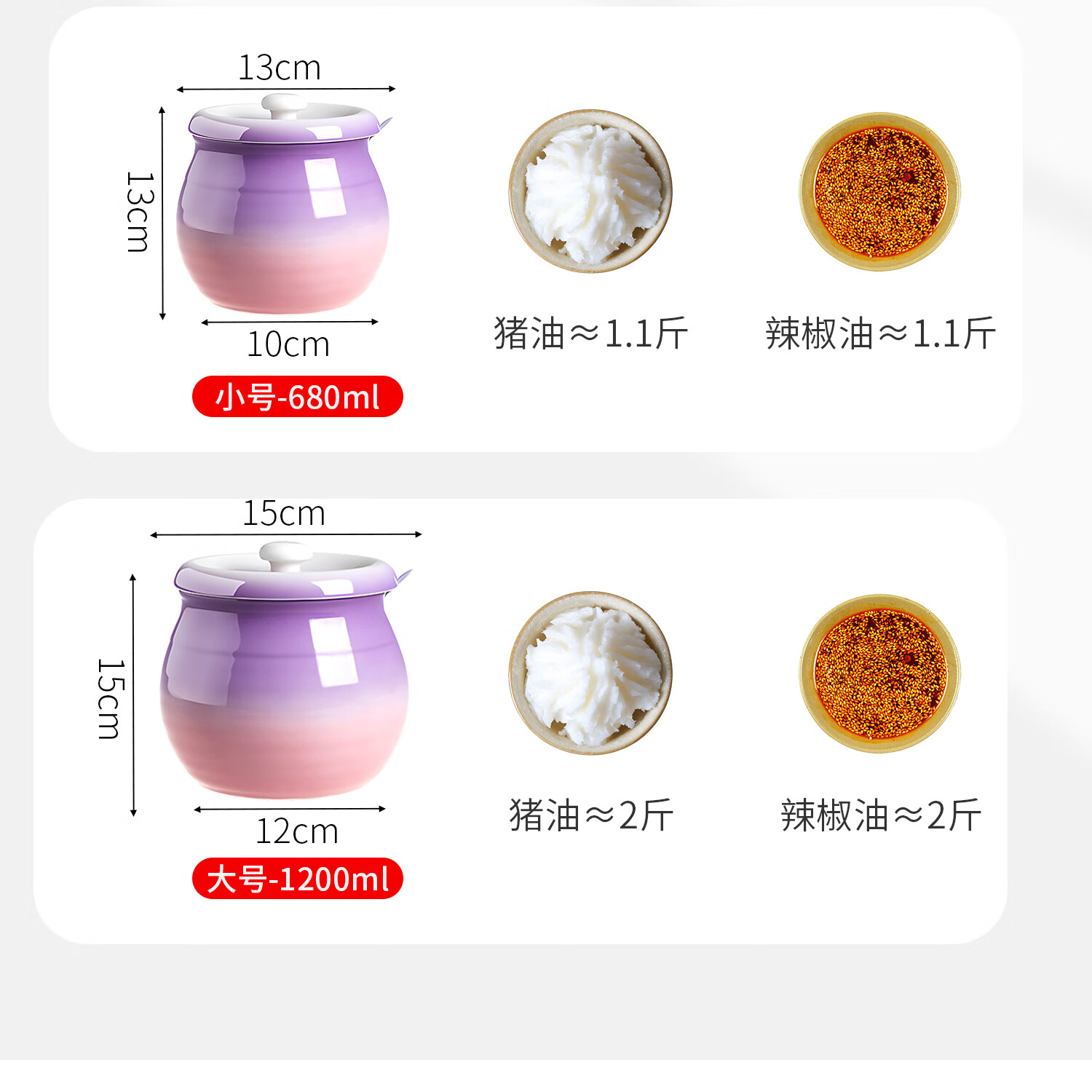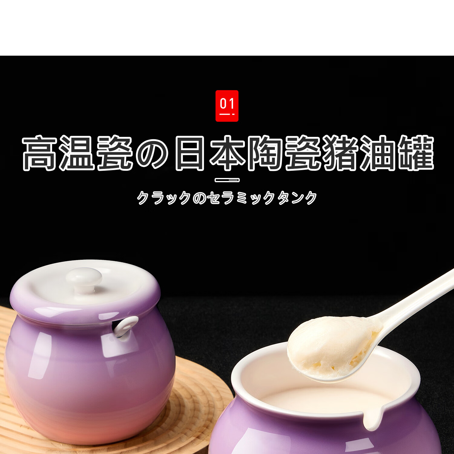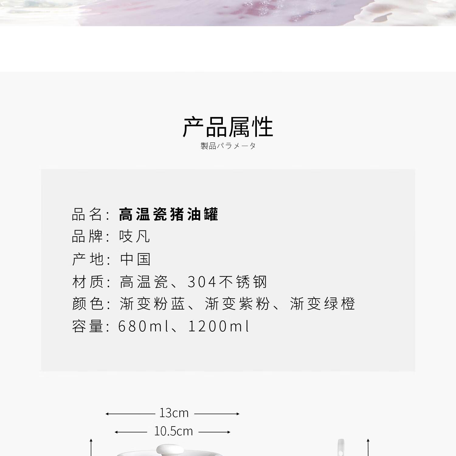 吱凡日本厨房猪油罐陶瓷带盖家用耐高温食品级油泼辣椒油专用储藏罐子 680ml渐变紫粉【送304不锈钢过滤网+勺】