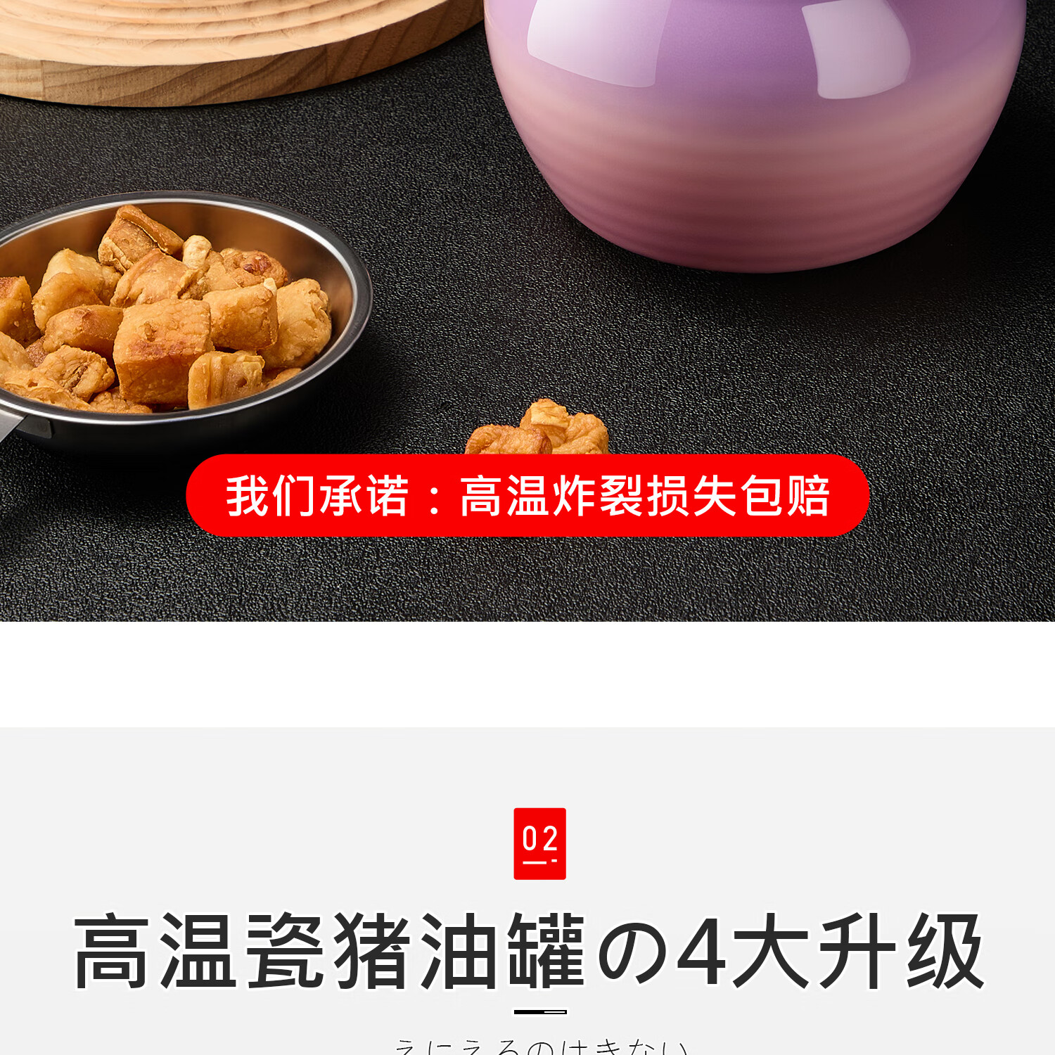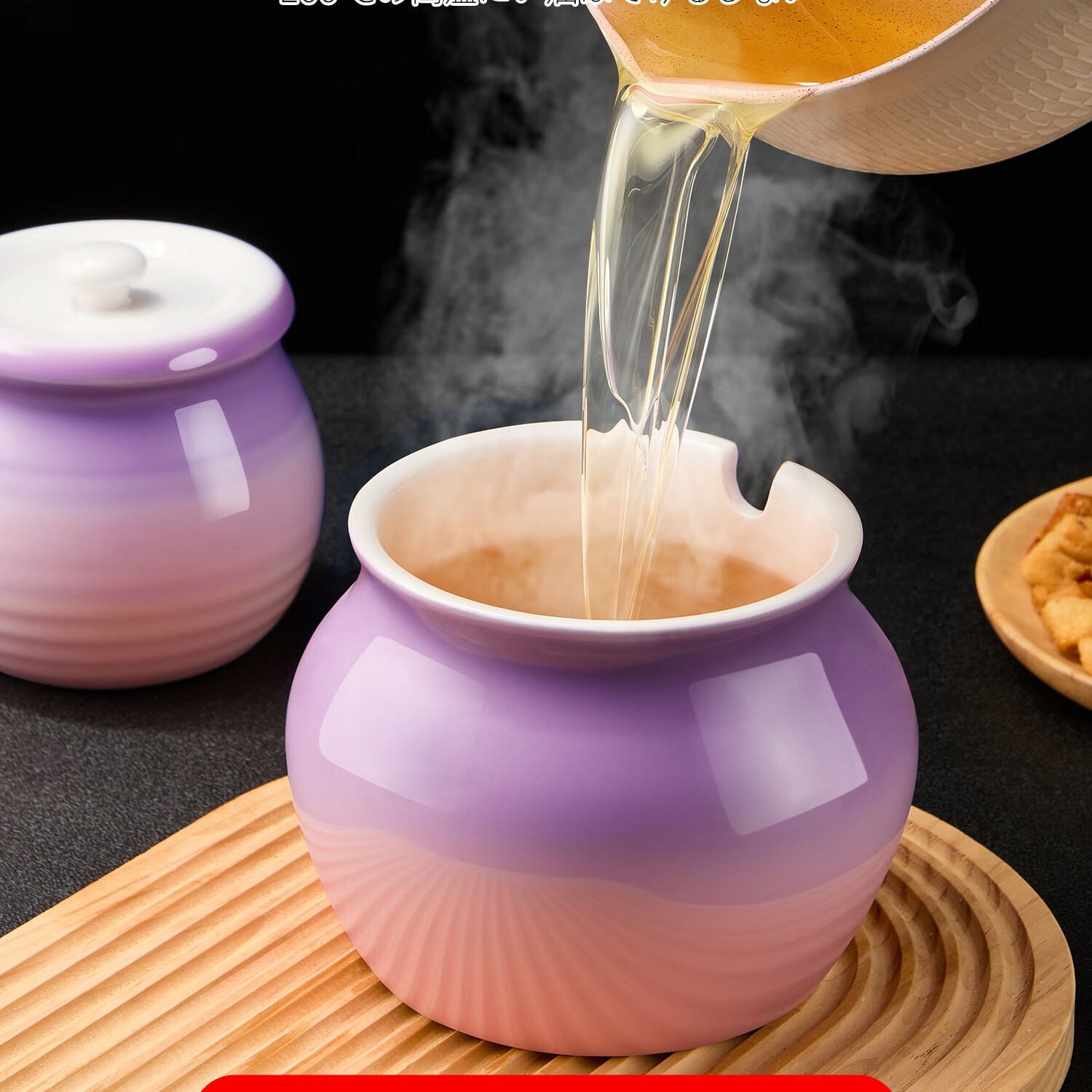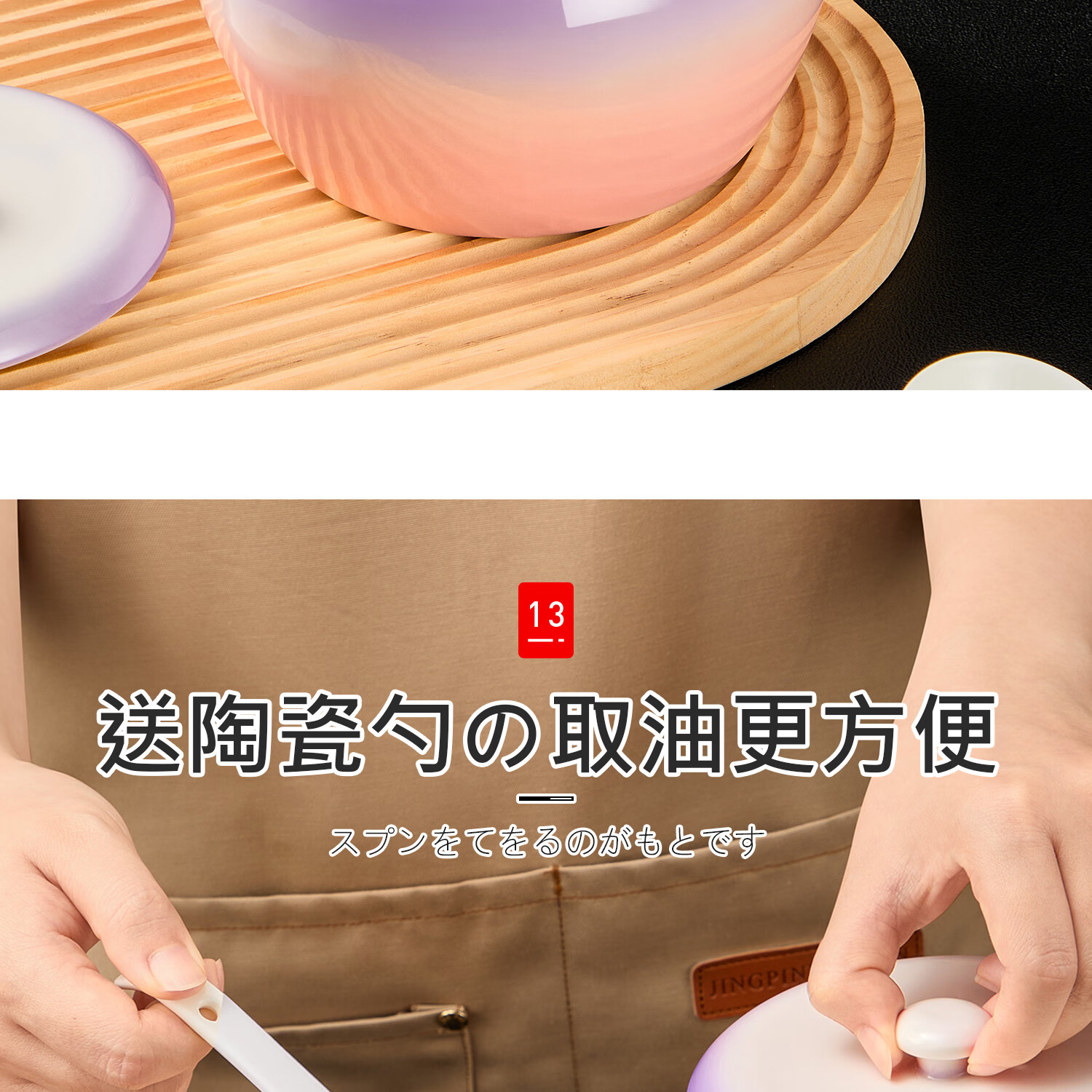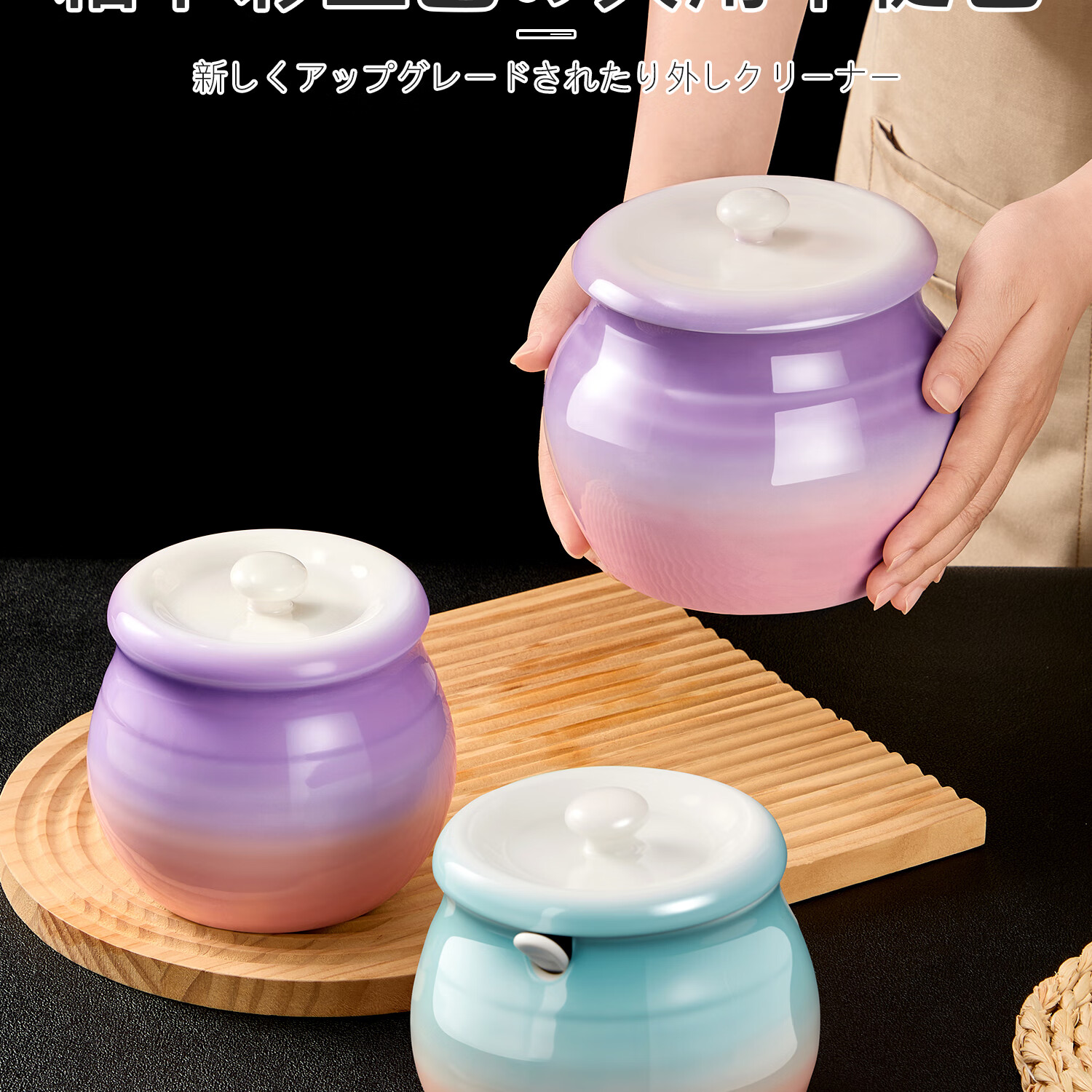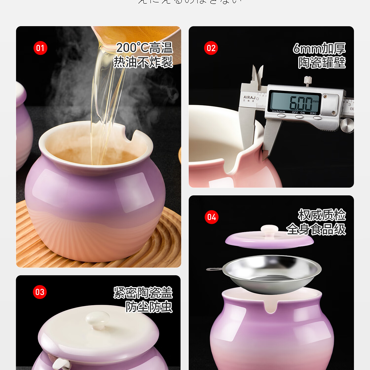 吱凡日本厨房猪油罐陶瓷带盖家用耐高温食品级油泼辣椒油专用储藏罐子 680ml渐变紫粉【送304不锈钢过滤网+勺】