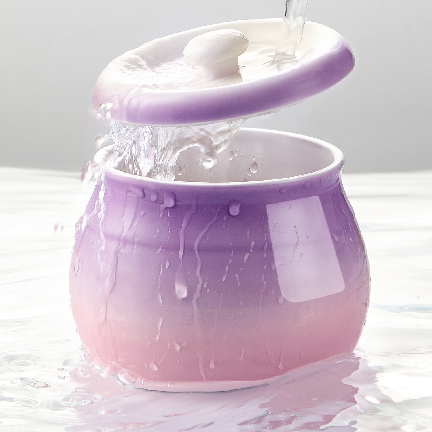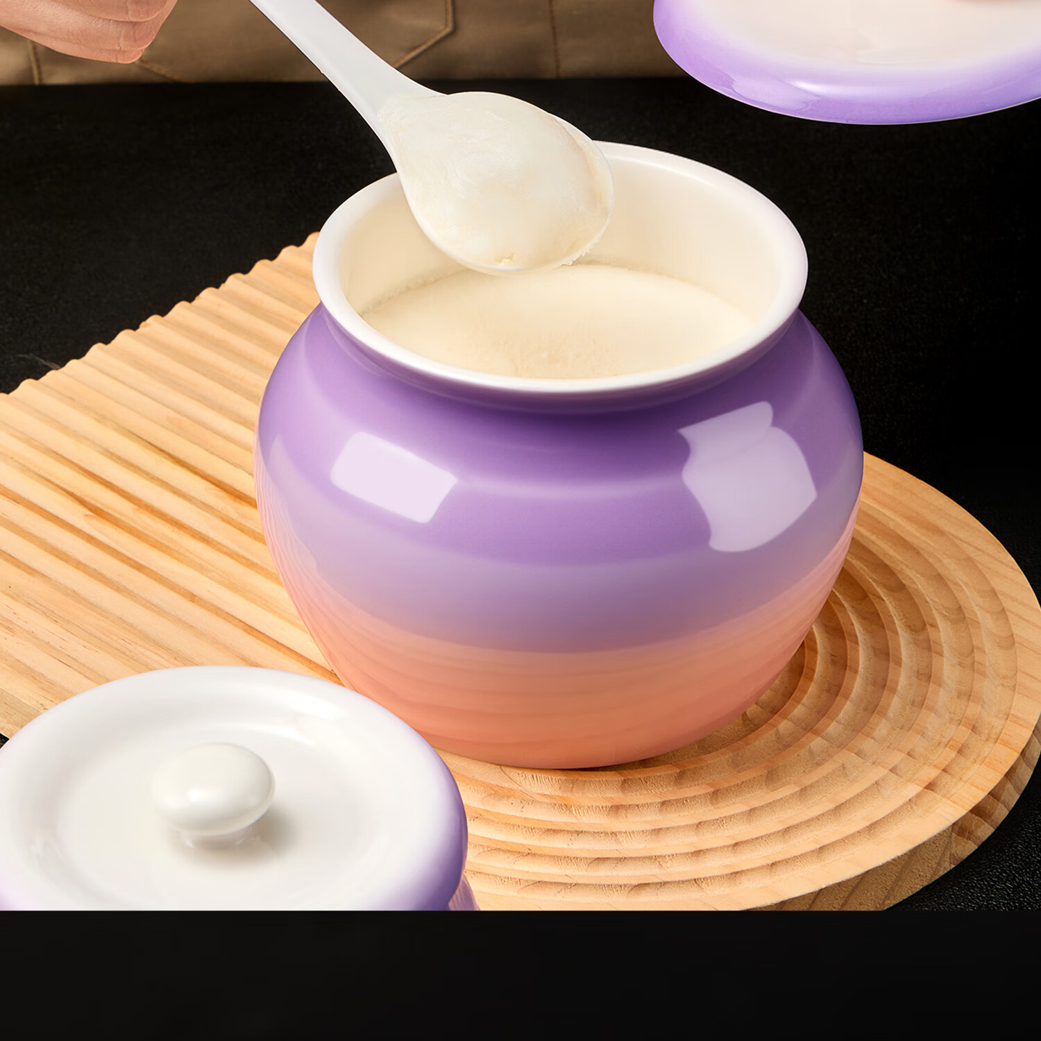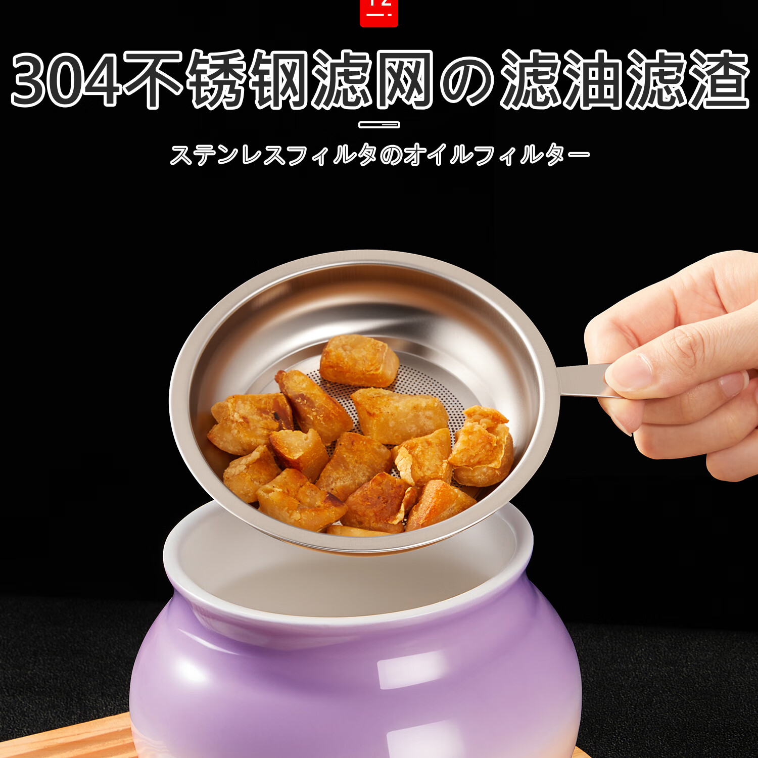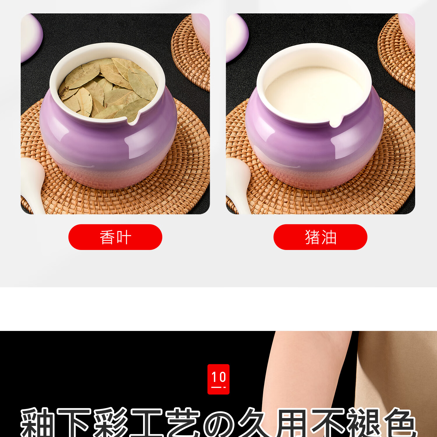 吱凡日本厨房猪油罐陶瓷带盖家用耐高温食品级油泼辣椒油专用储藏罐子 680ml渐变紫粉【送304不锈钢过滤网+勺】