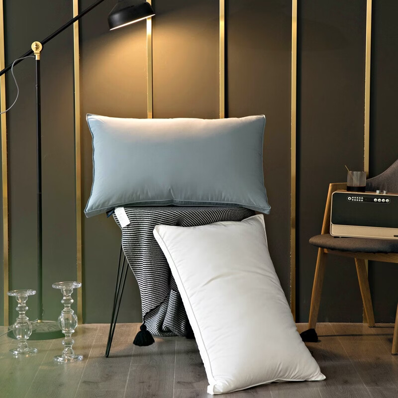元族2025新款60贡缎立体双层羽绒枕 纯棉鹅绒枕酒店民宿枕芯脊椎枕头 白色 74cm 48*单只
