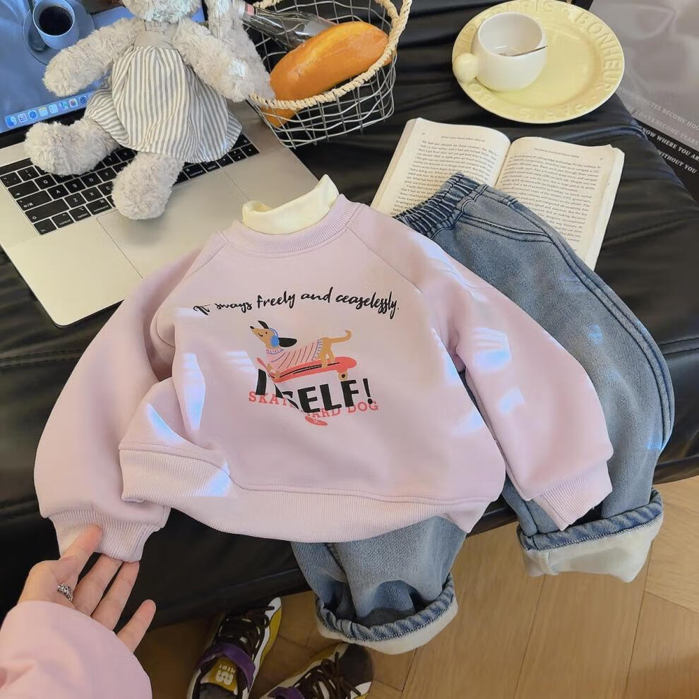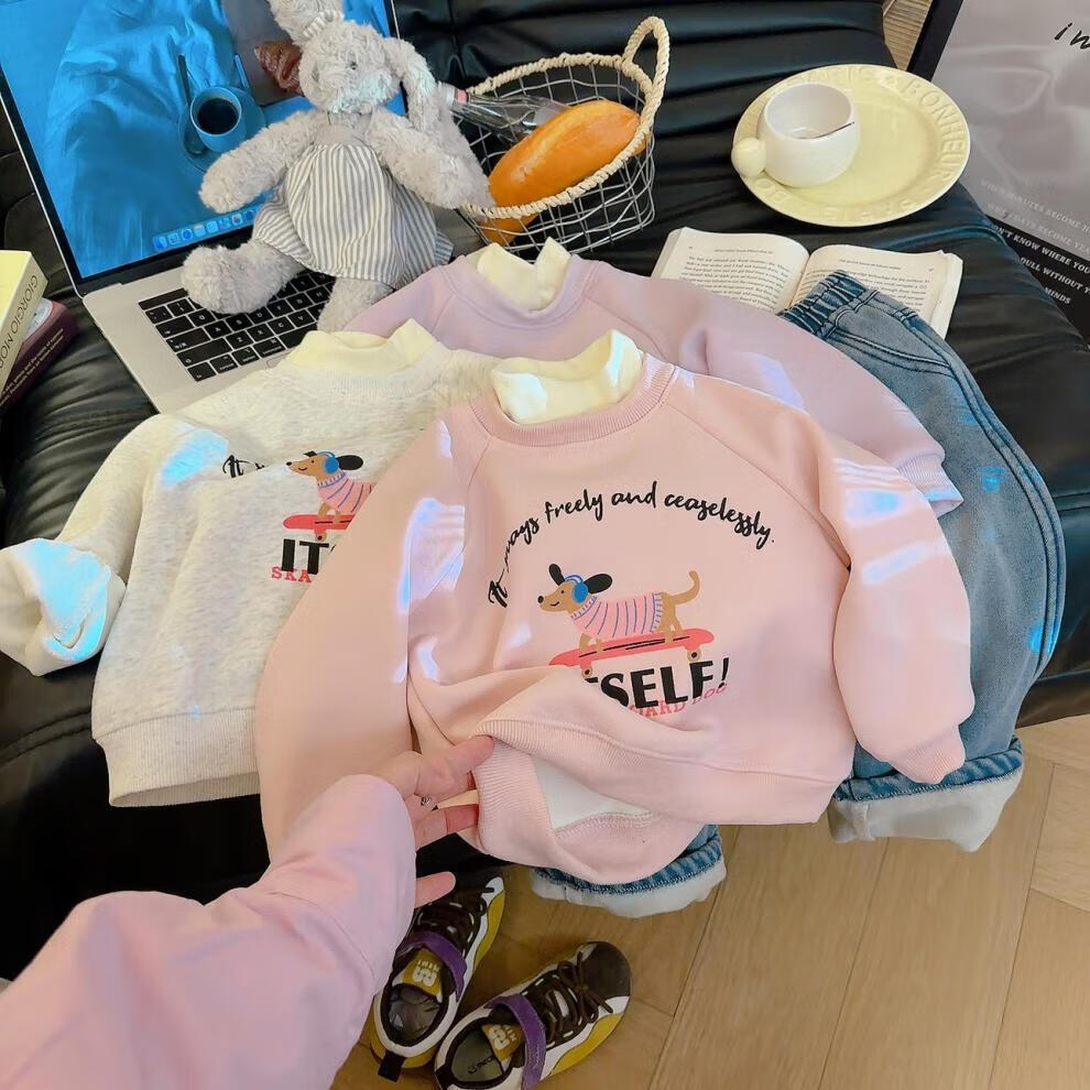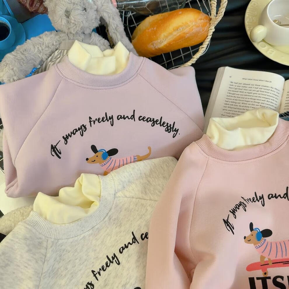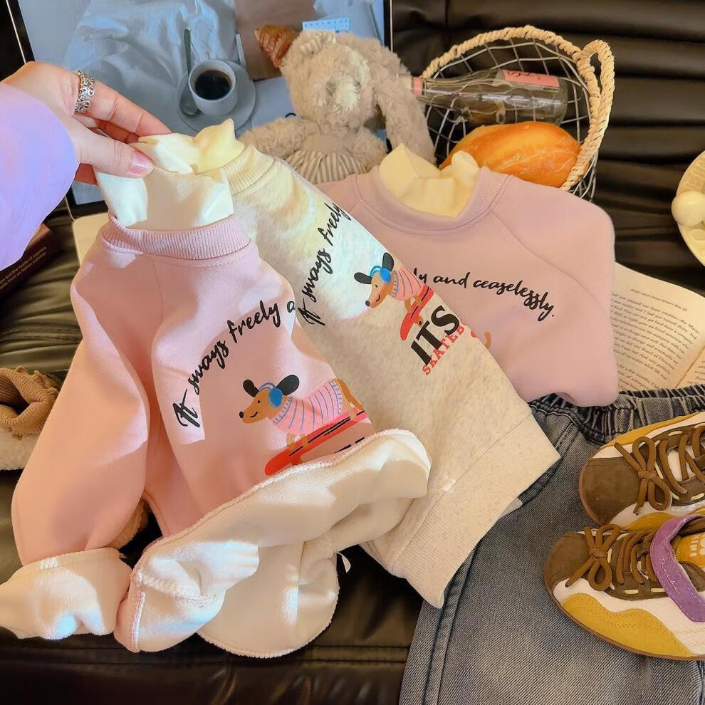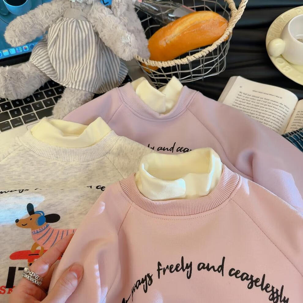 小猪班纳(PEPCO)女童卫衣字母卡通休闲冬季加绒加厚高领内搭上衣儿童保暖童装打底 TBE【双领香肠狗】卫衣-粉色 110 (建议身高95-105cm)