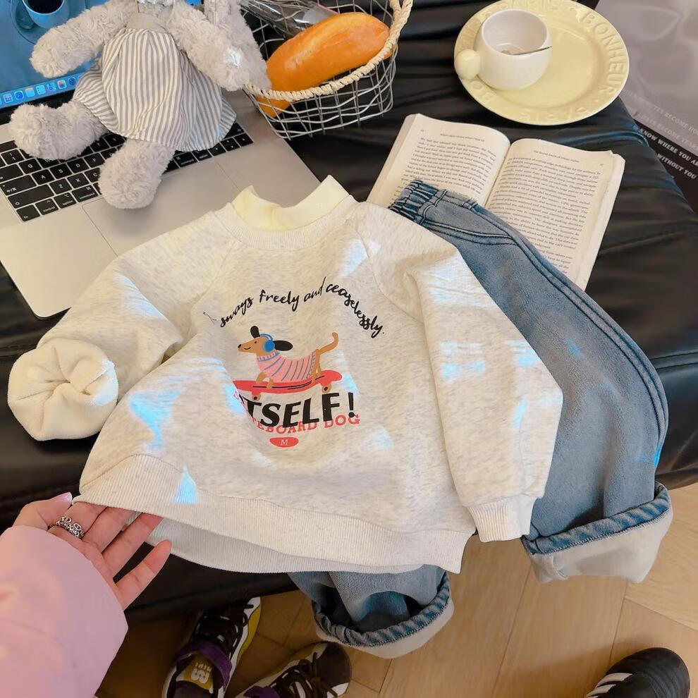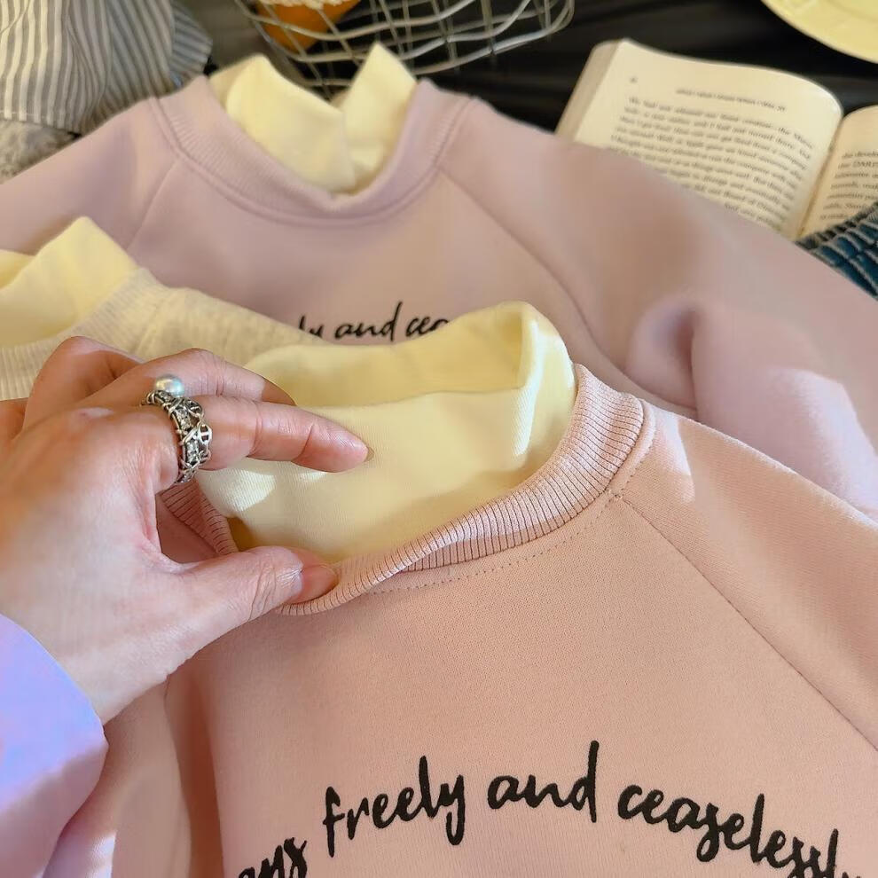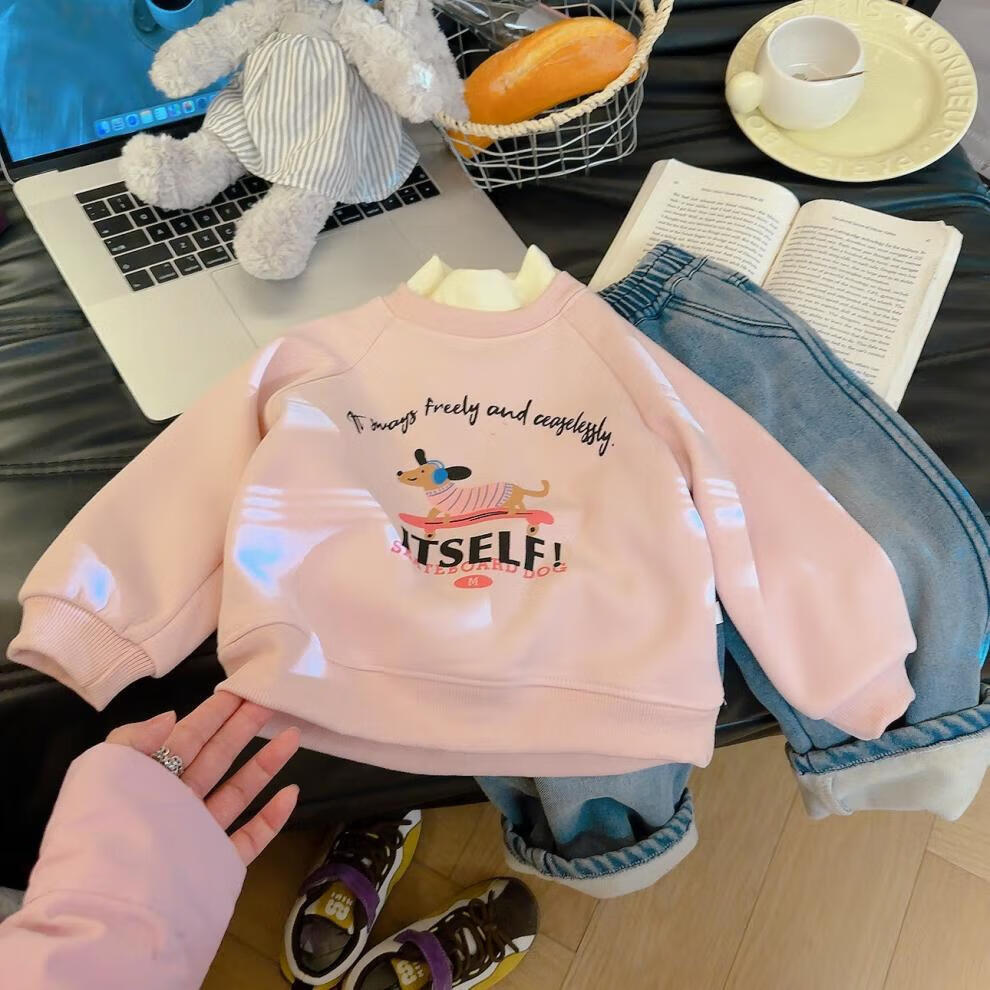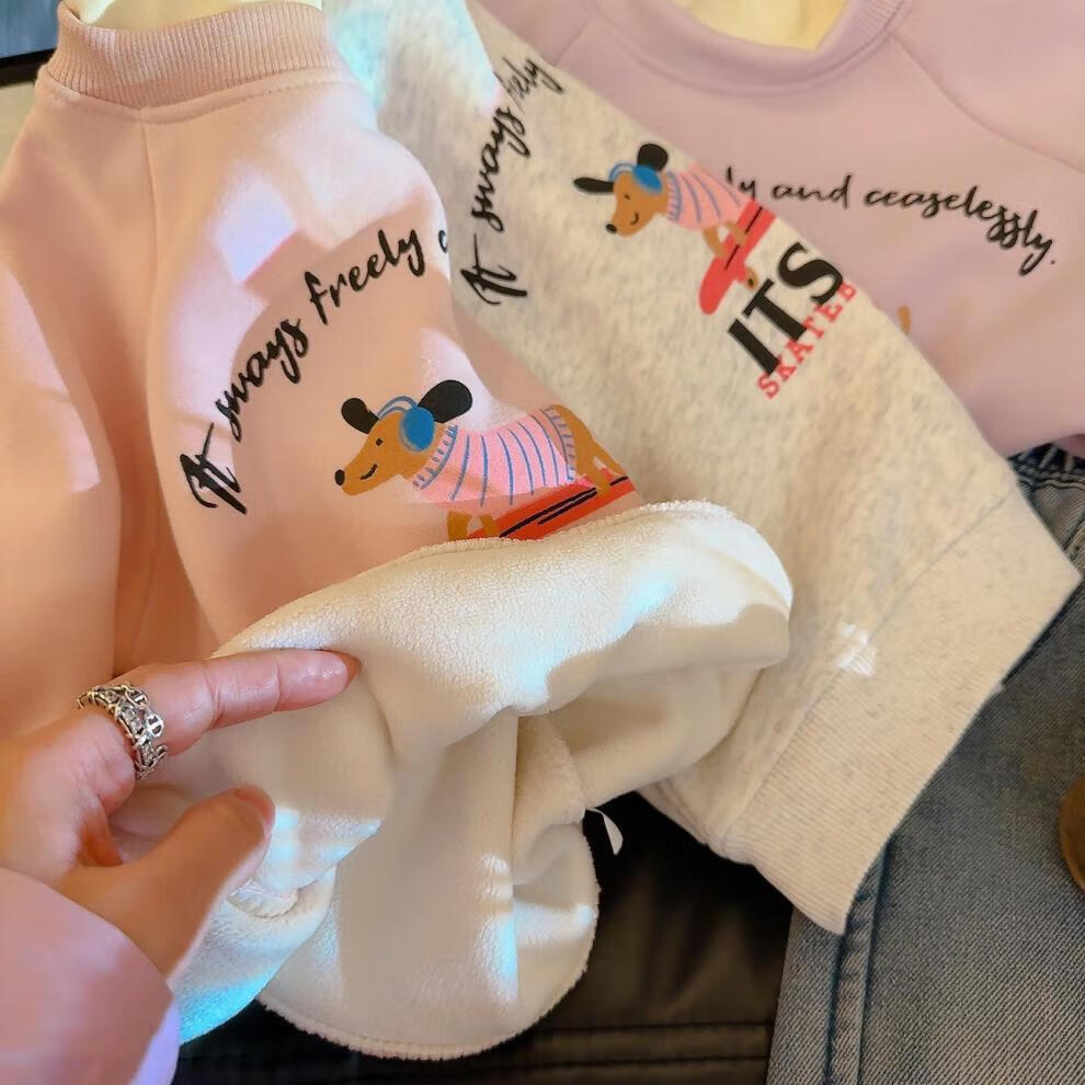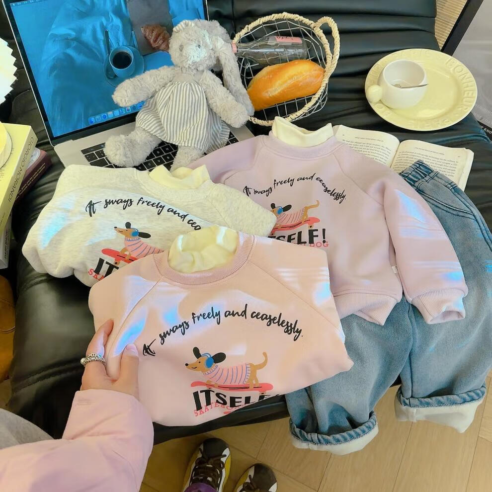 小猪班纳(PEPCO)女童卫衣字母卡通休闲冬季加绒加厚高领内搭上衣儿童保暖童装打底 TBE【双领香肠狗】卫衣-粉色 110 (建议身高95-105cm)