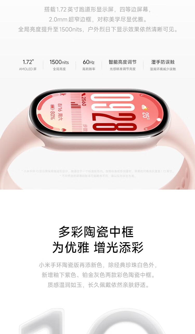 小米(MI)手环10 标准版银色 国家补贴 智能手环 专业运动健康 监测睡眠管理 心率血氧长续航运动