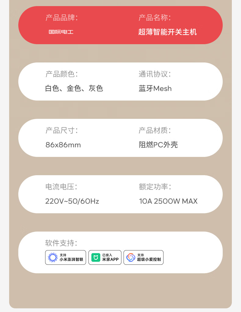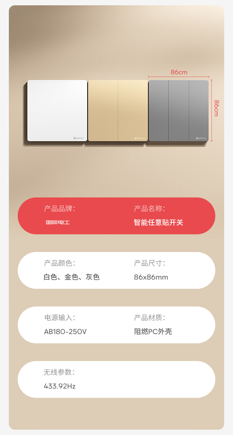 国际电工已接入米家app无线开关随意贴遥控蓝牙mesh全屋智能零火版面板 智能一开主机