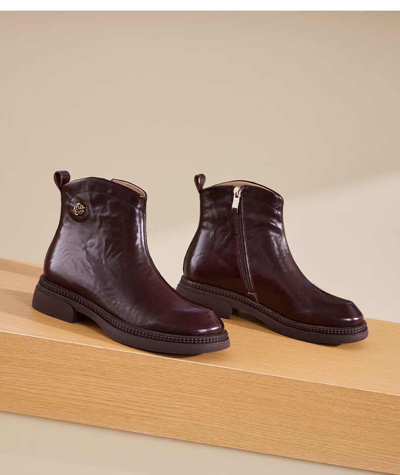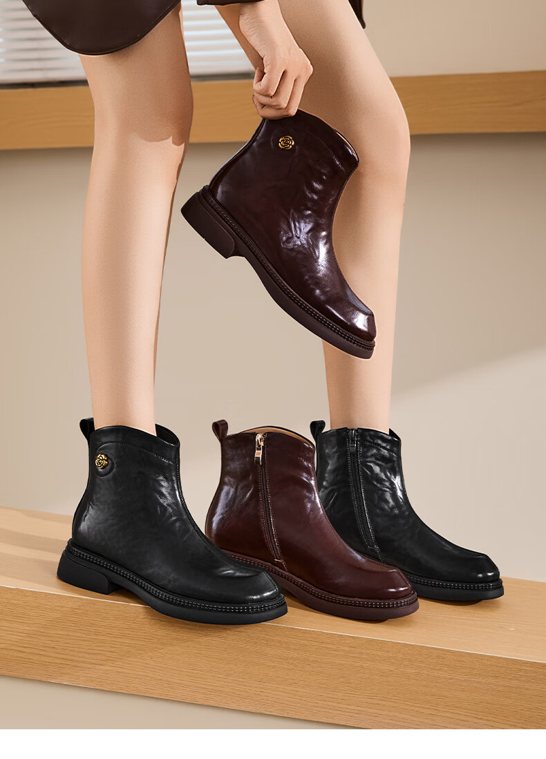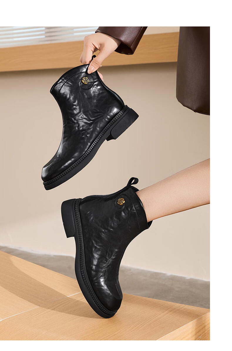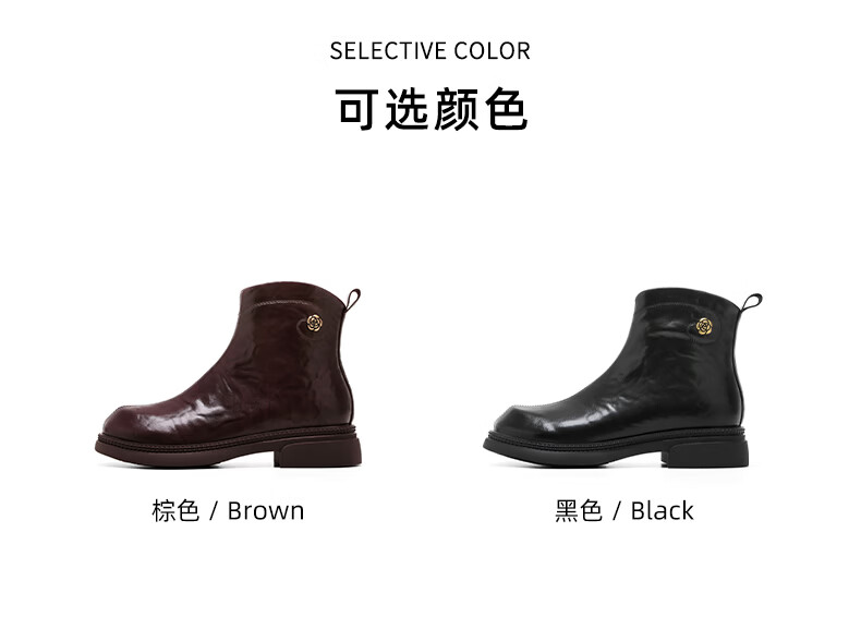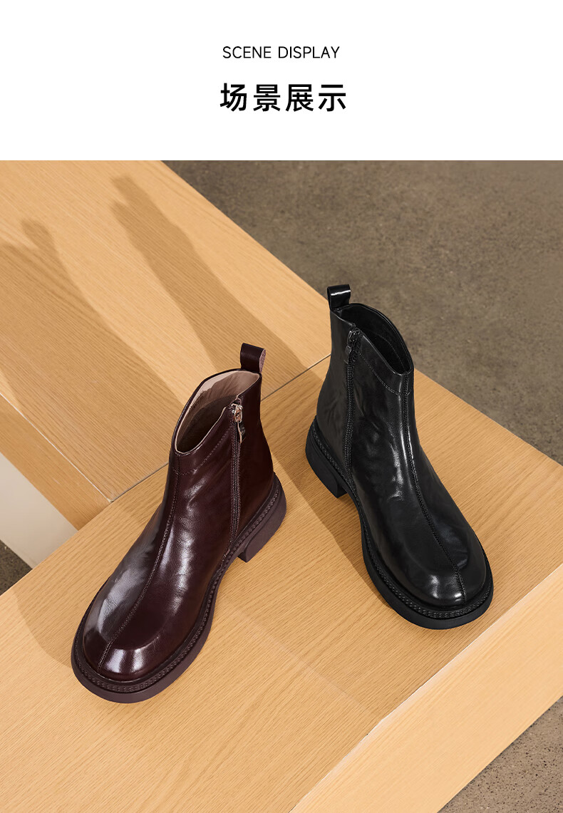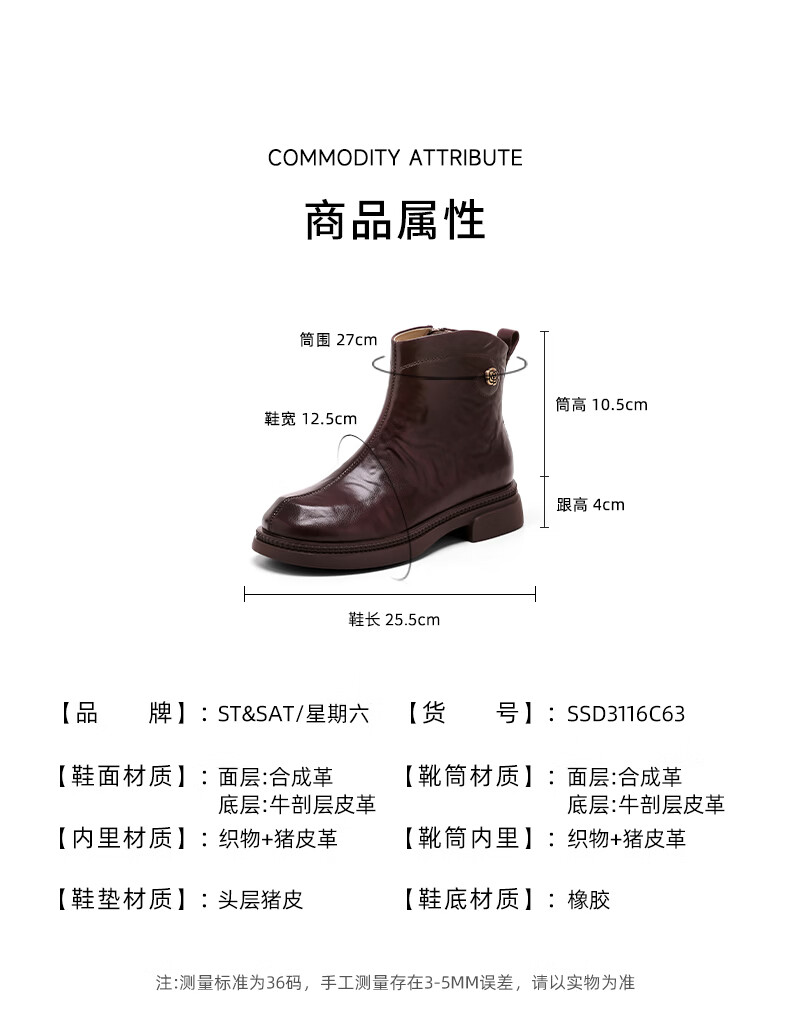 星期六复古风机车靴女2025新款秋冬休闲百搭舒适皮靴短靴百搭马丁靴 棕色 【复古百搭】 35 225