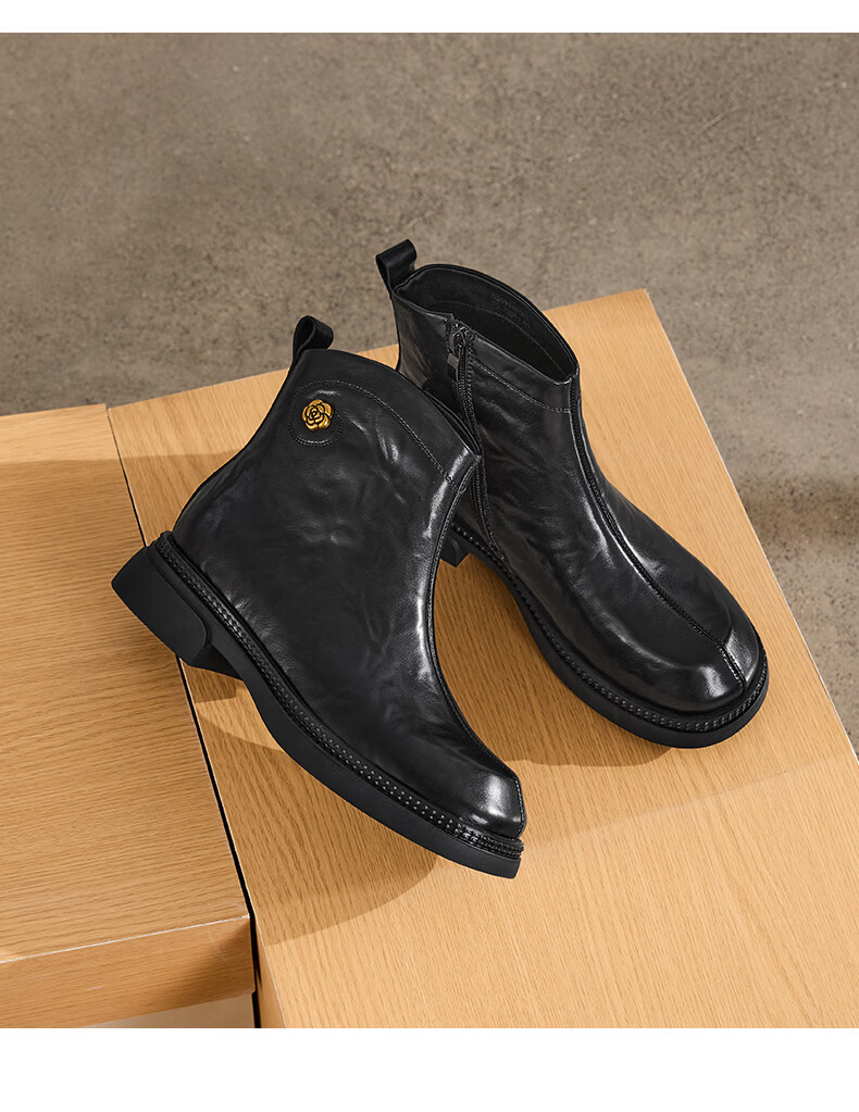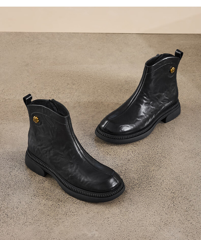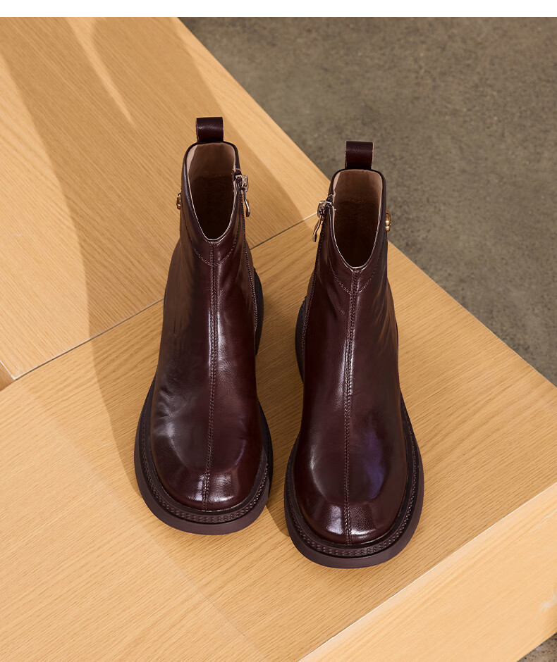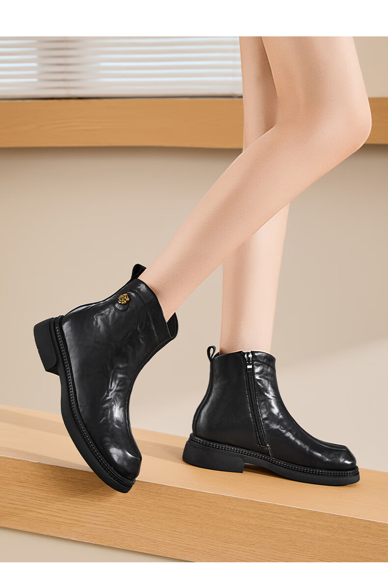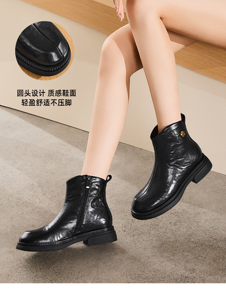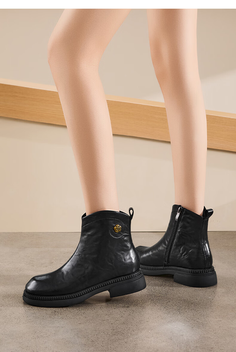 星期六复古风机车靴女2025新款秋冬休闲百搭舒适皮靴短靴百搭马丁靴 棕色 【复古百搭】 35 225
