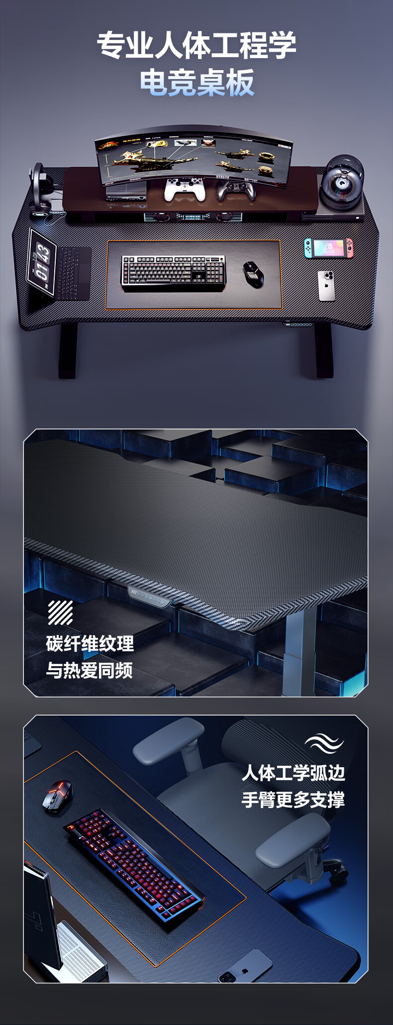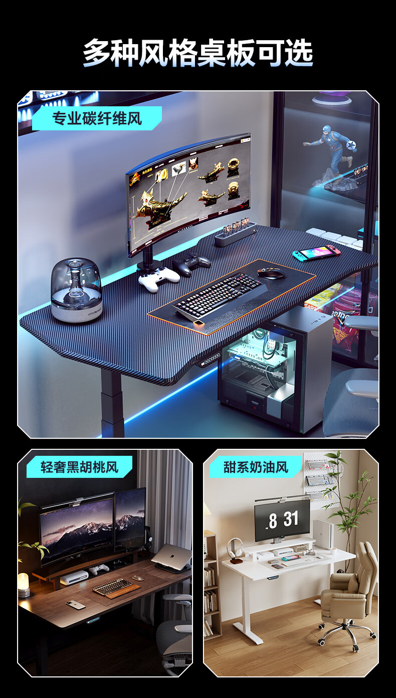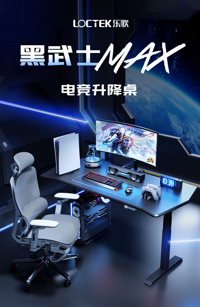 乐歌(Loctek)黑武士MAX电竞桌电动升降电脑桌站立办公 碳纤维纹理电竞桌板 【包安装】1.4*0.7m 电竞桌+Y36PRO人体工学椅套装