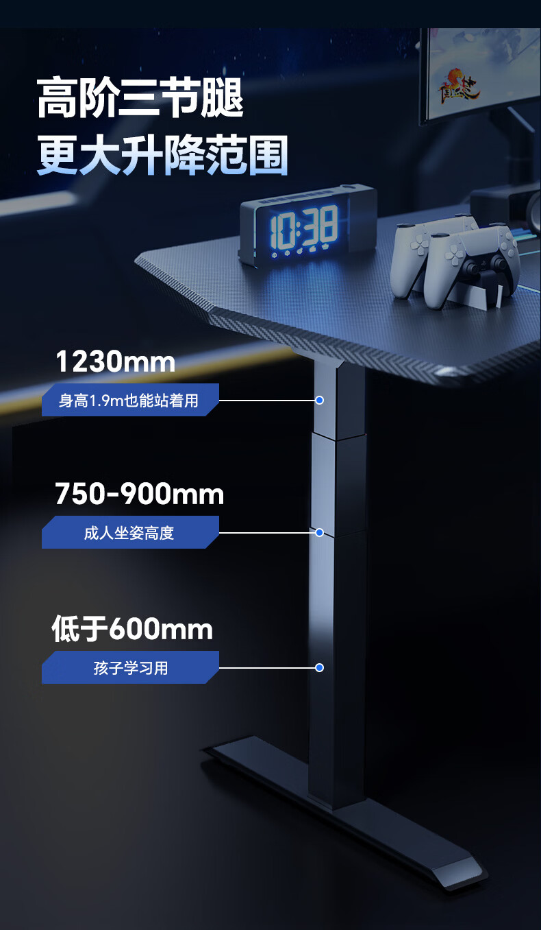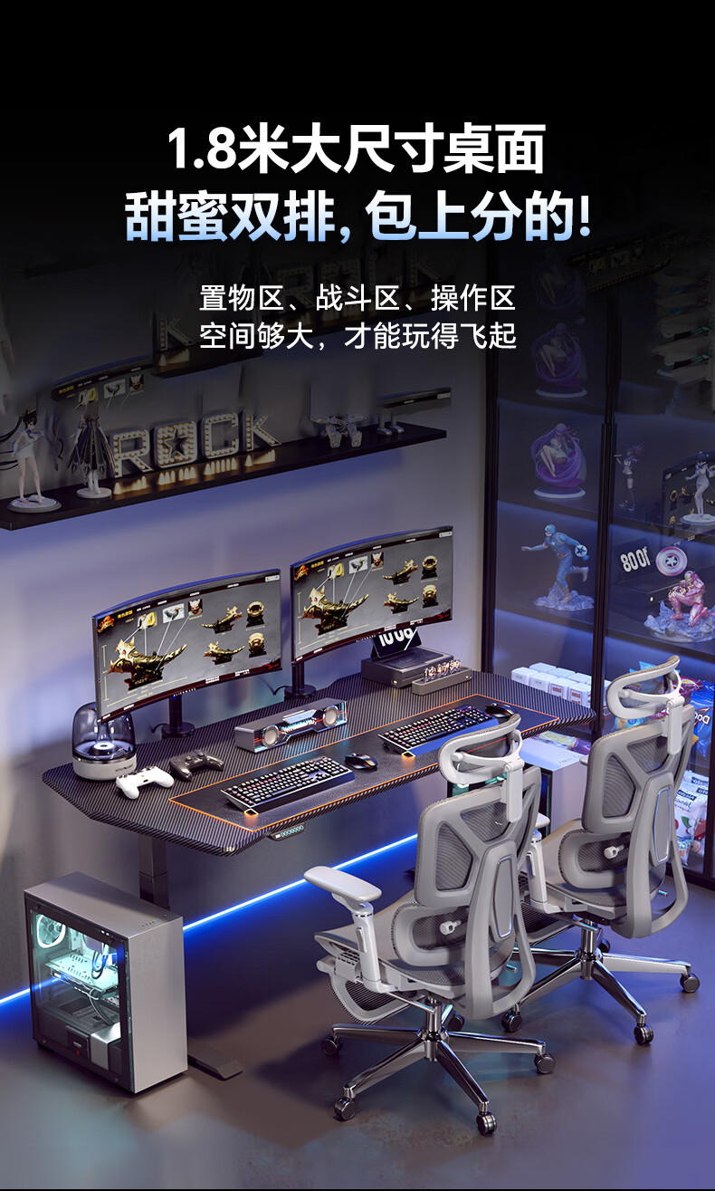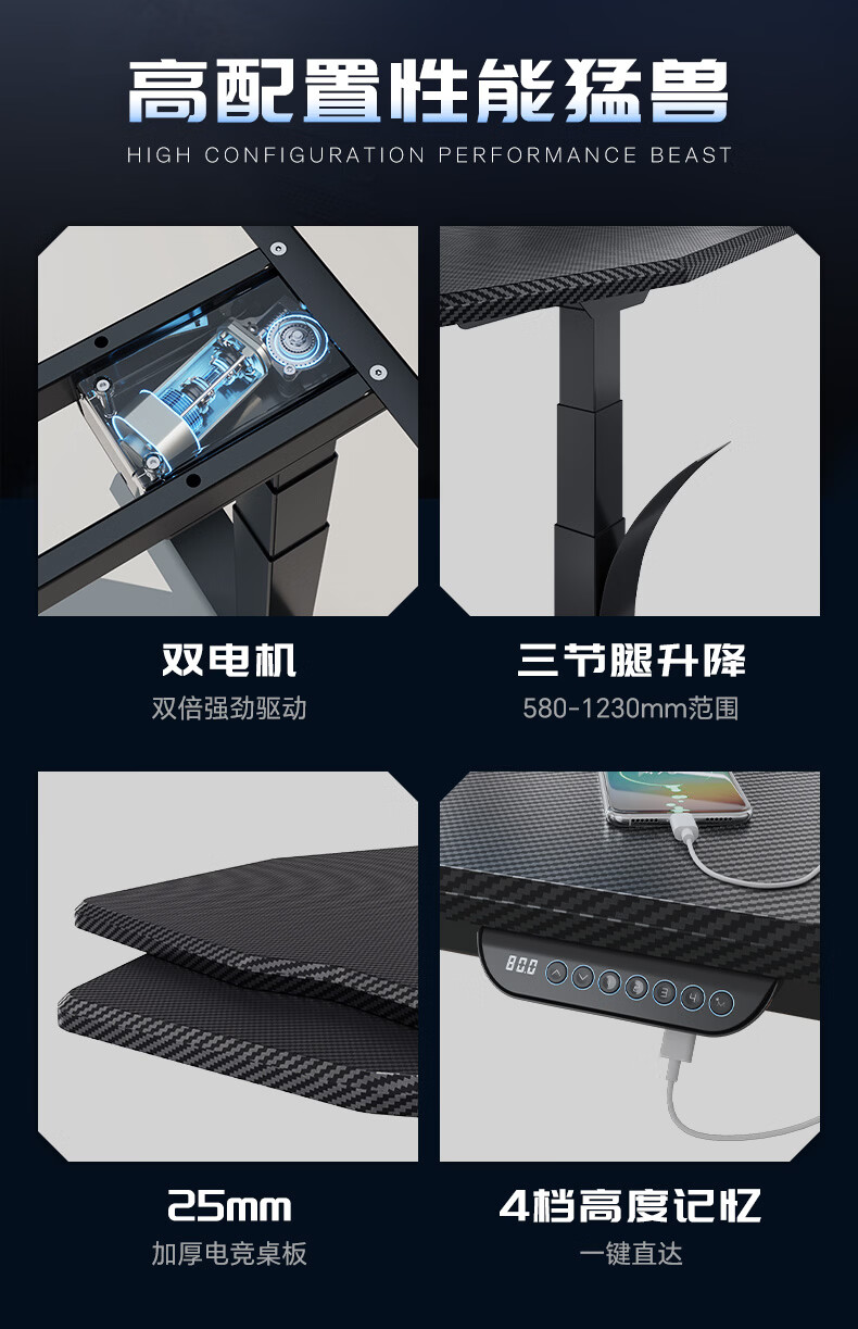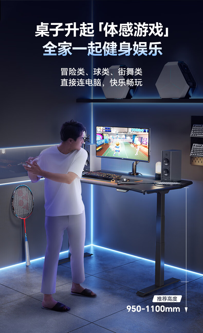 乐歌(Loctek)黑武士MAX电竞桌电动升降电脑桌站立办公 碳纤维纹理电竞桌板 【包安装】1.4*0.7m 电竞桌+Y36PRO人体工学椅套装