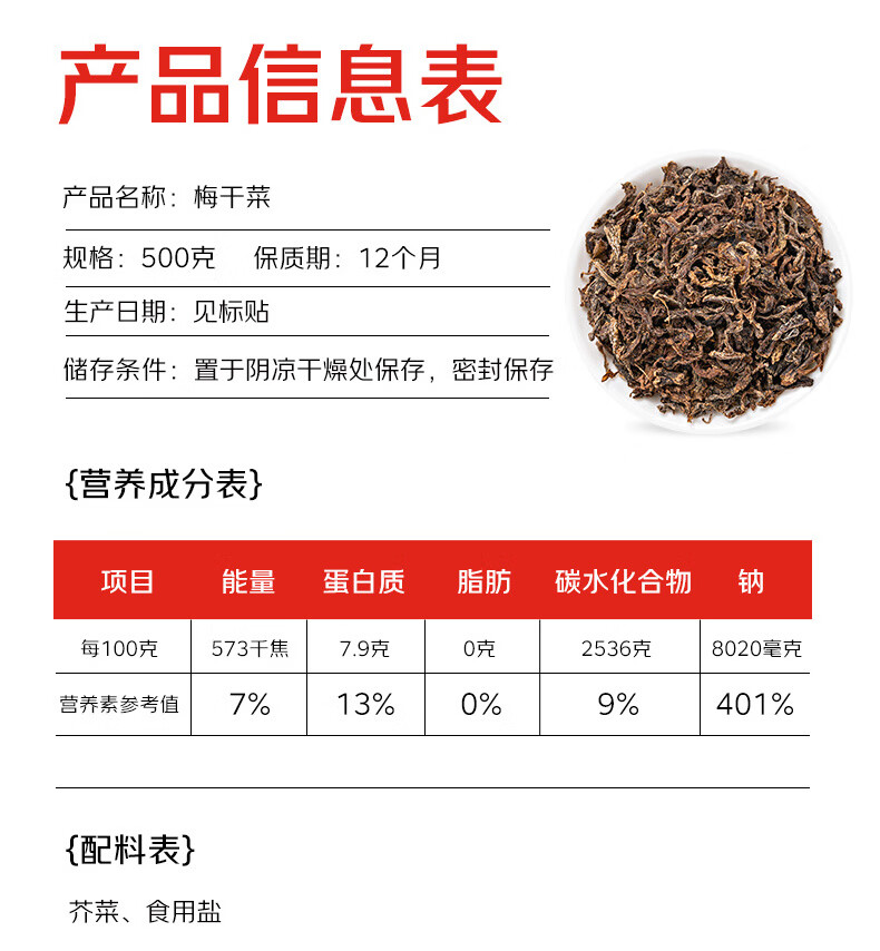 方家铺子X京觅 梅干菜500g/瓶装 干净少沙食材火锅梅菜扣肉下饭菜