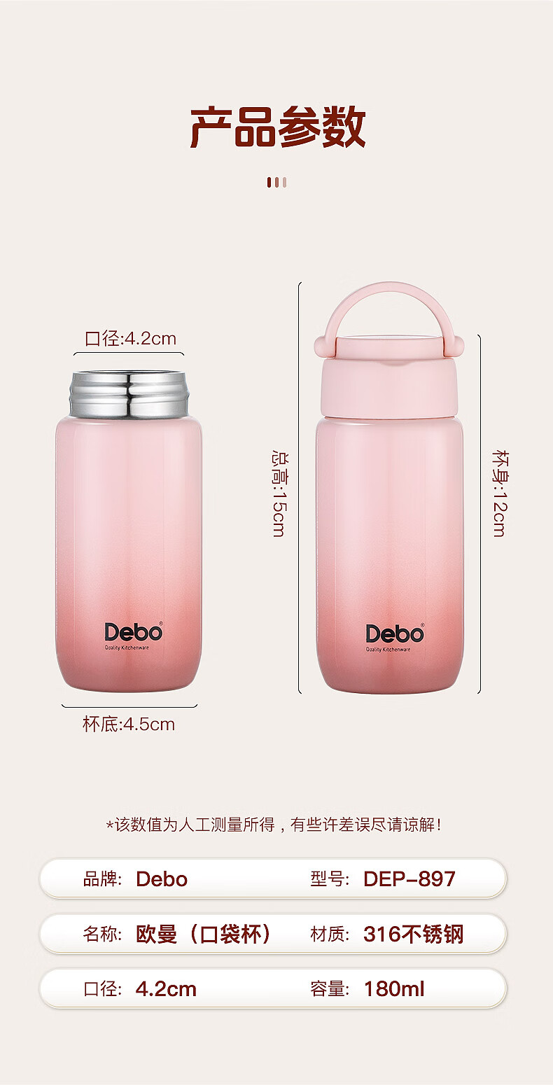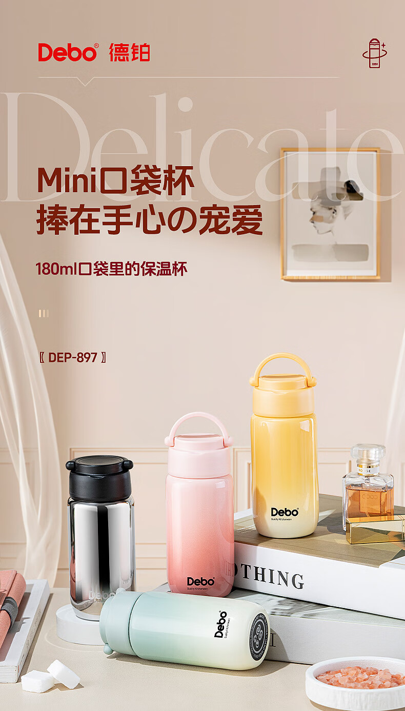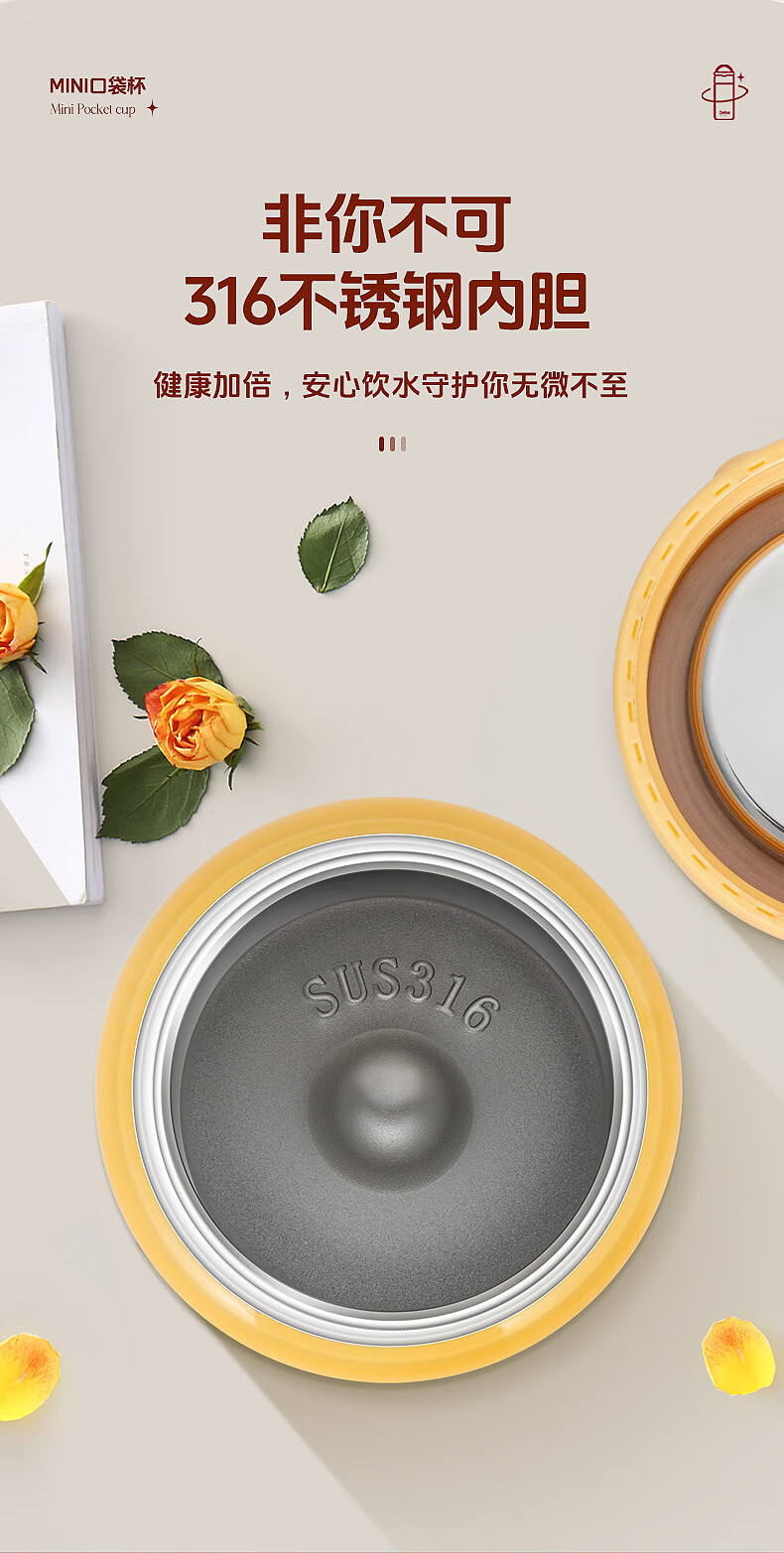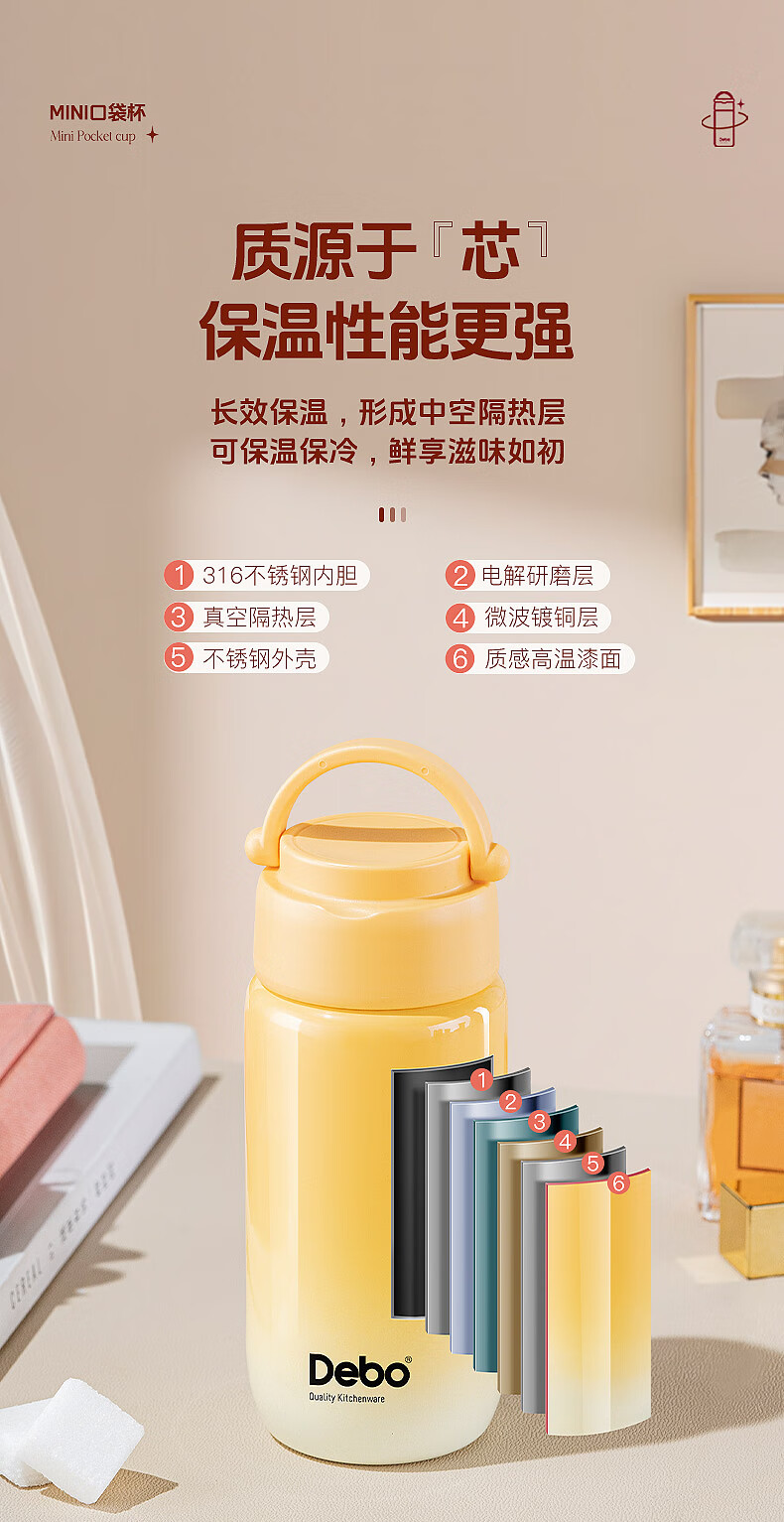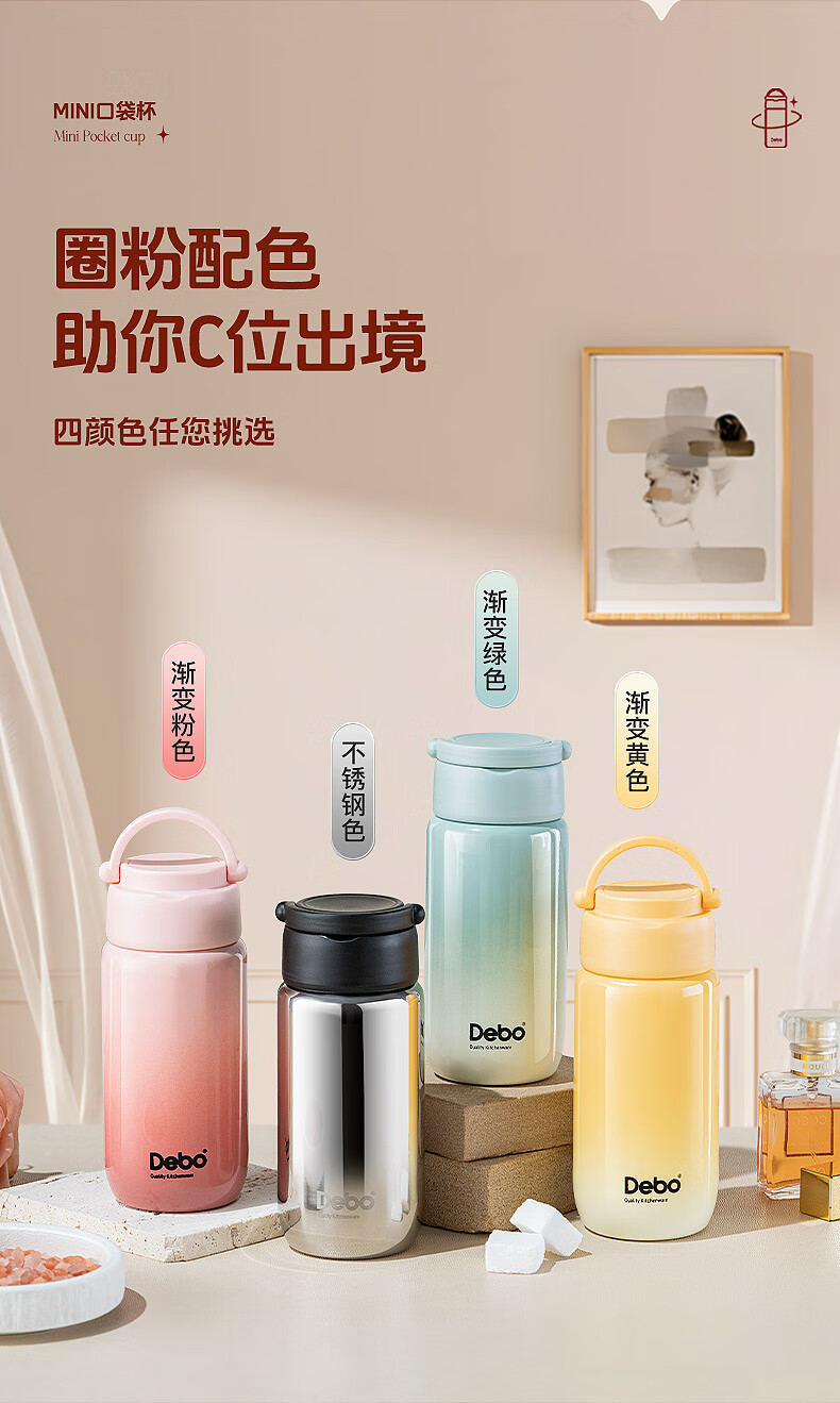 Debo德铂保温杯小巧便携迷你包包杯口袋保温杯高颜值 316不锈钢升级款欧曼渐变黄 180ml