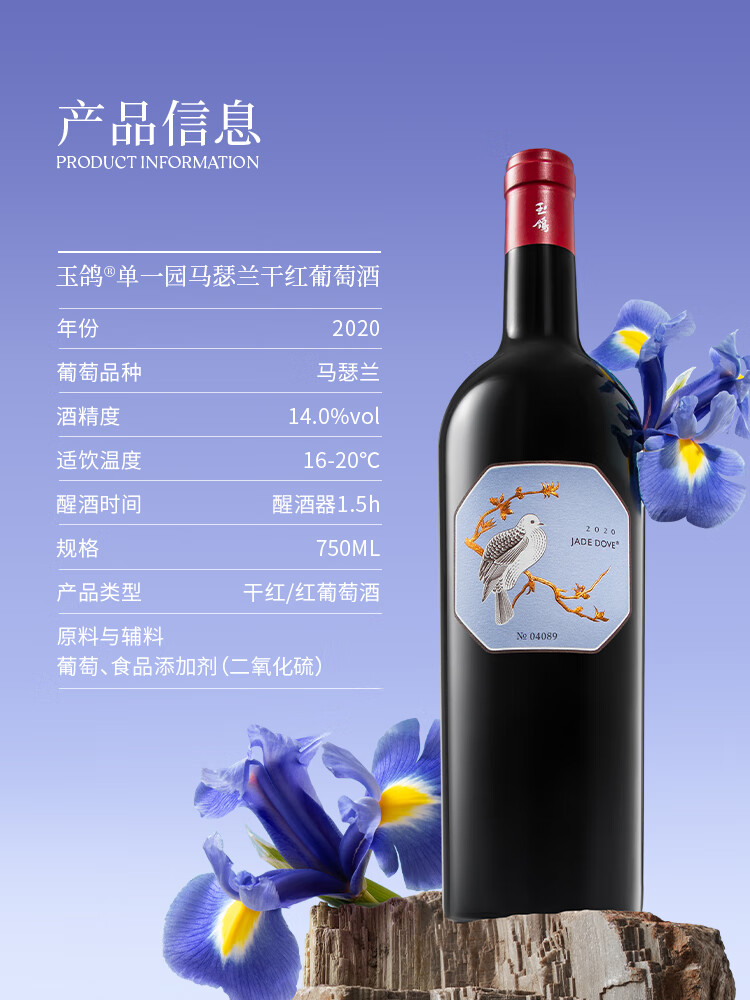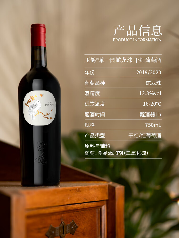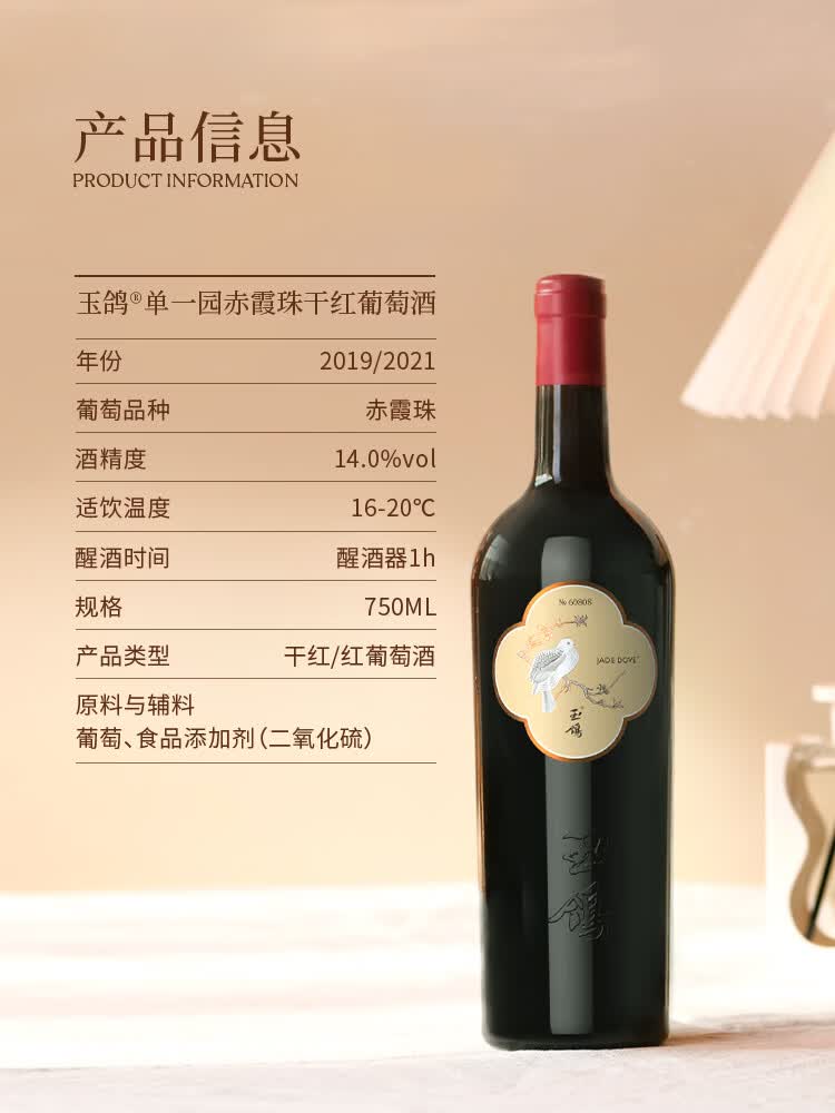 西鸽酒庄玉鸽单一园葡萄酒 宁夏贺兰山东麓国产干红干白葡萄酒 送礼宴请 赤霞珠干红 单支750ml*1