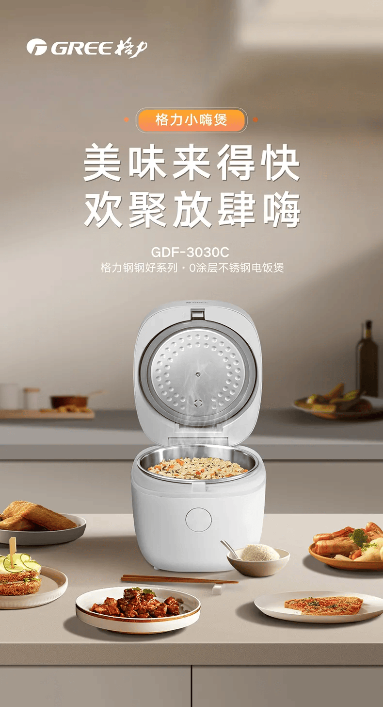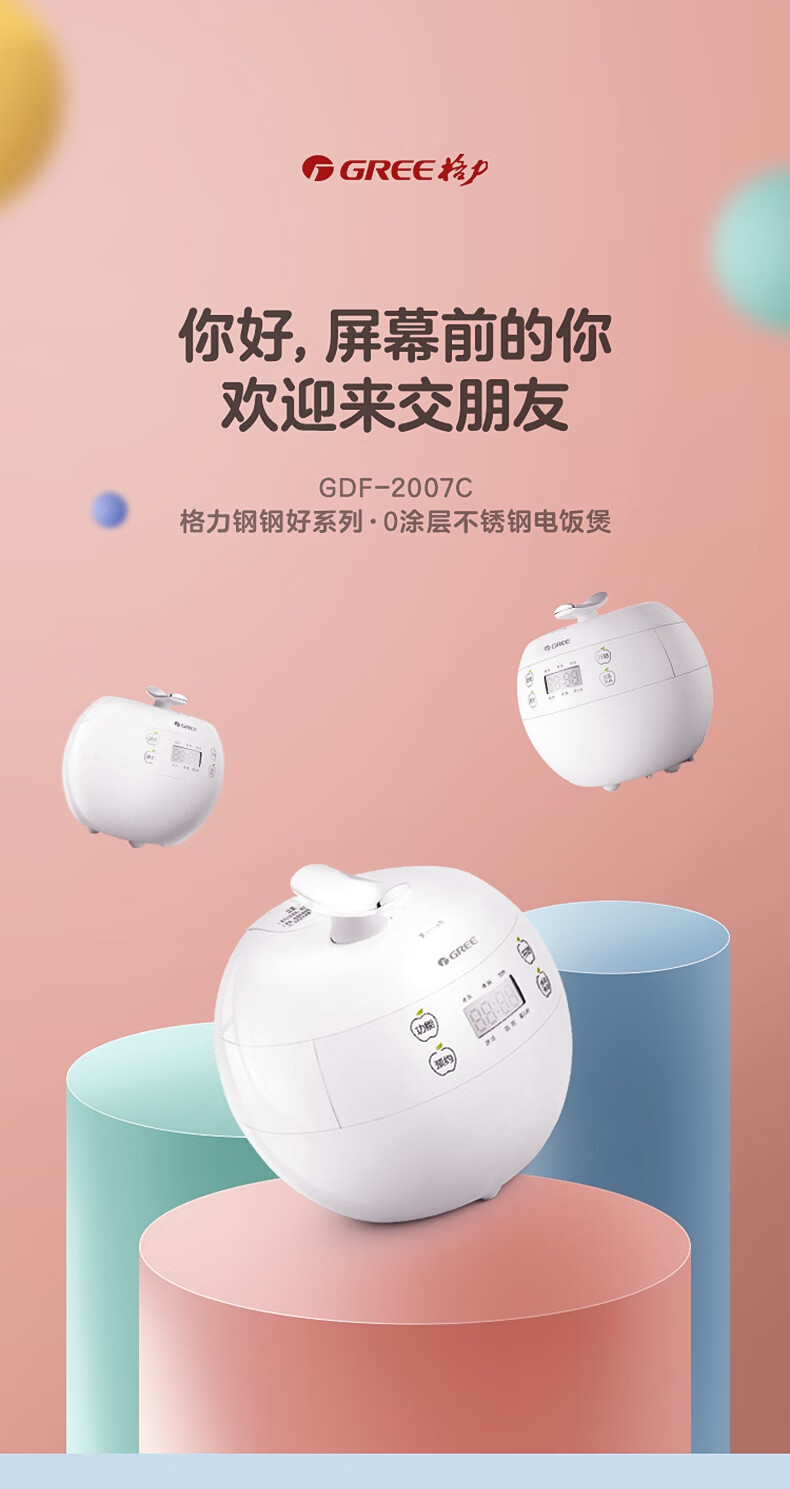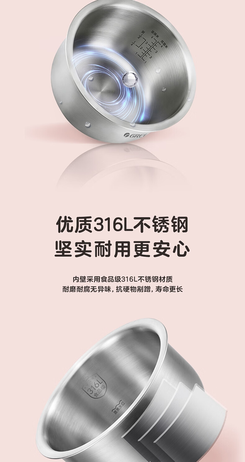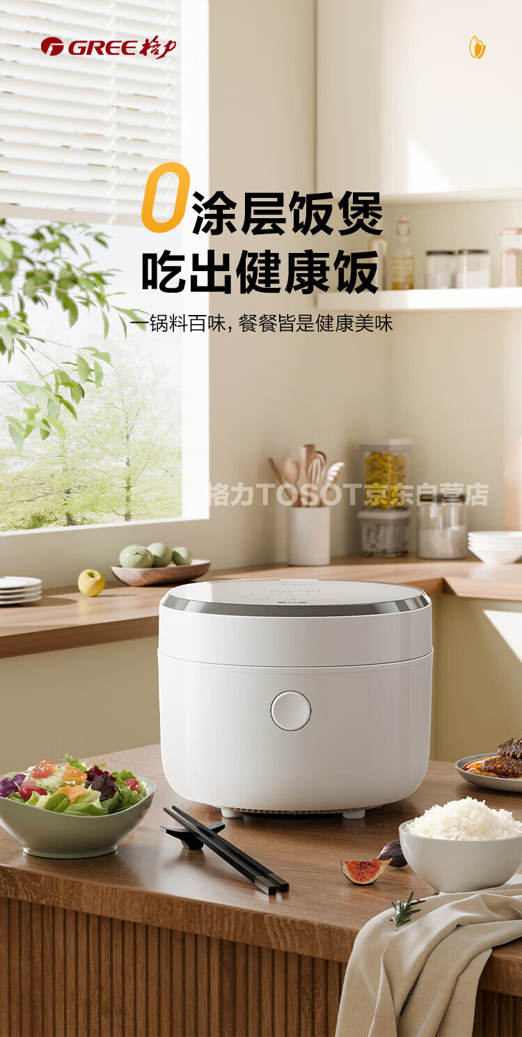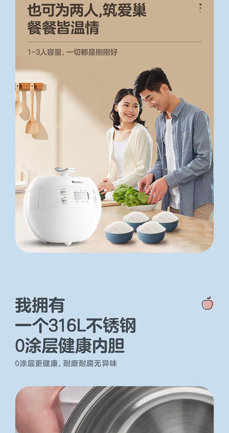 格力【新品】格力电饭煲 3L 健康0涂层316L不锈钢内胆 多功能定时预约4-6人智能无涂层电饭锅 3L 无涂层 316L不锈钢内胆【主推3030】