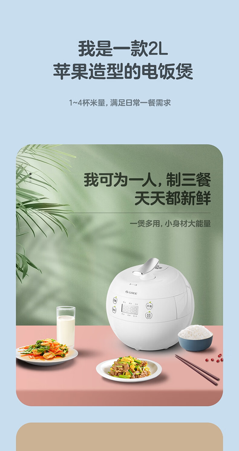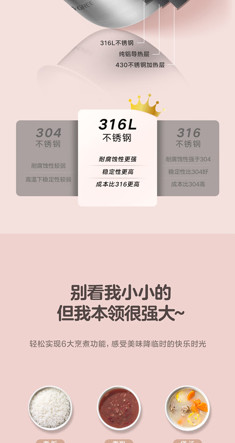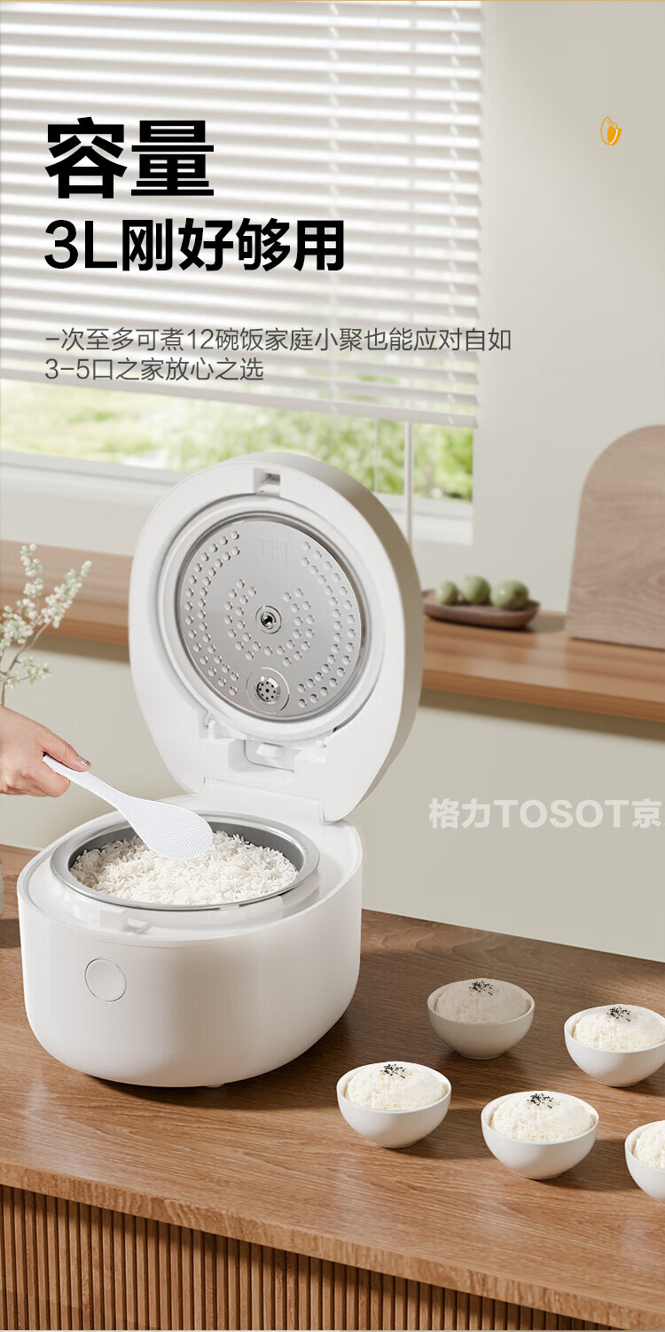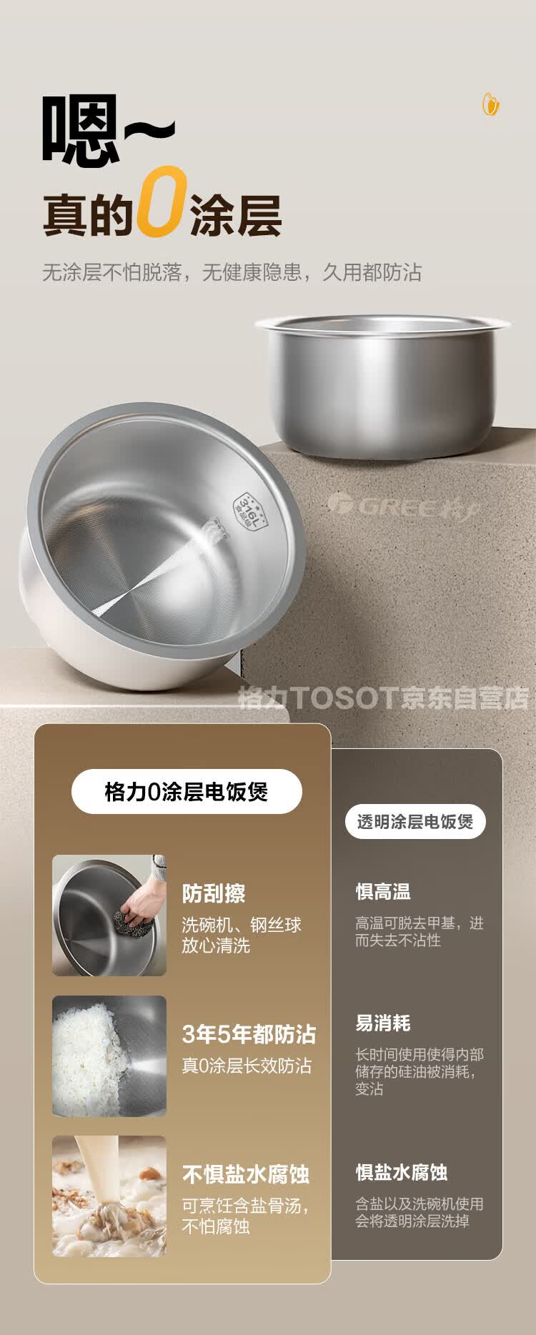 格力【新品】格力电饭煲 3L 健康0涂层316L不锈钢内胆 多功能定时预约4-6人智能无涂层电饭锅 3L 无涂层 316L不锈钢内胆【主推3030】